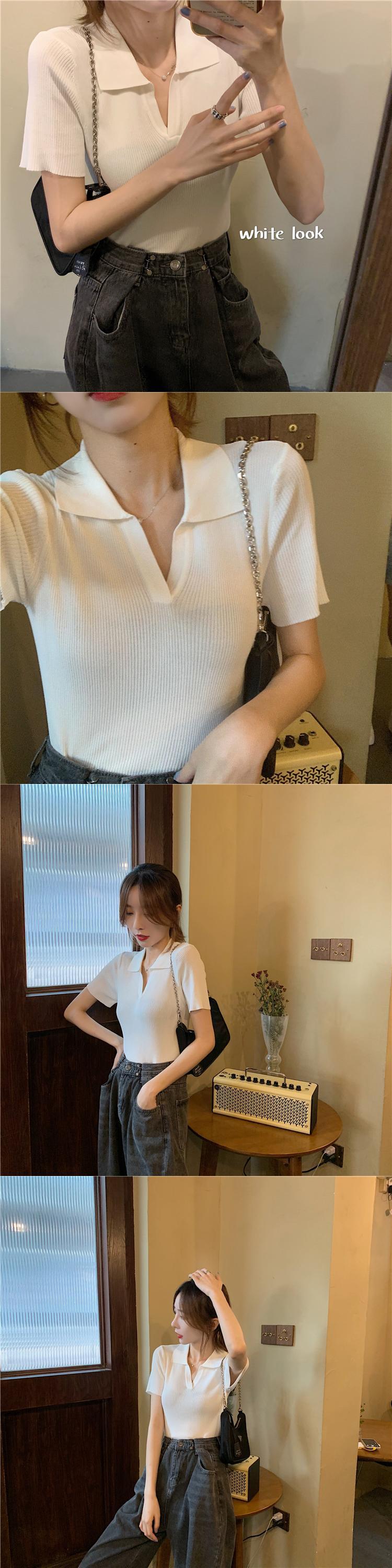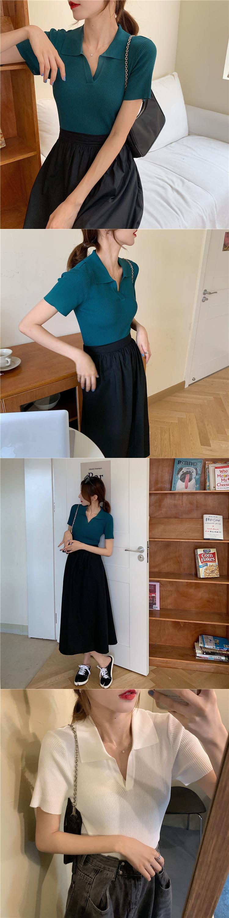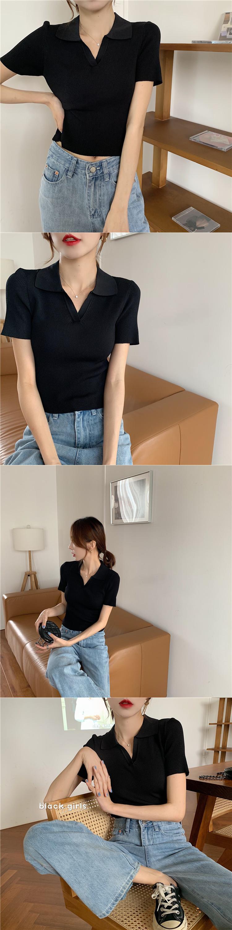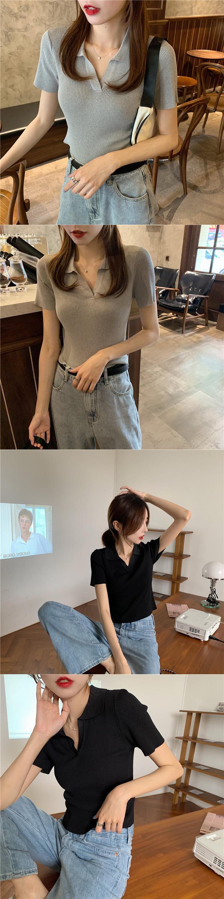 2022年春秋新作POLOカラーショートトップスレディースアイスシルクデザインニッチ半袖セーター薄夏 スプリング 春物 サマー 夏物 オータム 秋物 7460055524045229 | framboise21
