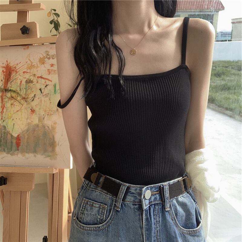 2022年の女性の夏の薄い新しいアウターウェアスリムニットキャミソールは、薄い無地のノースリーブの甘くてスパイシーなトップを示しています 大人ガーリー スウィート キュート カジュアル サマー 夏物 ソリッドカラー 7460088324535210 | framboise21