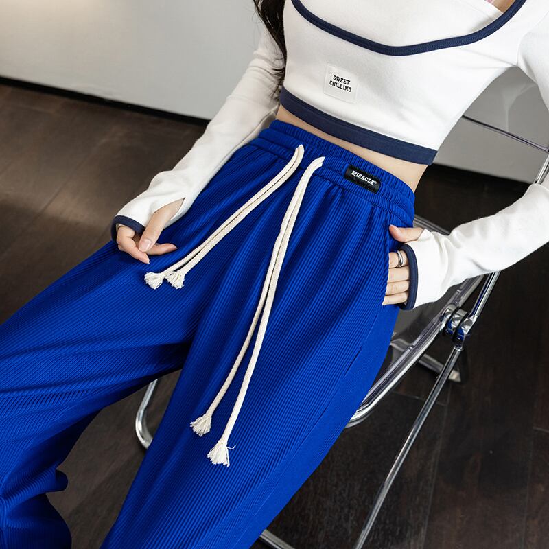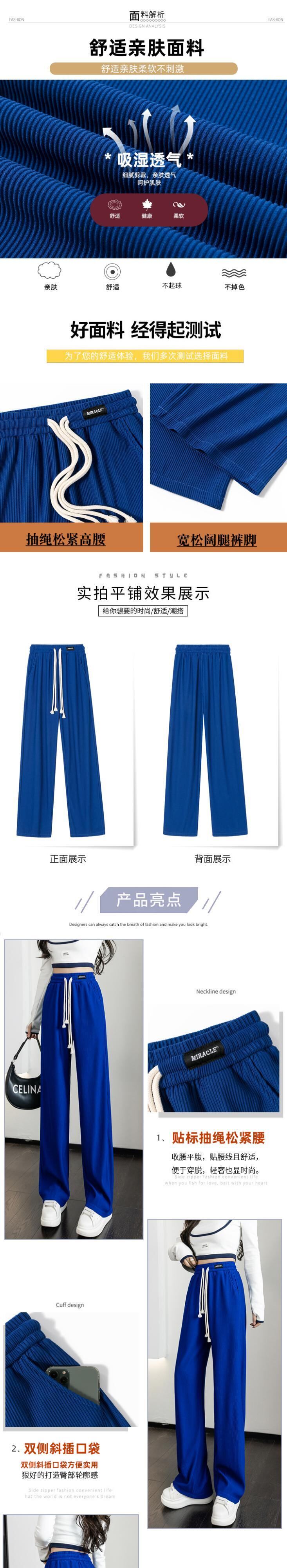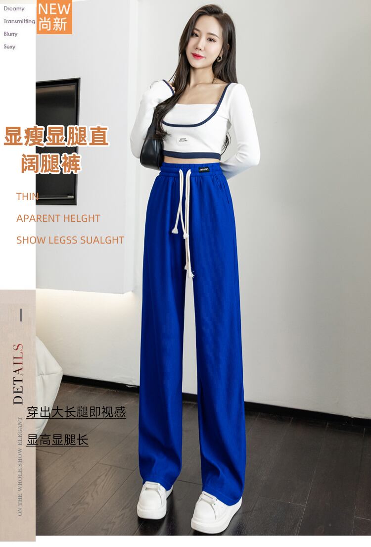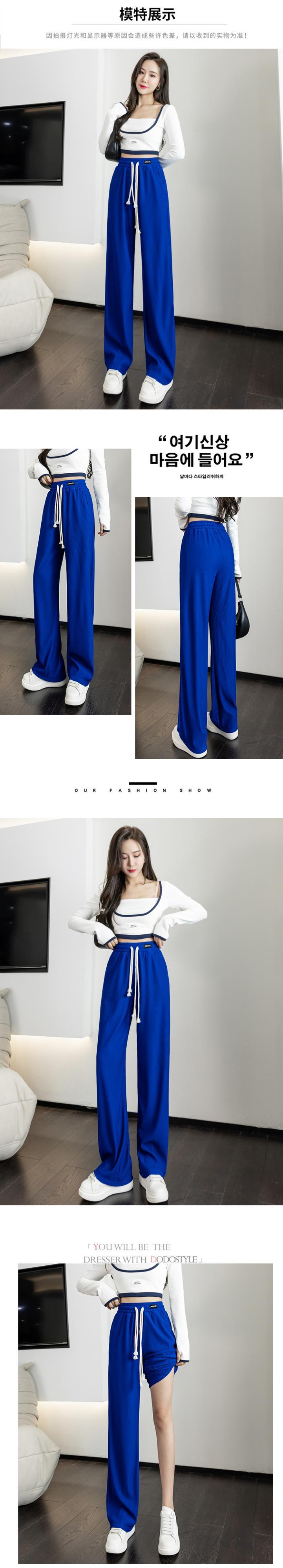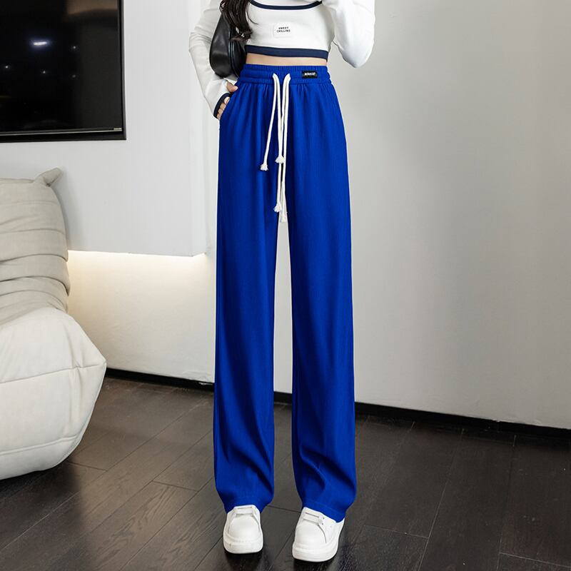 ブルーワイドレッグパンツレディース2022年夏新作ルーズストレートチューブドレープハイウエストカジュアルモップパンツ ハイウェスト サマー 夏物 ワイドパンツ 7460072371643172 | framboise21
