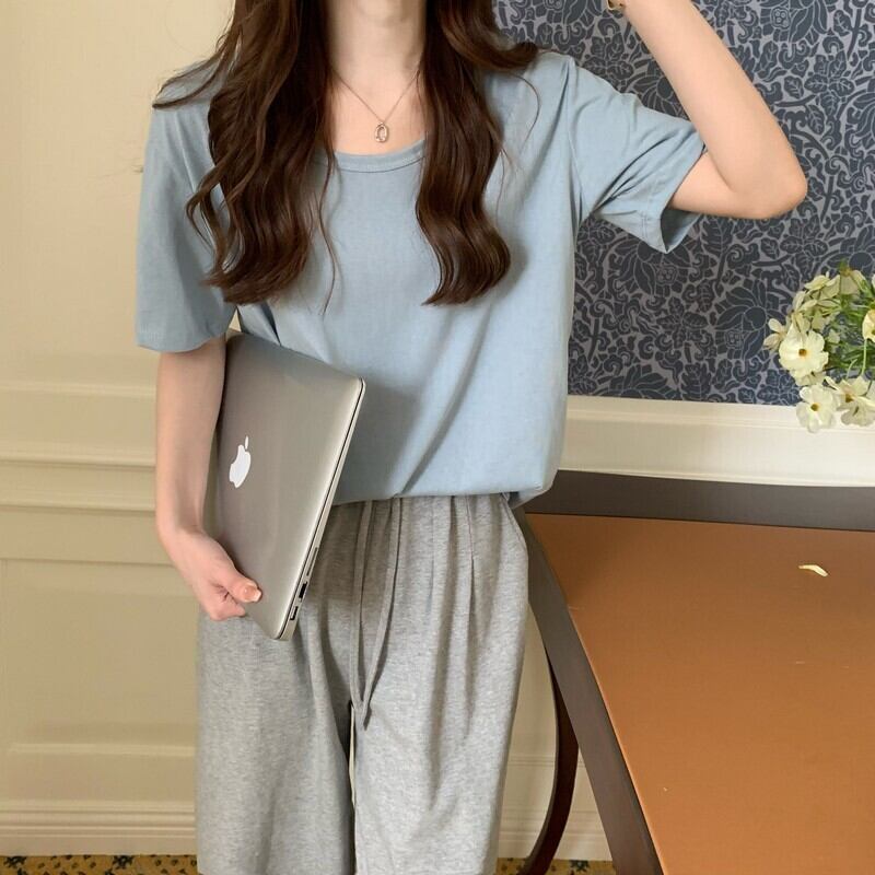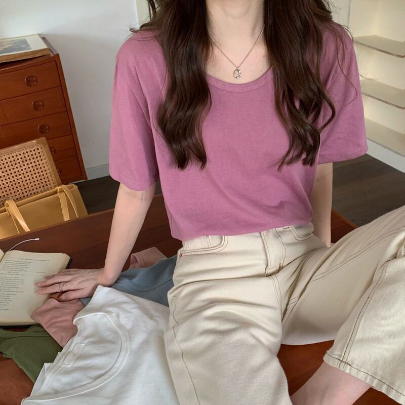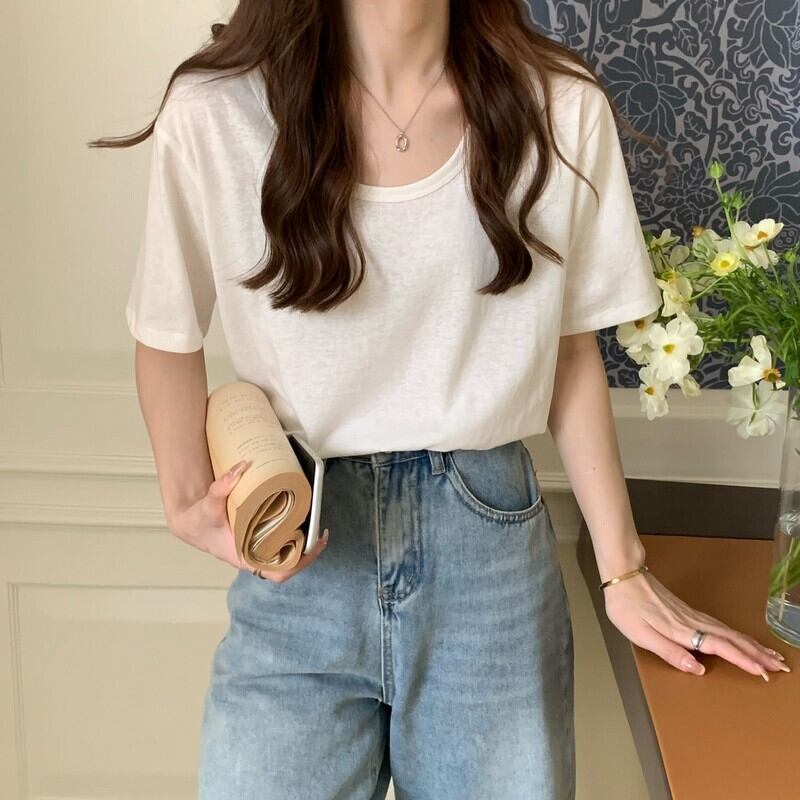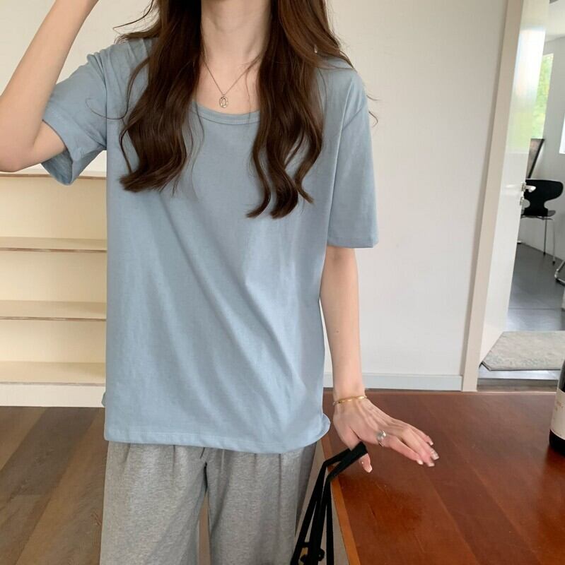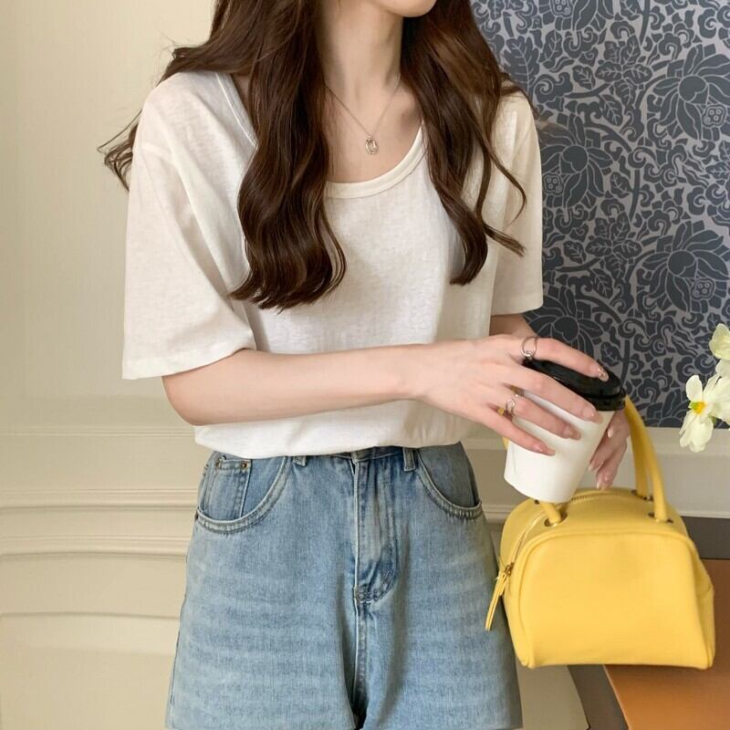 夏の半袖Tシャツレディースルーズデザインニッチボトミングシャツ、ウエスタンスタイルのフロントショルダートップ2022 new サマー 夏物 7460073142692253 | framboise21