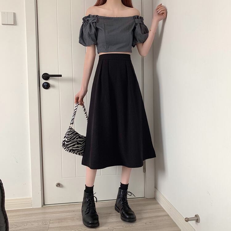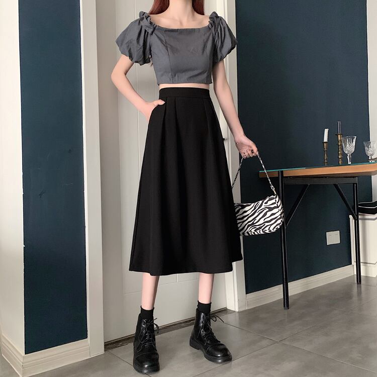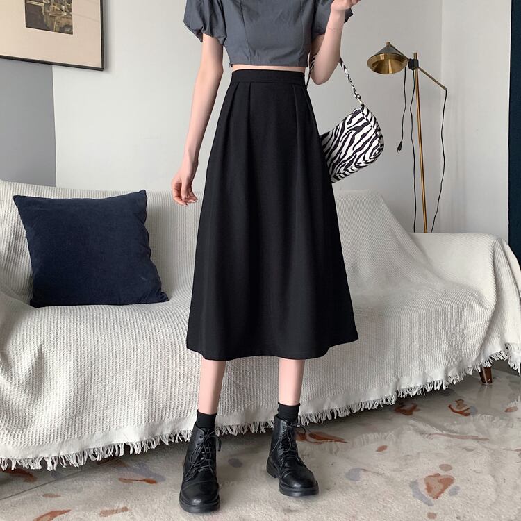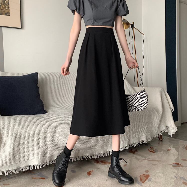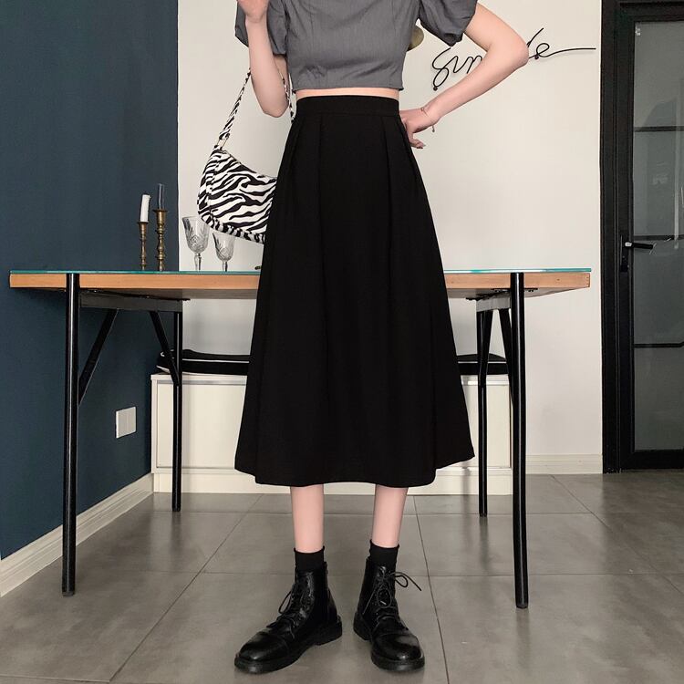 -ウエストAラインスカート、ミドル丈ブラックスカート、気質、ドレープ、ロングスカート、薄片、ラージスイングスカート、アンブレラスカート、レディースサマー 夏物 746009557182323