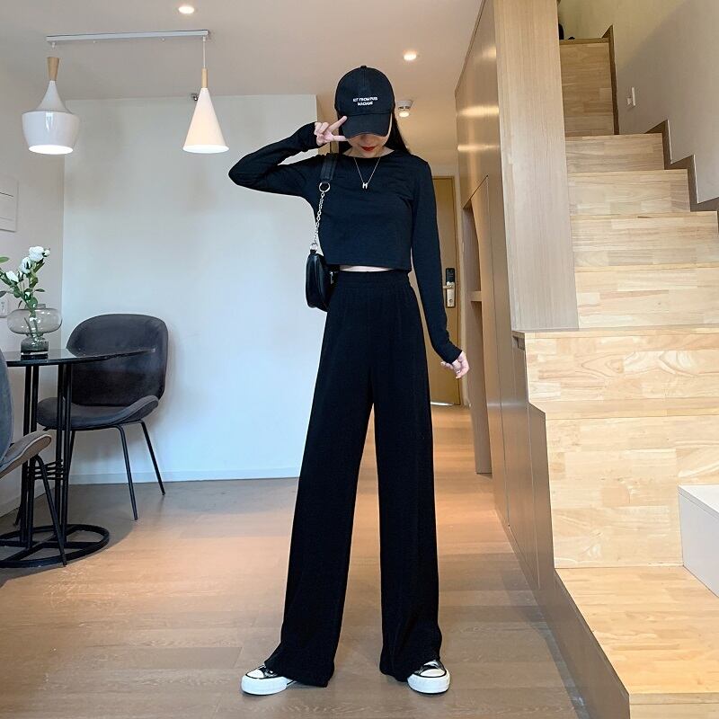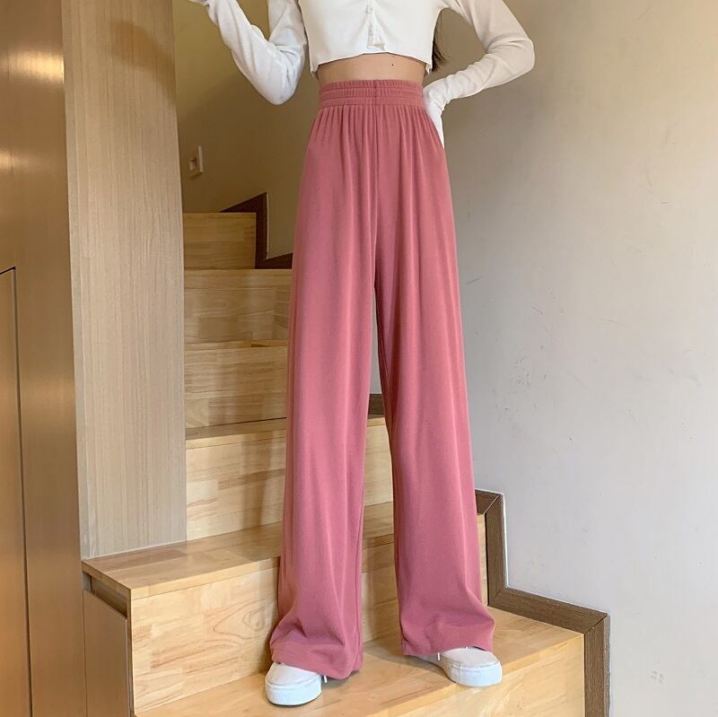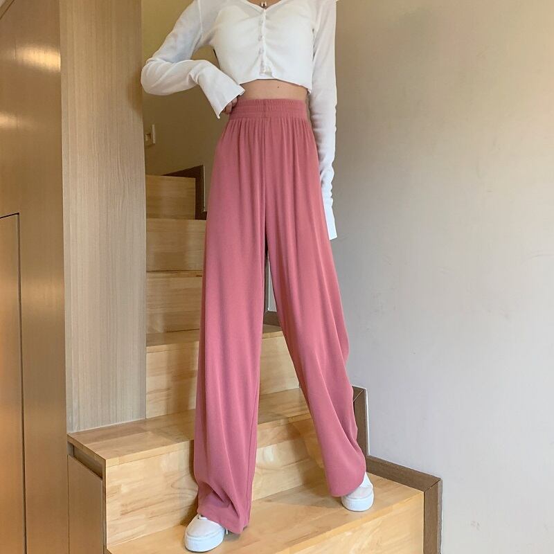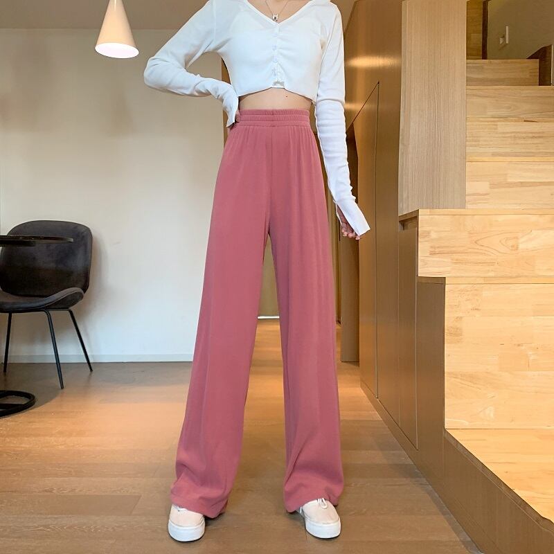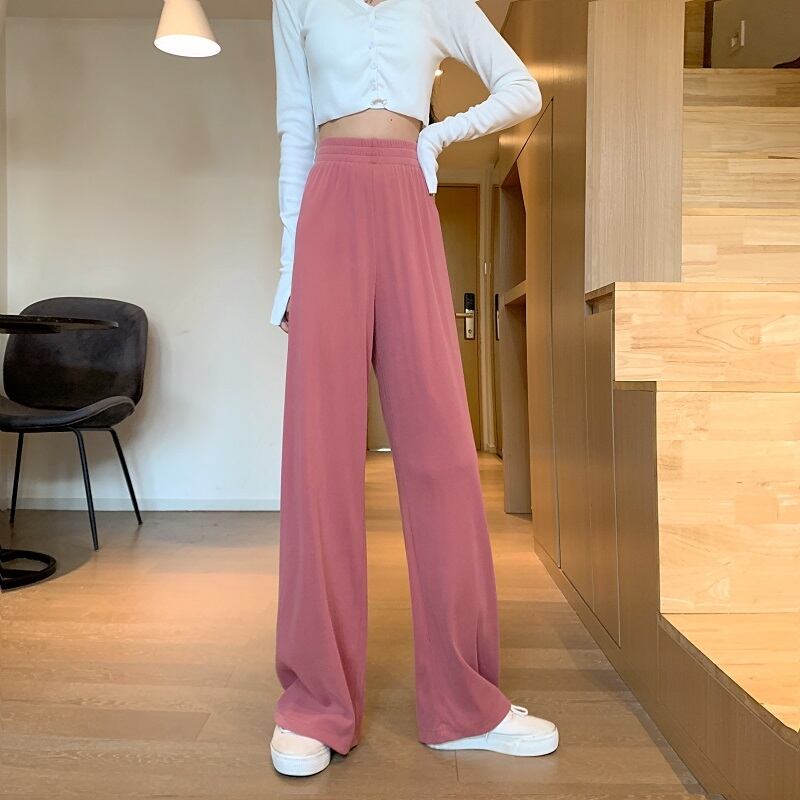 2022年サマードレスピンクハイウエストアイスシルクニットワイドレッグパンツレディースルーズで細いストレートチューブドレープカジュアルスポーツパンツ 夏物 7460097868788792 | framboise21