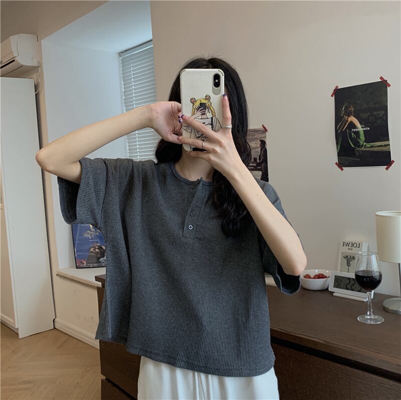 夏のアイスシルク半袖Tシャツレディース2022新しいオールマッチルーズアウターウェア怠惰な風ニットセーターショートbmトップ サマー 夏物 7460022138578396 | framboise21