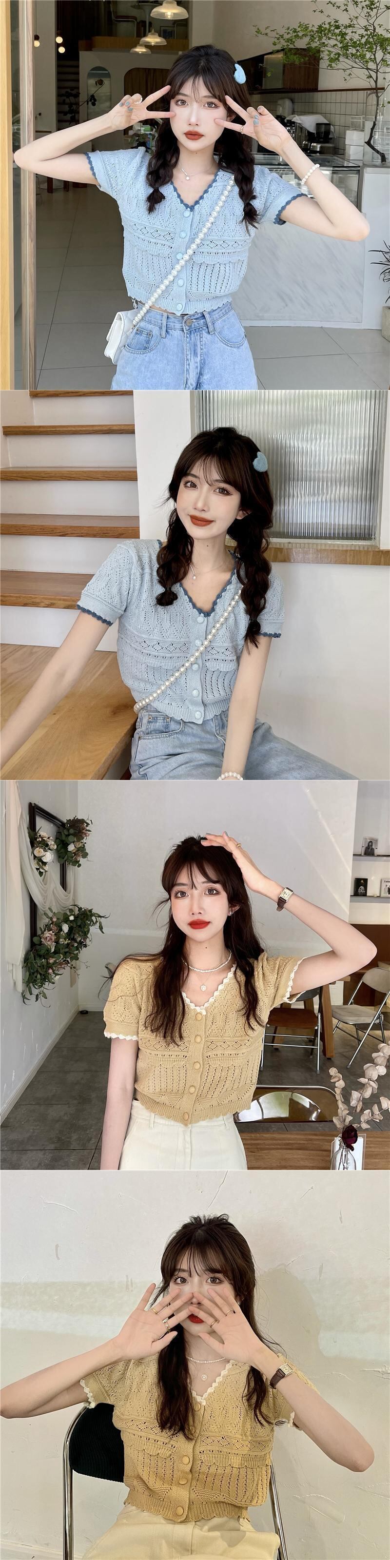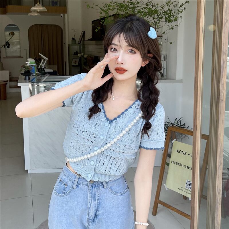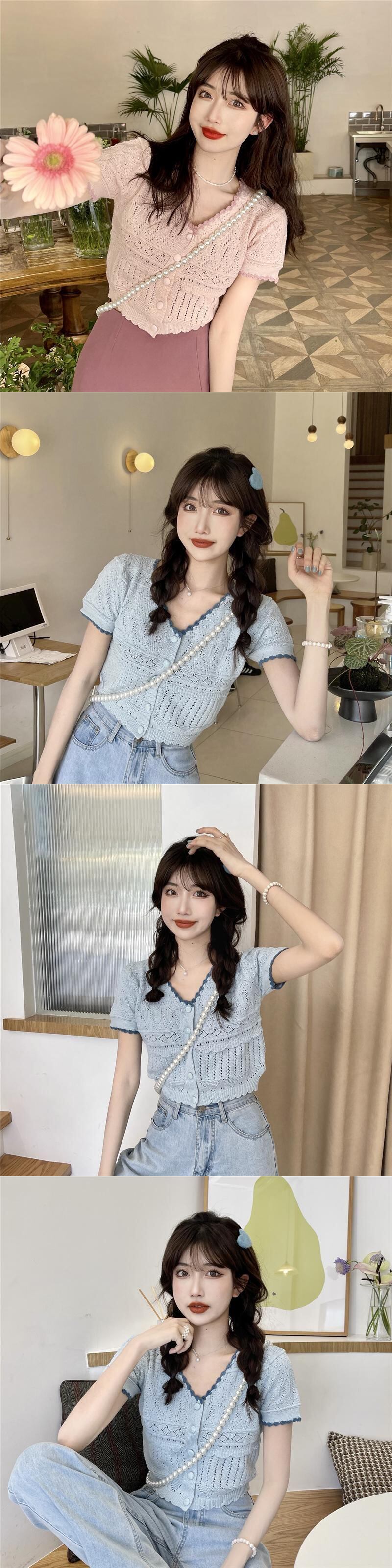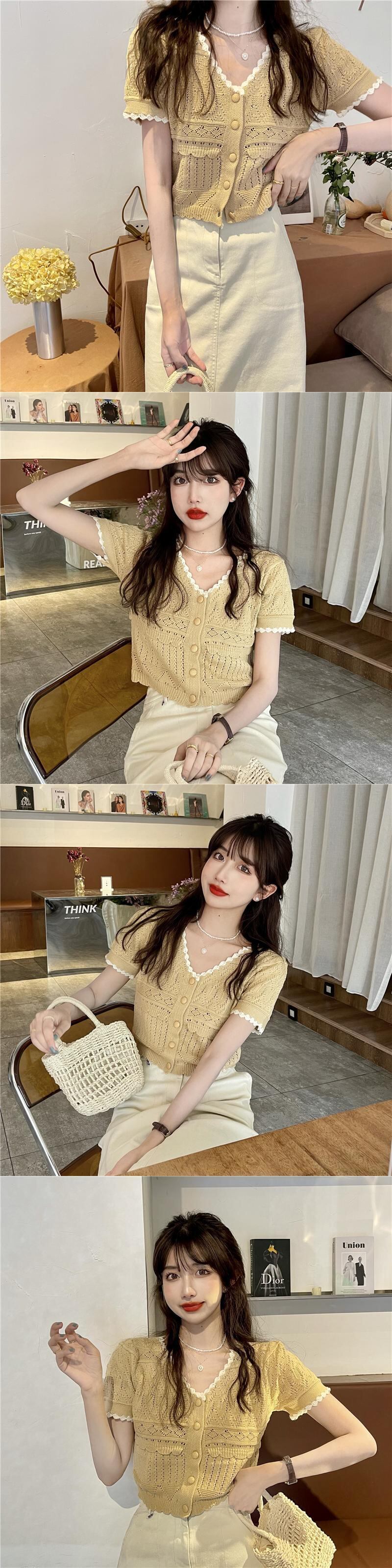 夏の甘くて年齢を減らすVネックトップウエスタンスタイルのオールマッチ半袖Tシャツレディースファッションショートピュア欲望シックで美しい小さなシャツ 大人ガーリー スウィート キュート カジュアル サマー 夏物 7460036707914581 | framboise21