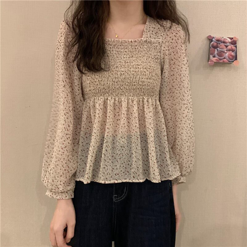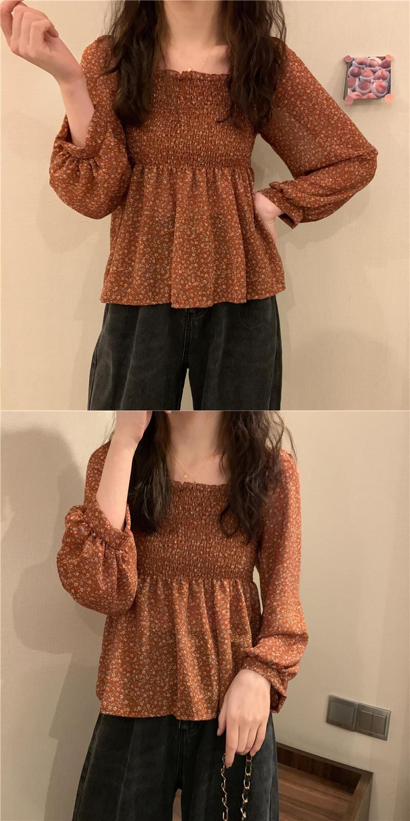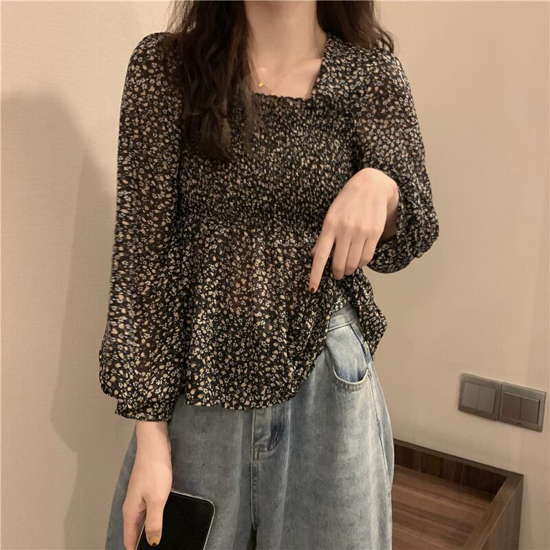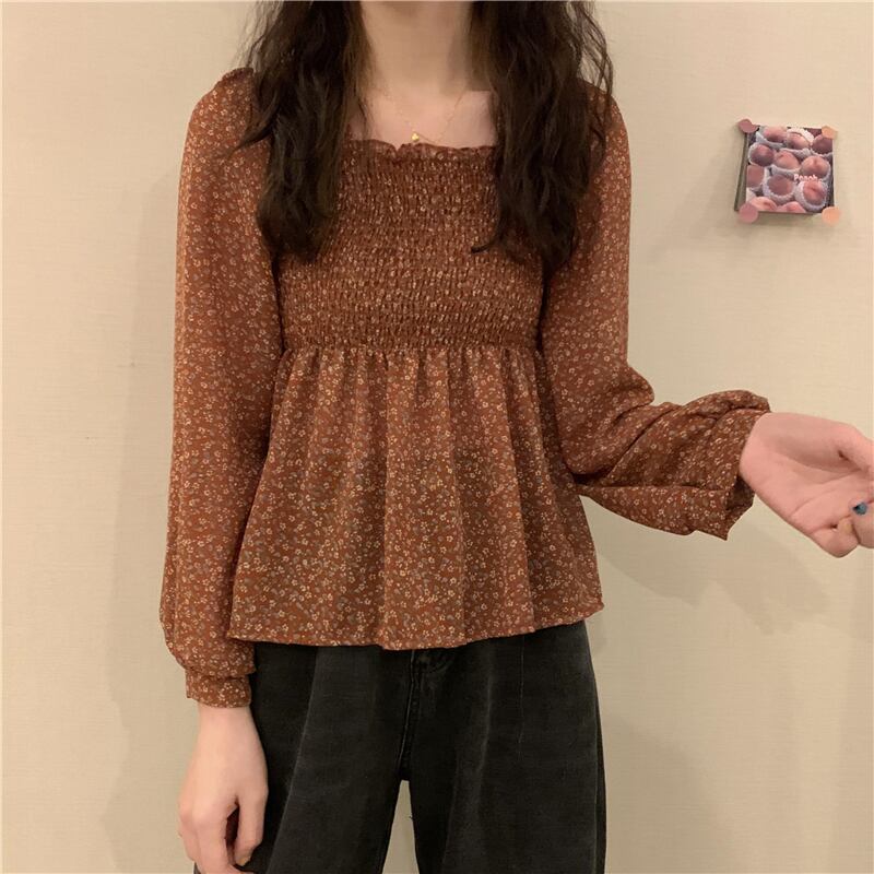 春のフレンチレトロウエスタンフローラルシフォンシャツレディーススモールシックウエストスクエアカラーショートトップスベビーシャツ スプリング 春物 花柄 スクウェア 7460064488146749 | framboise21