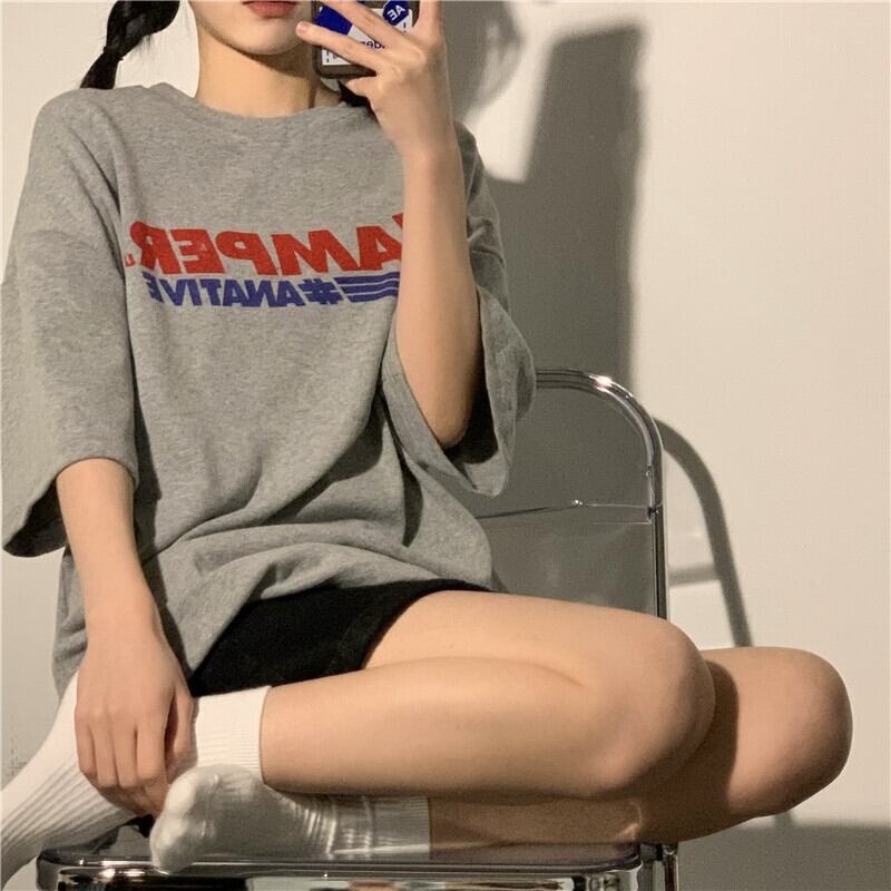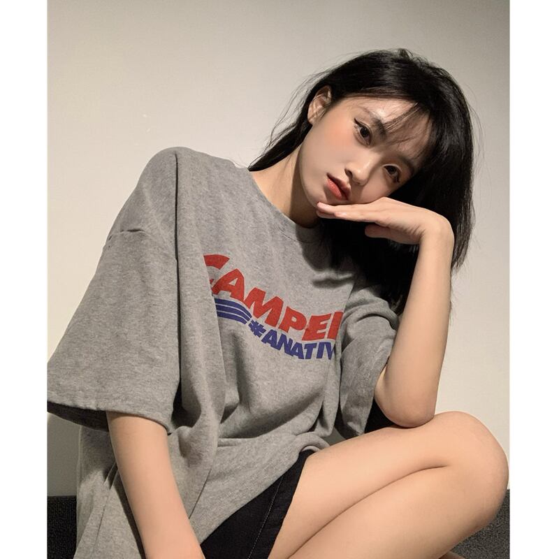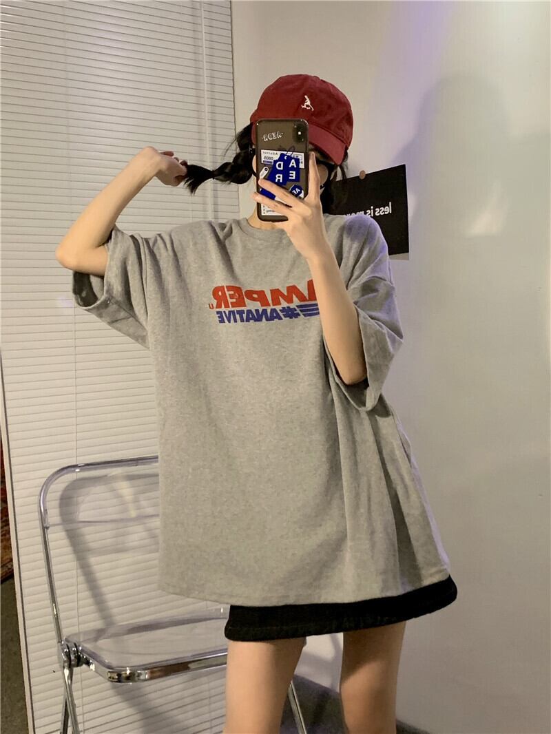 グレーの半袖Tシャツレディース2022年春夏新作デザインセンスニッチルーズバージョントップスインスティッド スプリング 春物 サマー 夏物 7460073389021741 | framboise21