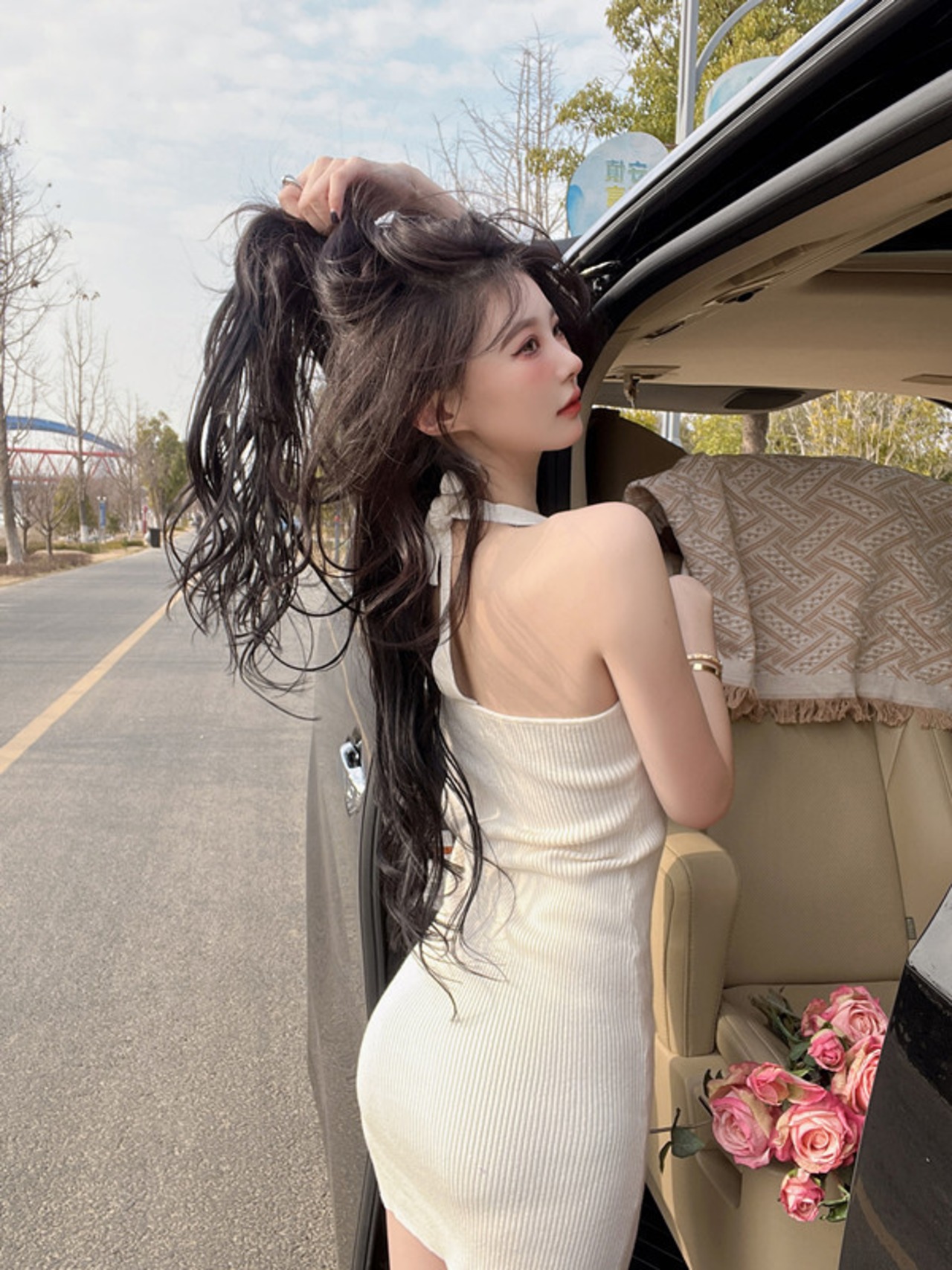 色:ホワイトホルターニットスカート
