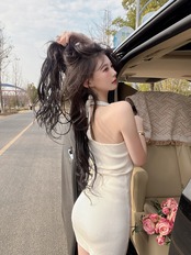 夏の新しい純粋な欲望セクシーなVネックホルターネックニットドレス女性のタイトなバッグヒップノースリーブベストスカート サマー 夏物 ピュア 7460061278428513