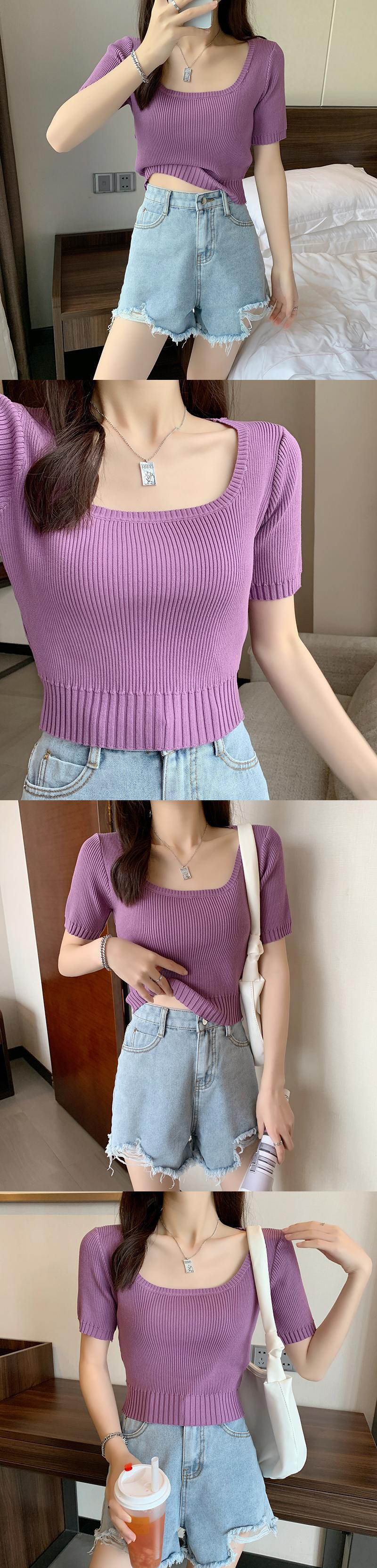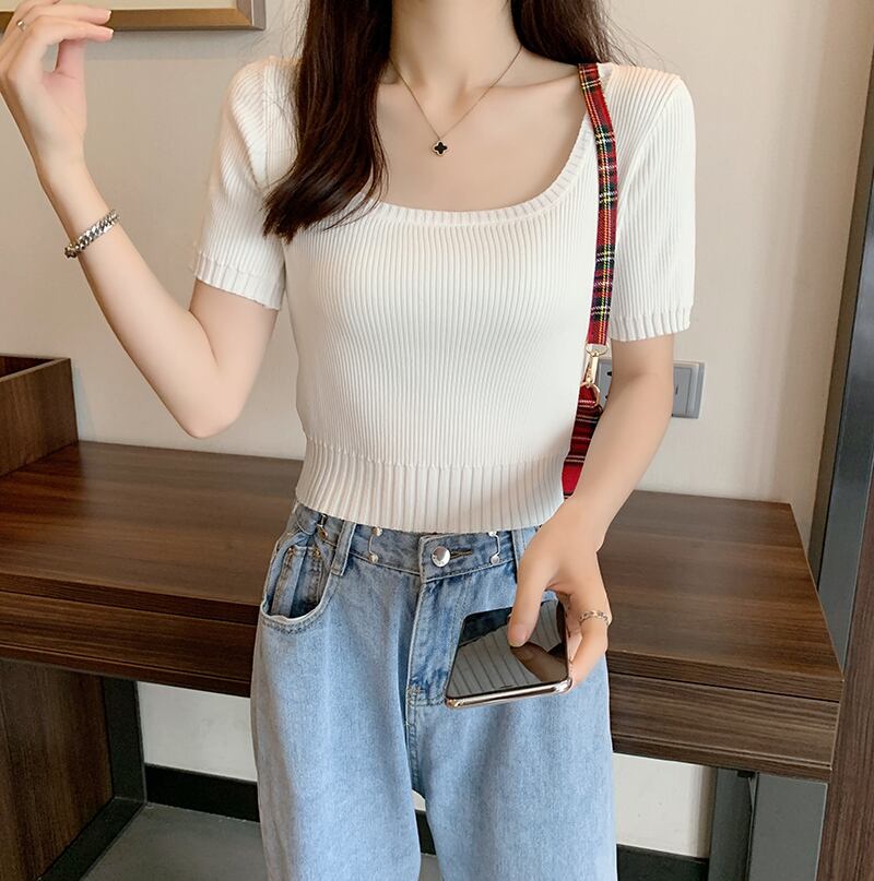 2022年夏の新しい純粋な欲望ワイルドホワイト半袖Tシャツレディースデザインニッチショートスクエアネックニットトップス サマー 夏物 ピュア スクウェア 7460037499731235 | framboise21