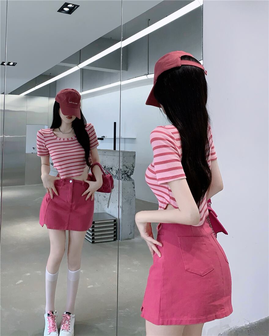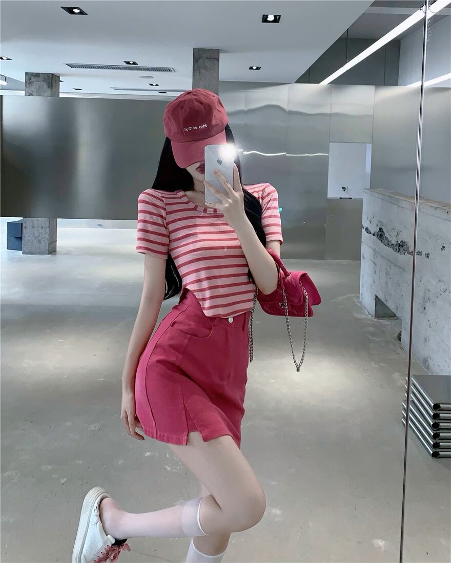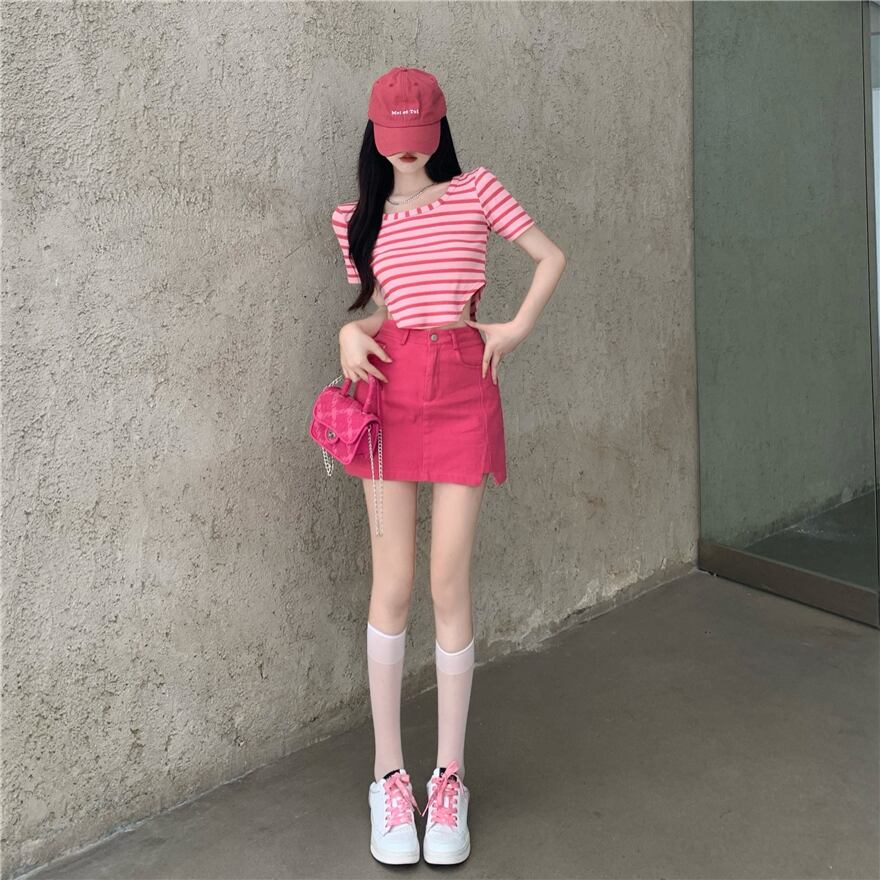 ローズレッドデニムスカートレディースサマードラゴンフルーツカラースカートハイウエストは薄手でピュアな欲望スプリットバッグヒップスカート ハイウェスト 夏物 7460016484071035 | framboise21