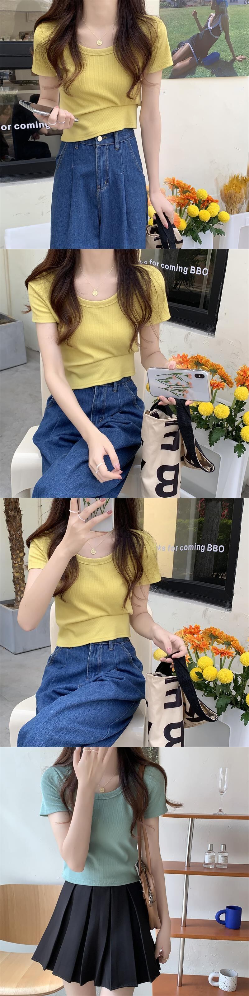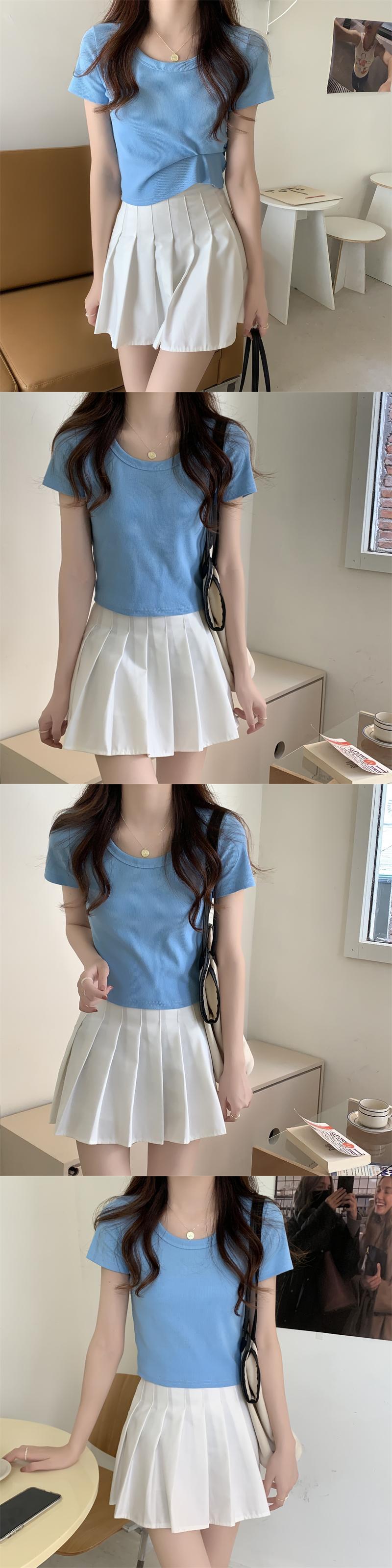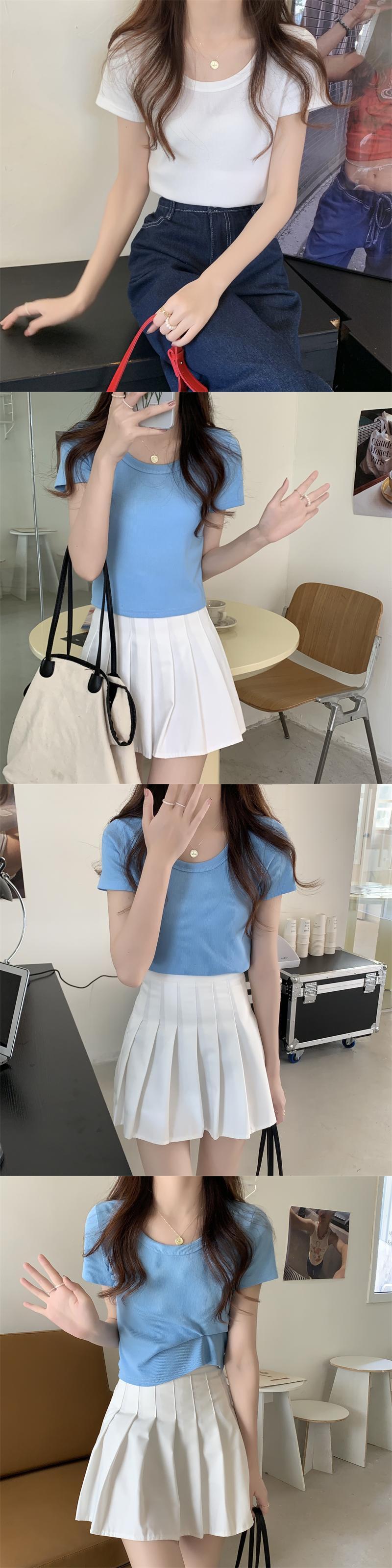 ラウンドネック半袖Tシャツレディース2022夏の新しいスリムフィットと薄いオールマッチショートハイウエストトップイントレンディ サマー 夏物 Oネック 7460079408130567 | framboise21