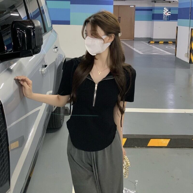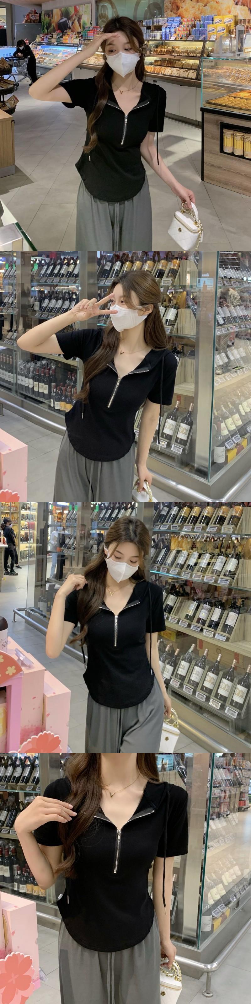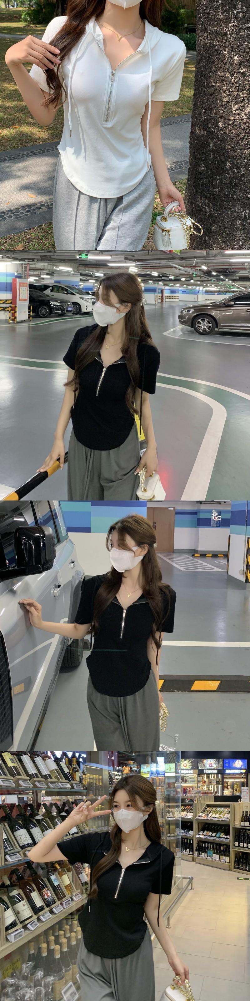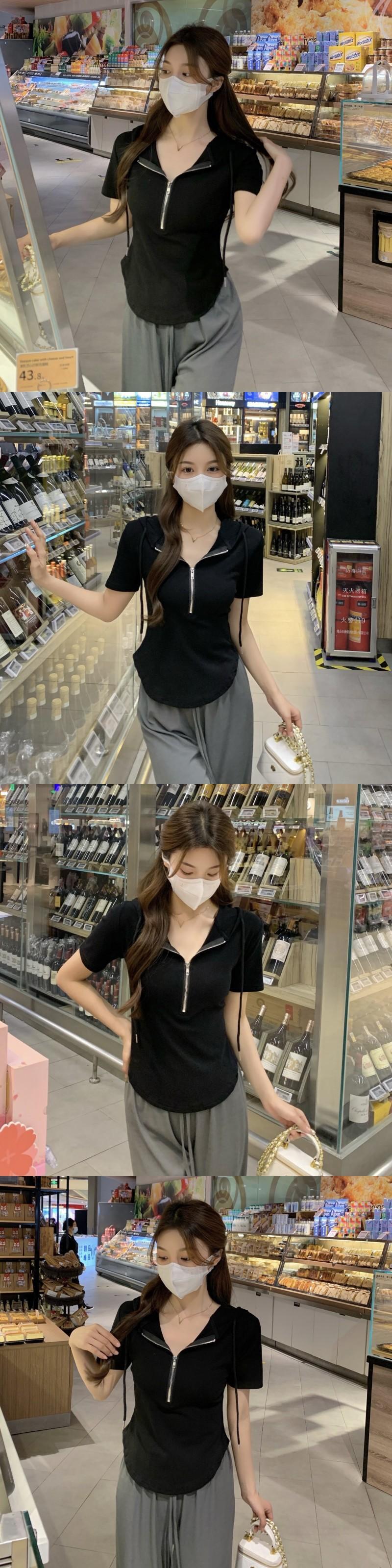 白い不規則な半袖フード付きTシャツ女性の2022年の新しい純粋な欲望Tシャツフロントショルダースリムスポーツトップ夏 ホワイト サマー 夏物 ピュア 7460054684890524 | framboise21
