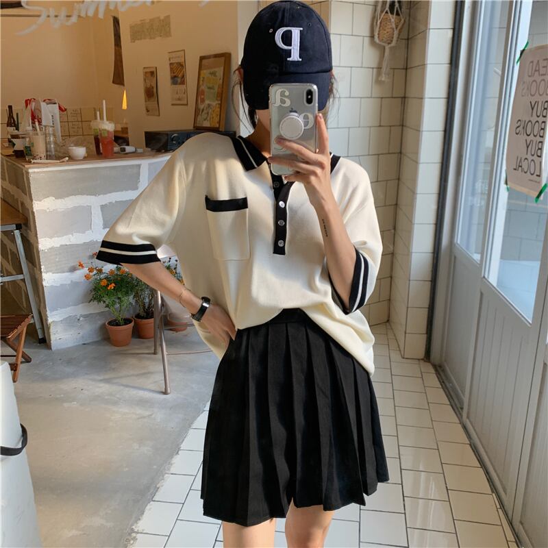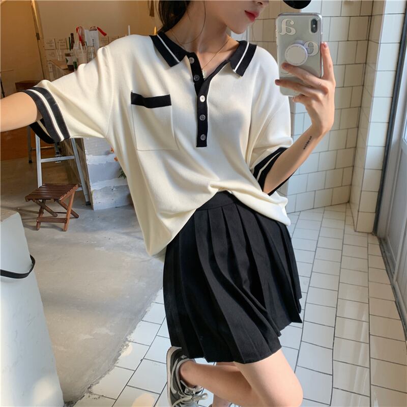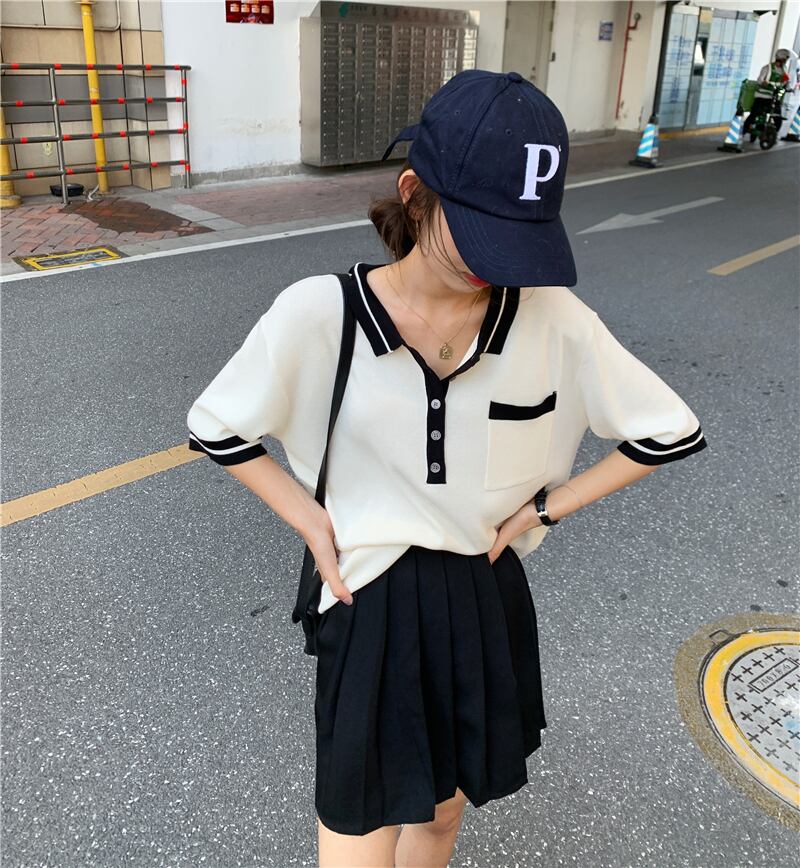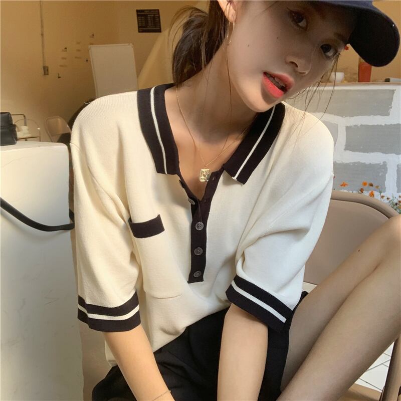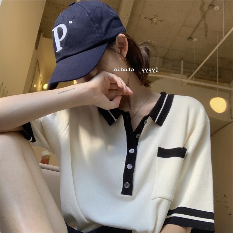 2022年の新しいトレンディな超格好良いハイエンドの甘いクールなシックなトップ薄いポロの小さなシャツ半袖Tシャツ女性の夏 大人ガーリー スウィート キュート カジュアル サマー 夏物 7460031454599142 | framboise21