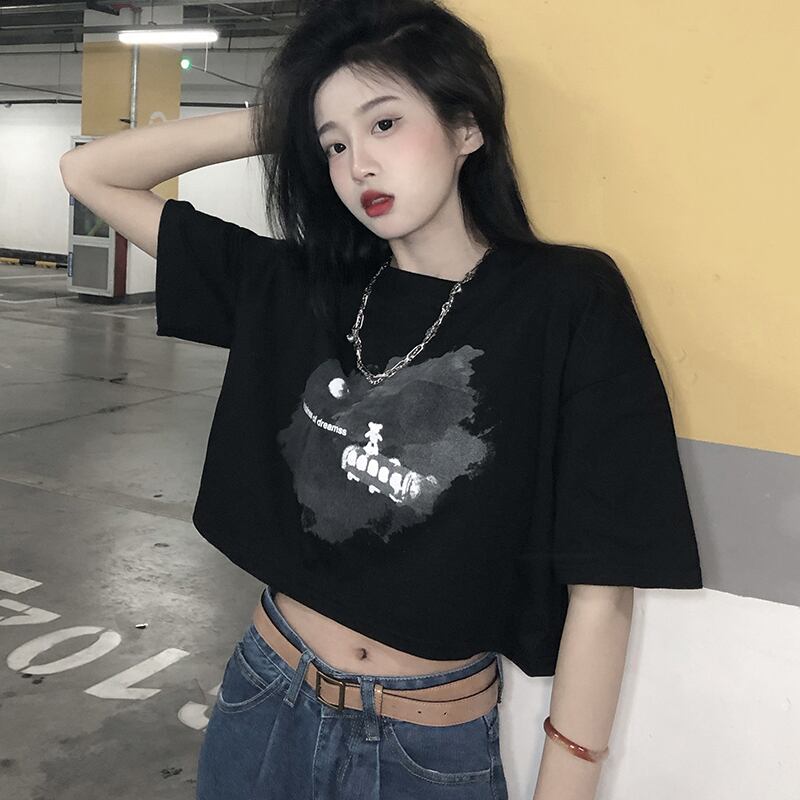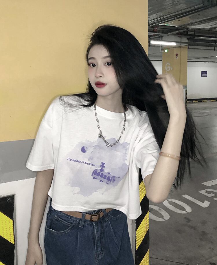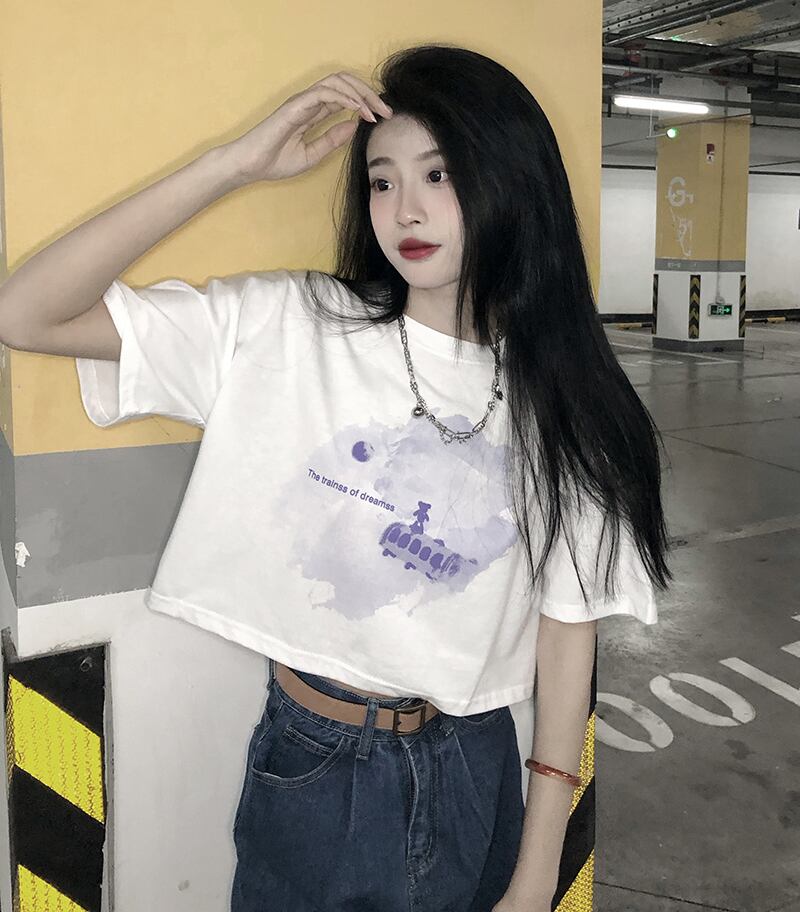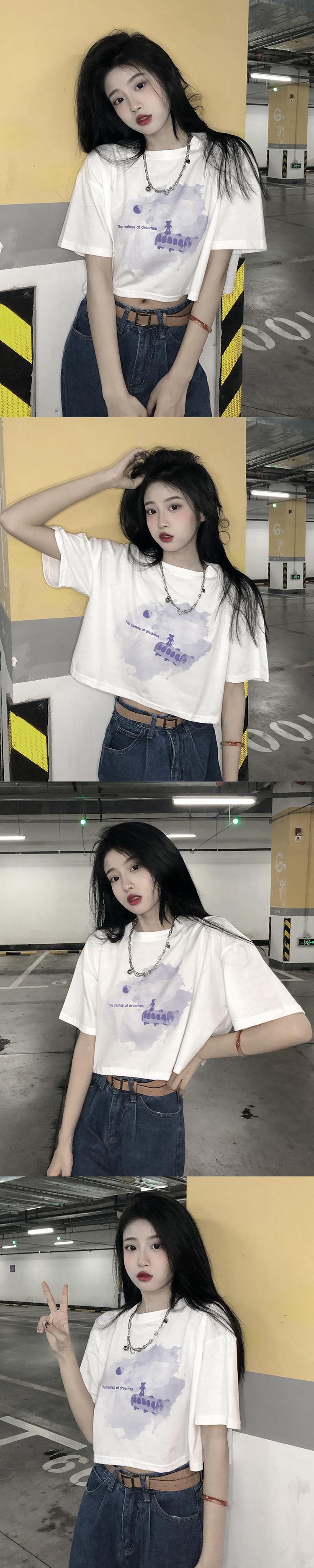 色:白の短い水彩列車T,黒の短い水彩列車T