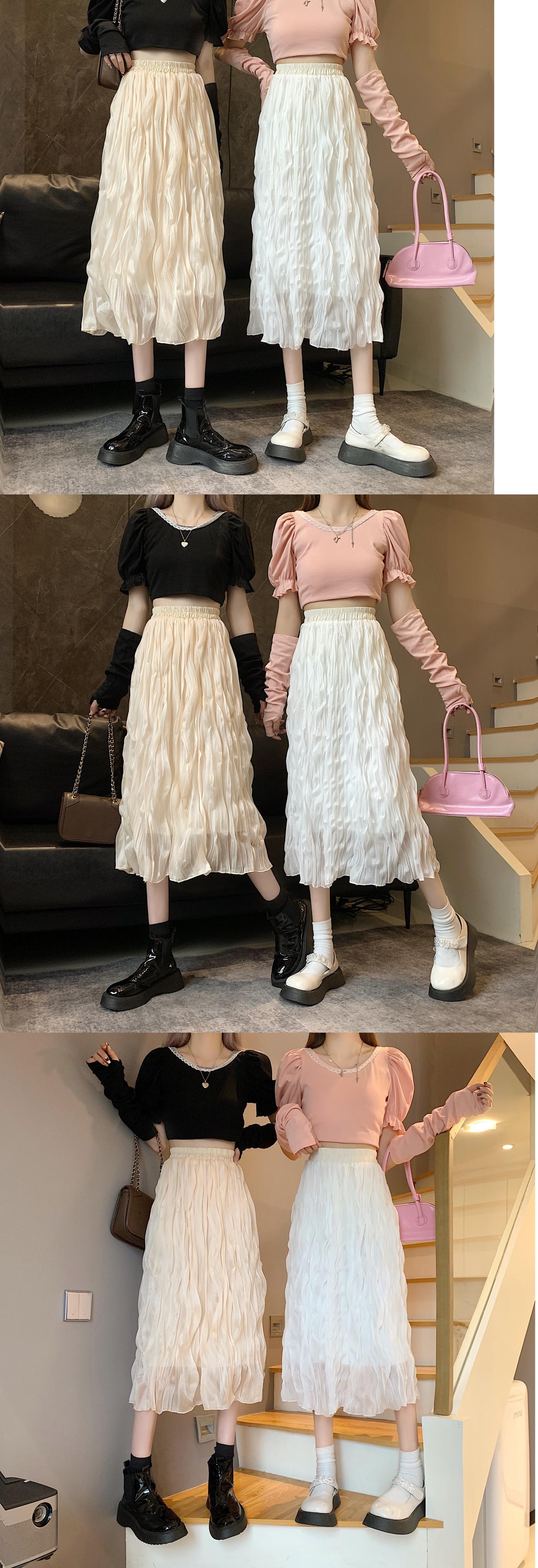 2022年春の新しいスーパーフェアリープリーツシックハイウエスト、薄いプリーツ気質、ミドル丈Aラインスカート ハイウェスト スプリング 春物 7460022737236714 | framboise21