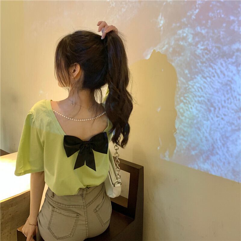 アボカドグリーン半袖Tシャツレディース2022年新夏甘くてクールなスタイルのユニークなニッチボウトップ リボン 大人ガーリー スウィート キュート カジュアル サマー 夏物 7460054719541747 | framboise21
