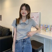 ホット露出へそショートbmトップ夏半袖デザインニッチピンク刺繡ポロシャツハイウエストTシャツ女性の潮 ハイウェスト 刺繍 サマー 夏物 7460078148620551
