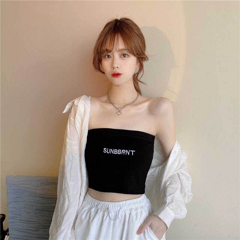 夏の黒のチューブトップウェアデザインセンスストラップレスラップチェストストラップ胸パッド美しいベストベストスリング女性 ブラック サマー 夏物 7460079018527256 | framboise21