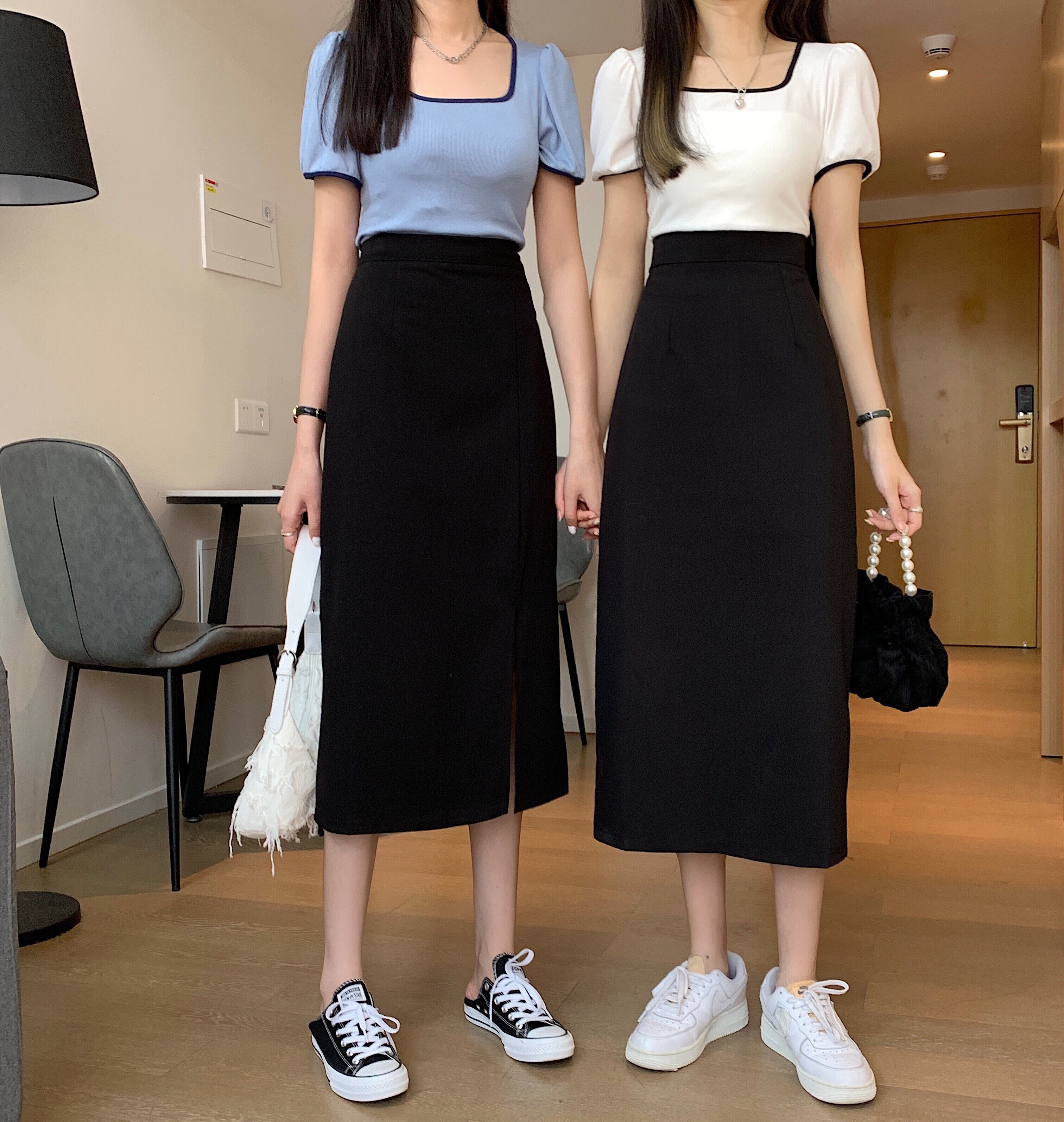 ブラックスカートレディース2022年新夏ハイウエストスリムAラインスカートミドル丈パッケージヒップストレートスリットロングスカート サマー 夏物 7460034309531020 | framboise21