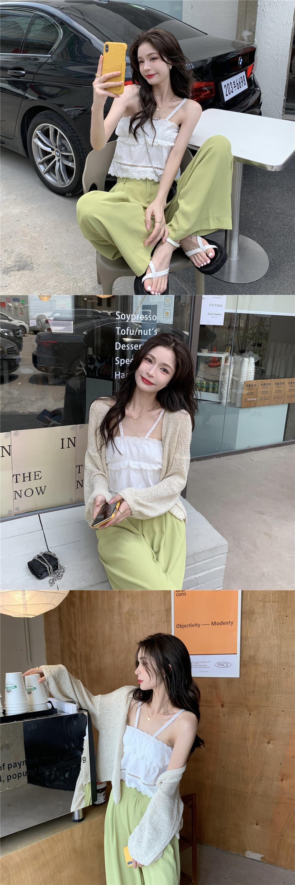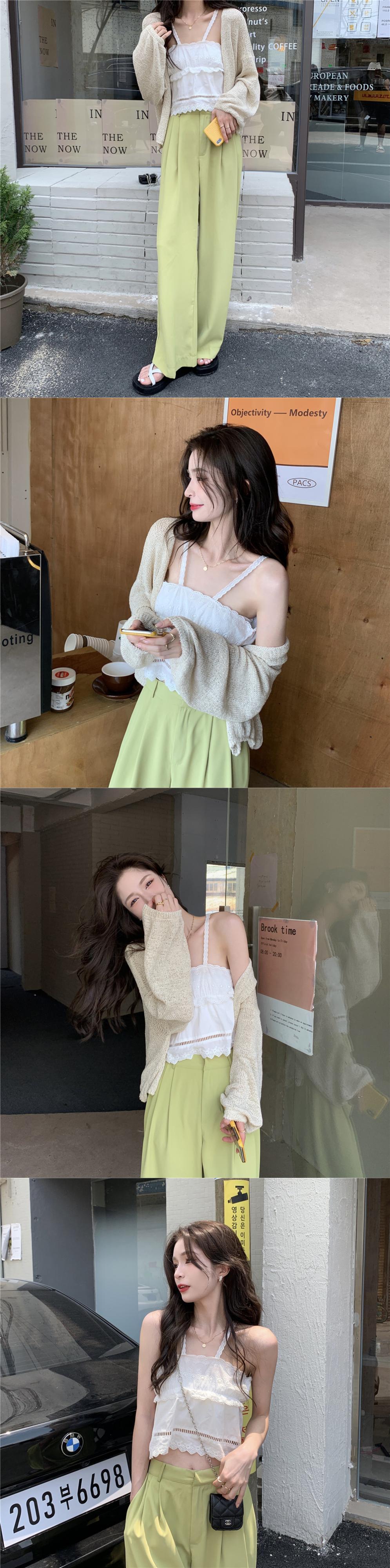 色:ホワイトサスペンダー,アプリコットニットカーディガン
