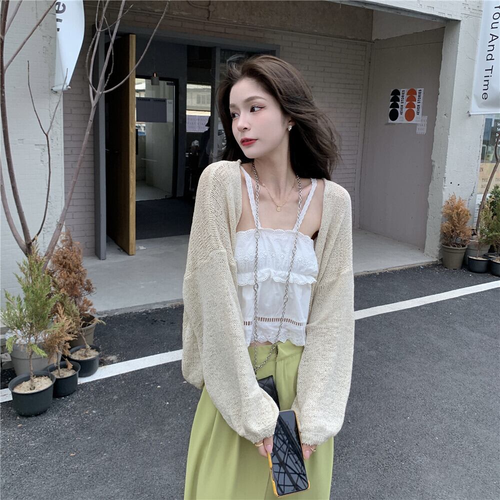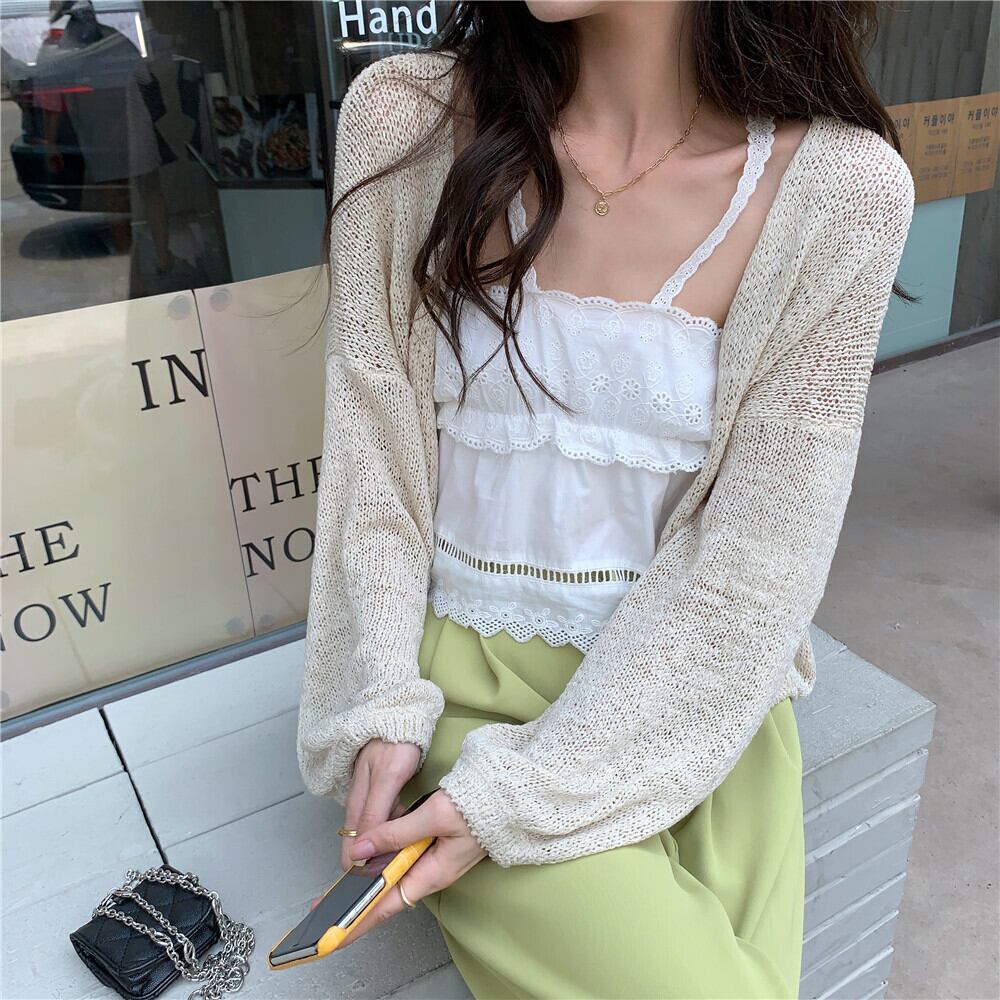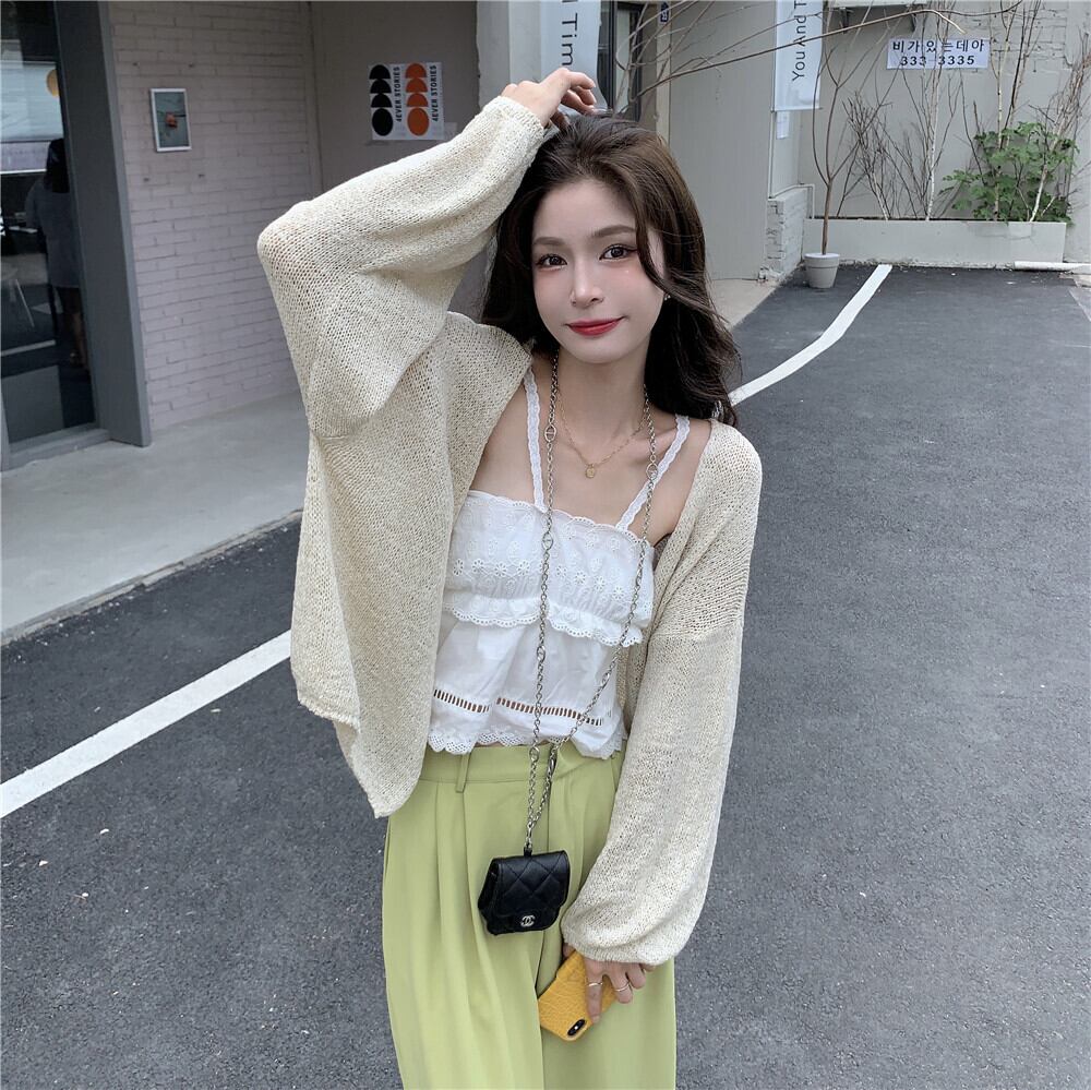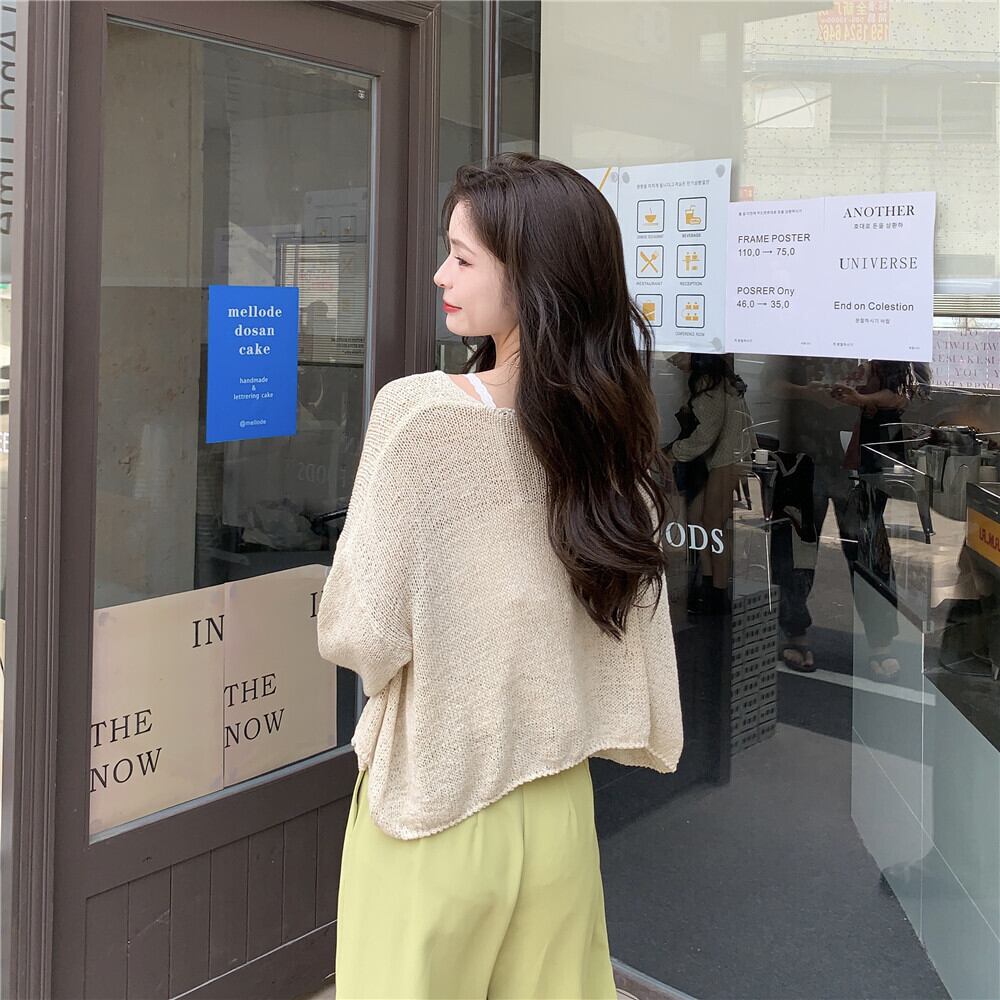 薄手のニットセーターカーディガンレディースサマーショール日焼け止めブラウスハイウエストデザインニッチジャケットアイスシルクホロートップ ハイウェスト 夏物 746006084979027 | framboise21