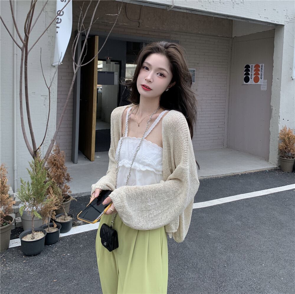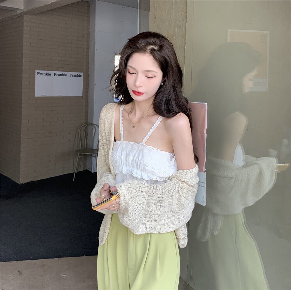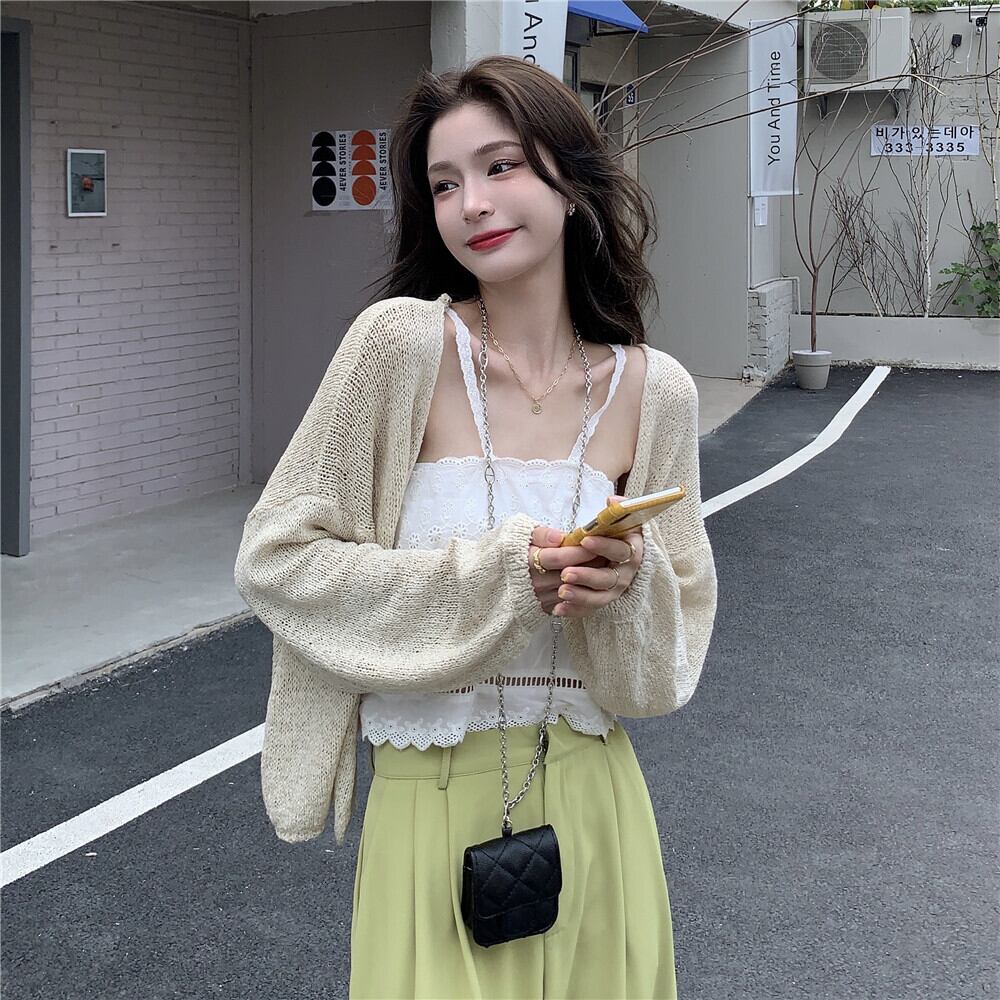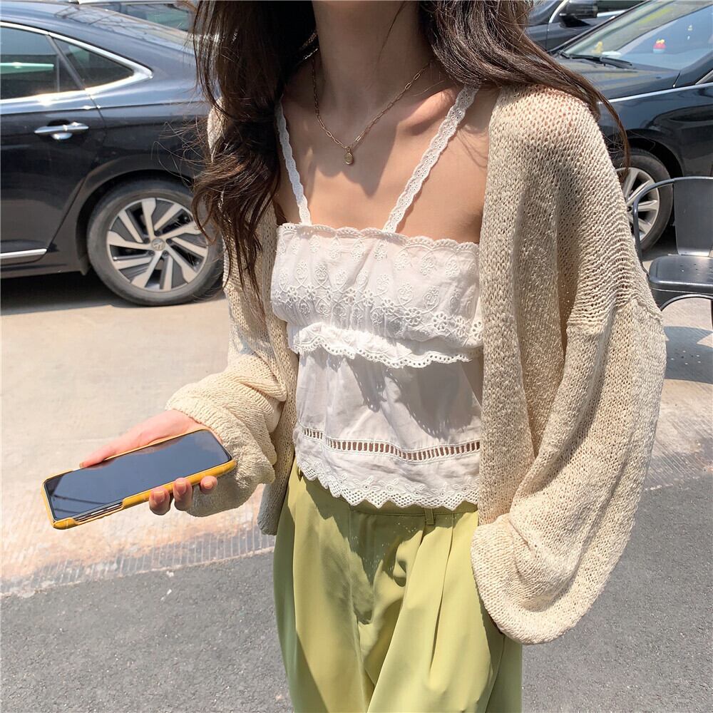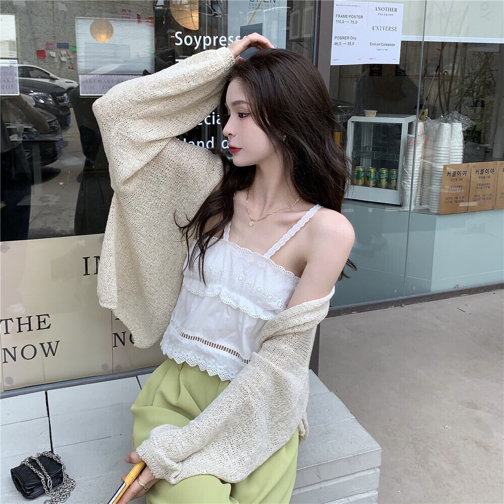 薄手のニットセーターカーディガンレディースサマーショール日焼け止めブラウスハイウエストデザインニッチジャケットアイスシルクホロートップ ハイウェスト 夏物 746006084979027 | framboise21