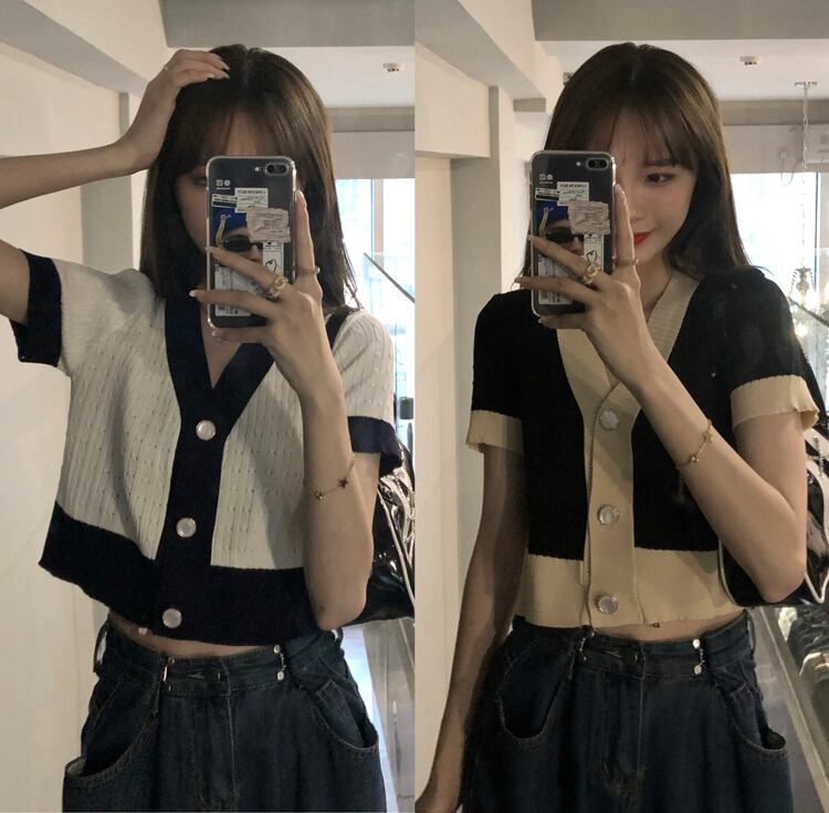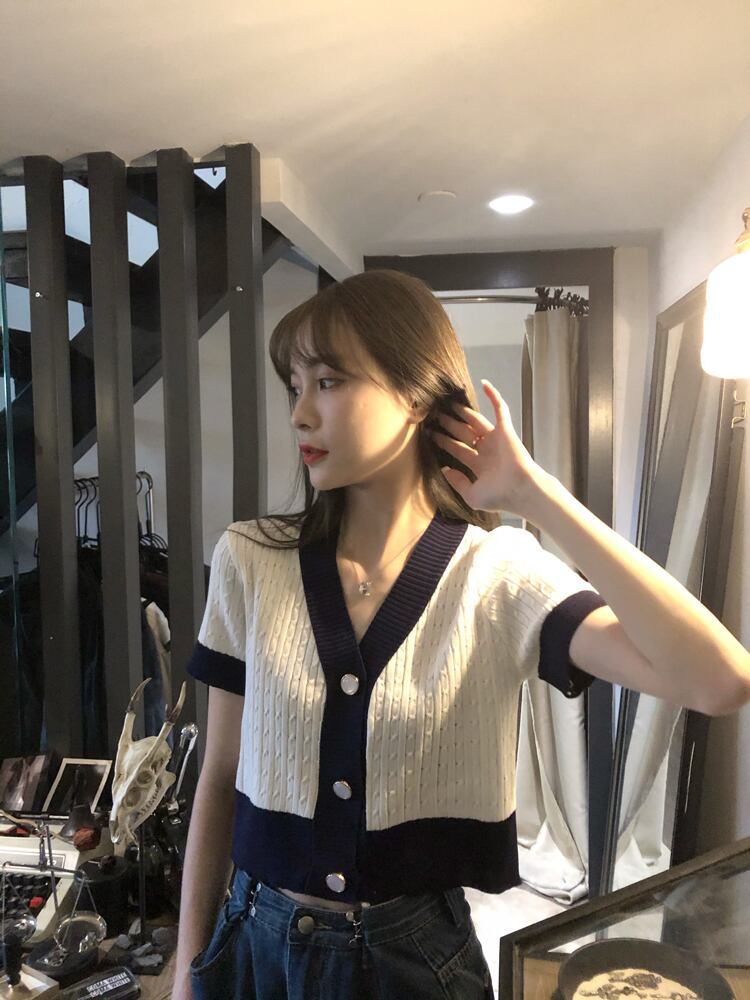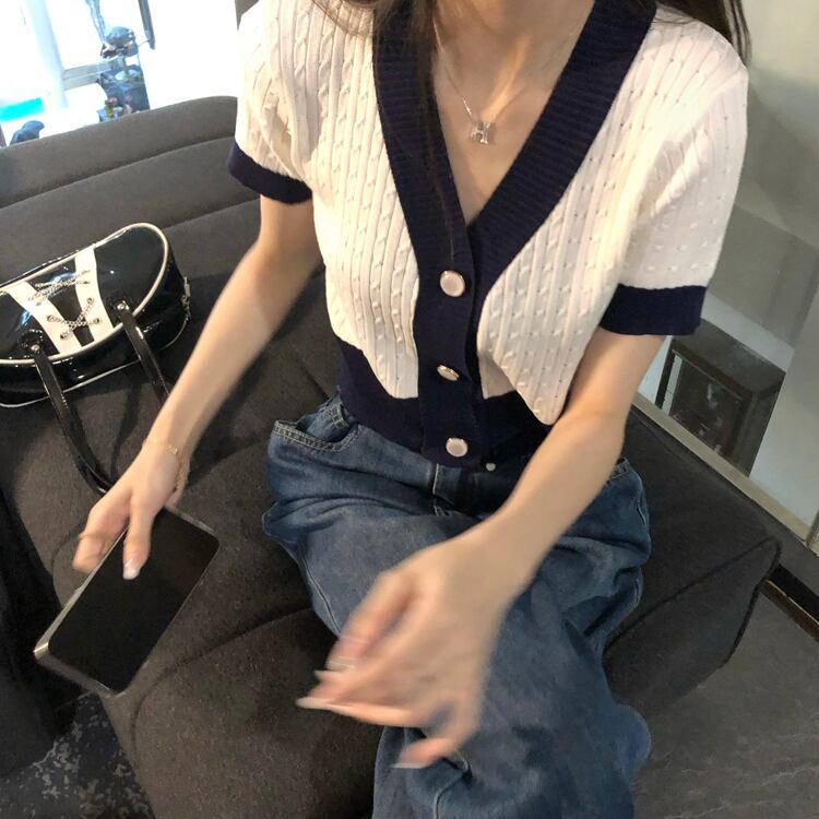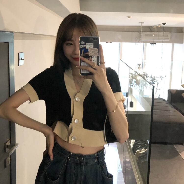 2022年夏のニュースタイル香港フレーバーシックなショートニットセーターレディースVネック半袖カーディガントップ、ハイウエストパンツ ハイウェスト サマー 夏物 7460063669226551 | framboise21