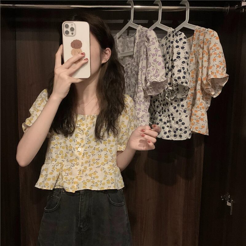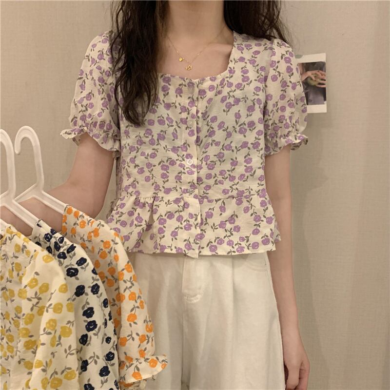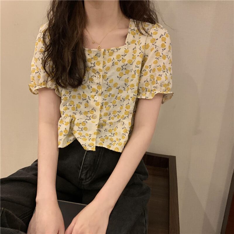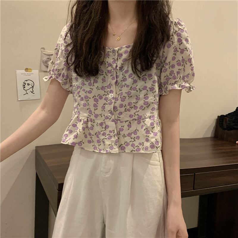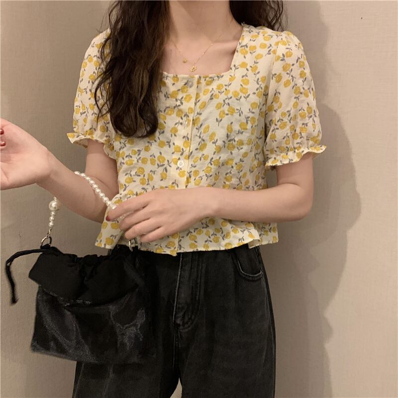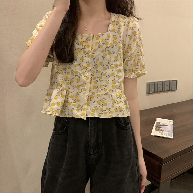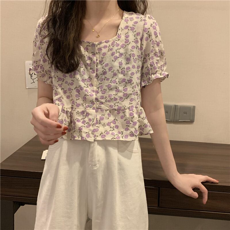 センスニッチフローラルドールシャツレディース半袖夏フレンチレトロショートスクエアネックパフスリーブbmトップ サマー 夏物 花柄 スクウェア 7460039541681279 | framboise21