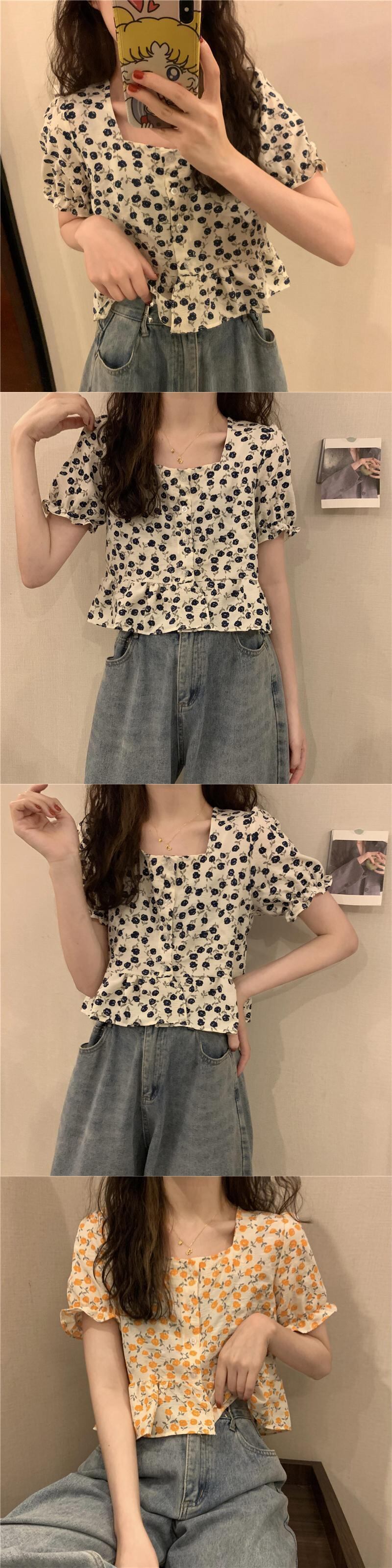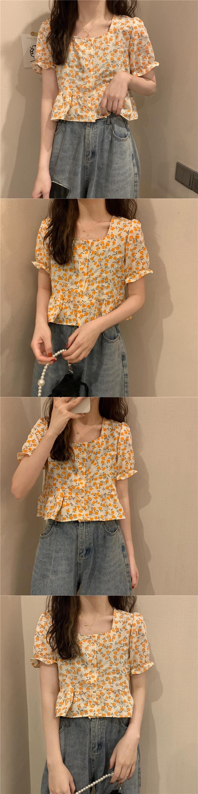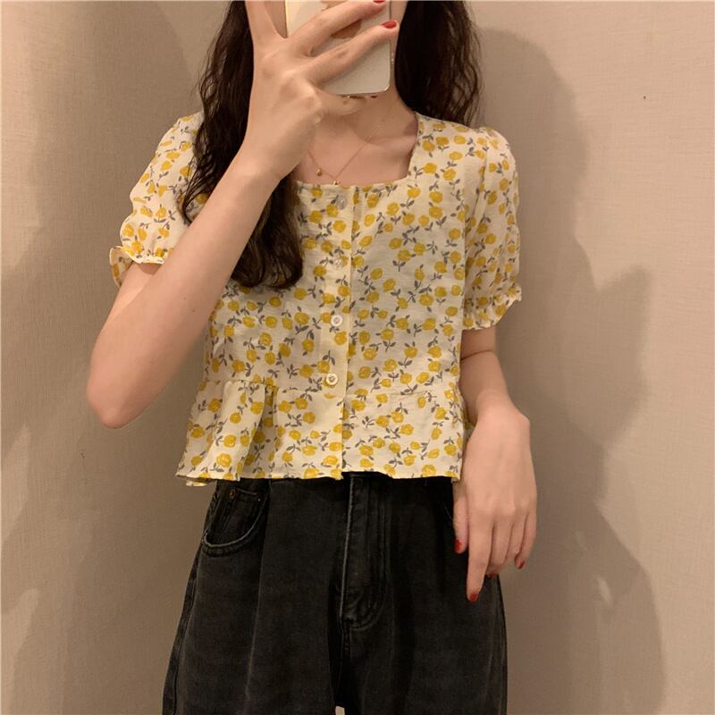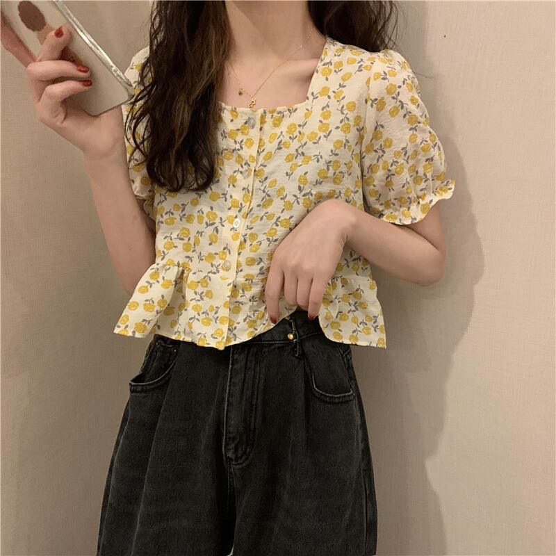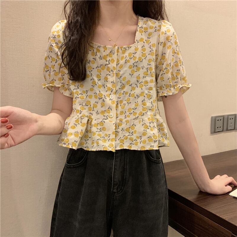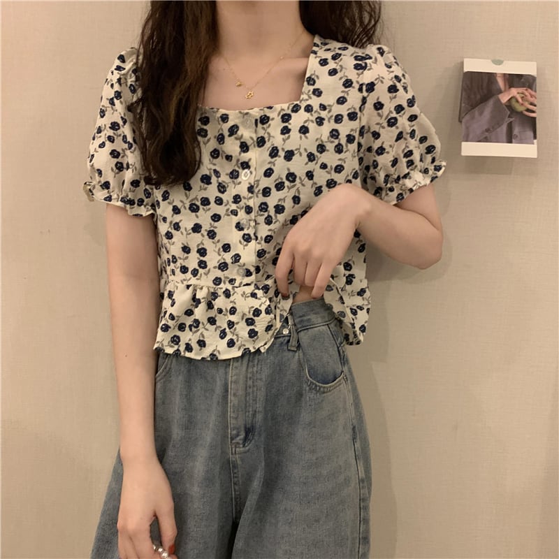 センスニッチフローラルドールシャツレディース半袖夏フレンチレトロショートスクエアネックパフスリーブbmトップ サマー 夏物 花柄 スクウェア 7460039541681279 | framboise21