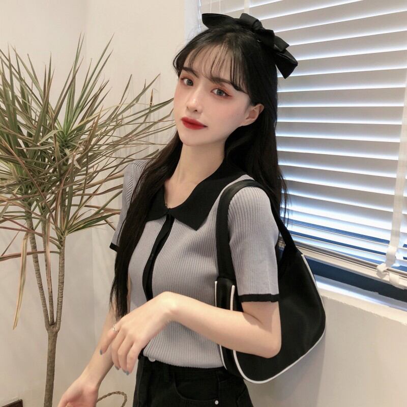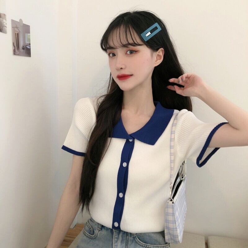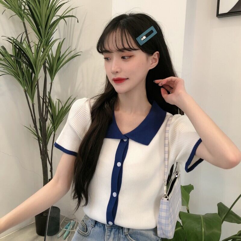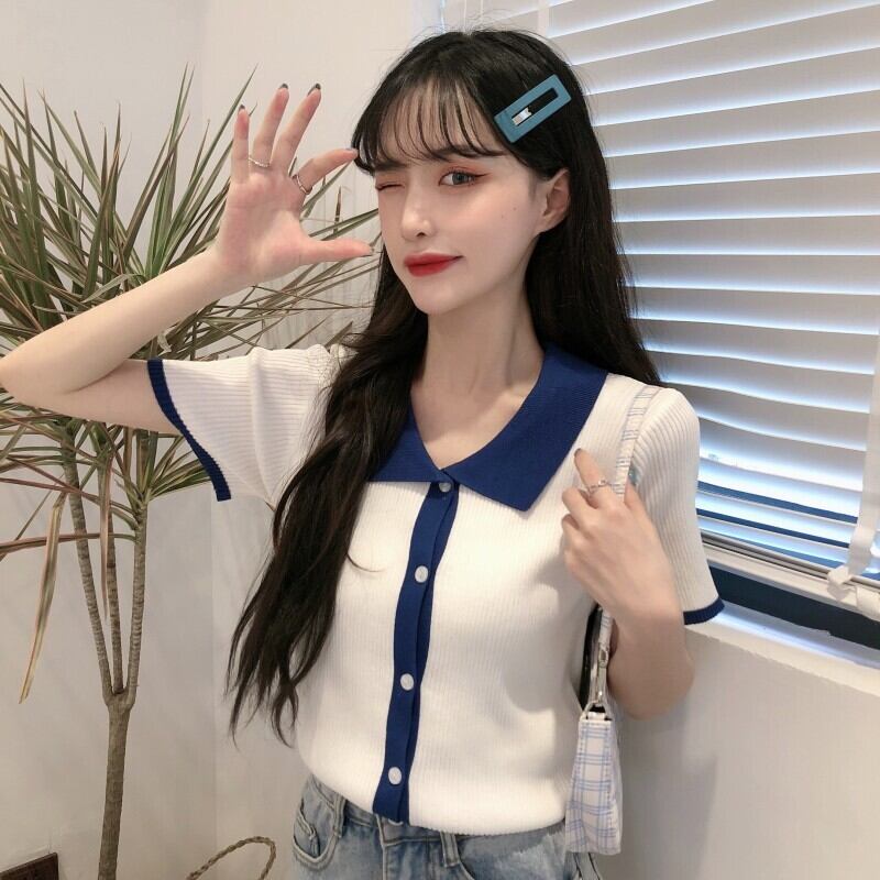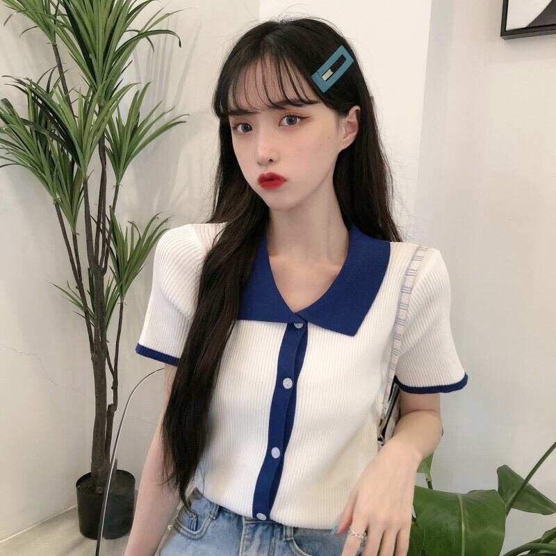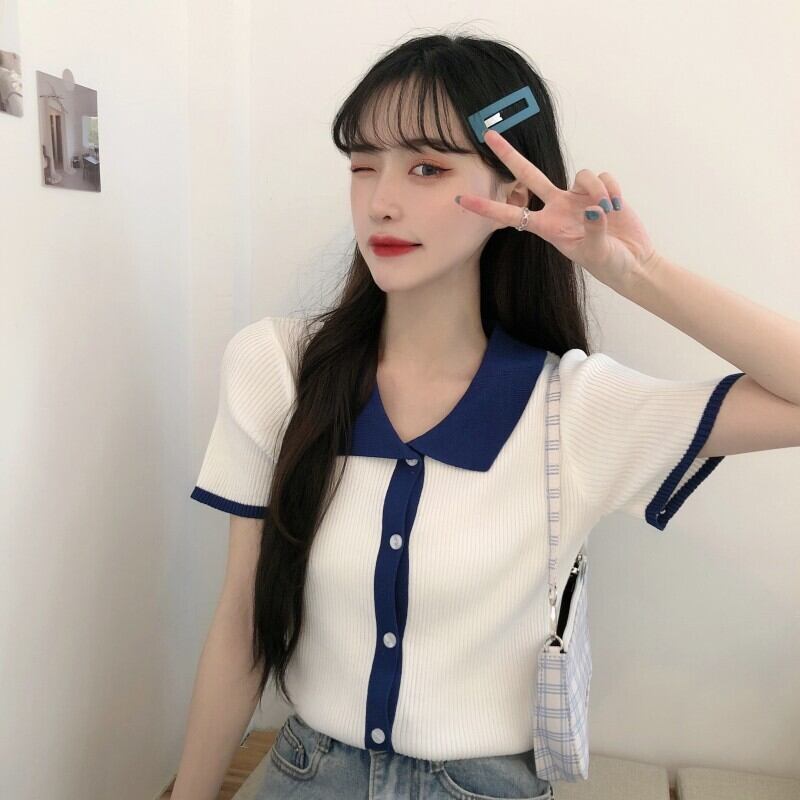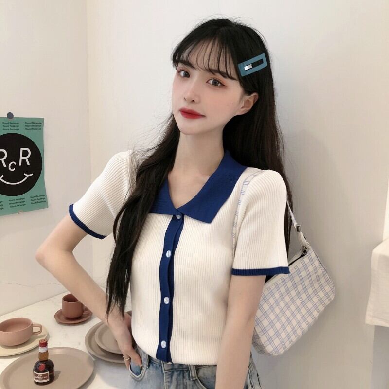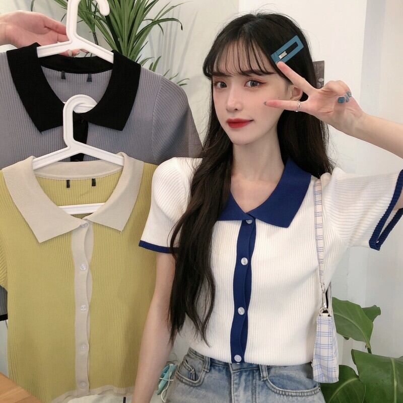 半袖Tシャツレディースデザインセンス2022夏新作ファッションオールマッチカラーヒットポロカラーシングルブレストシックトップ サマー 夏物 7460029100296000 | framboise21