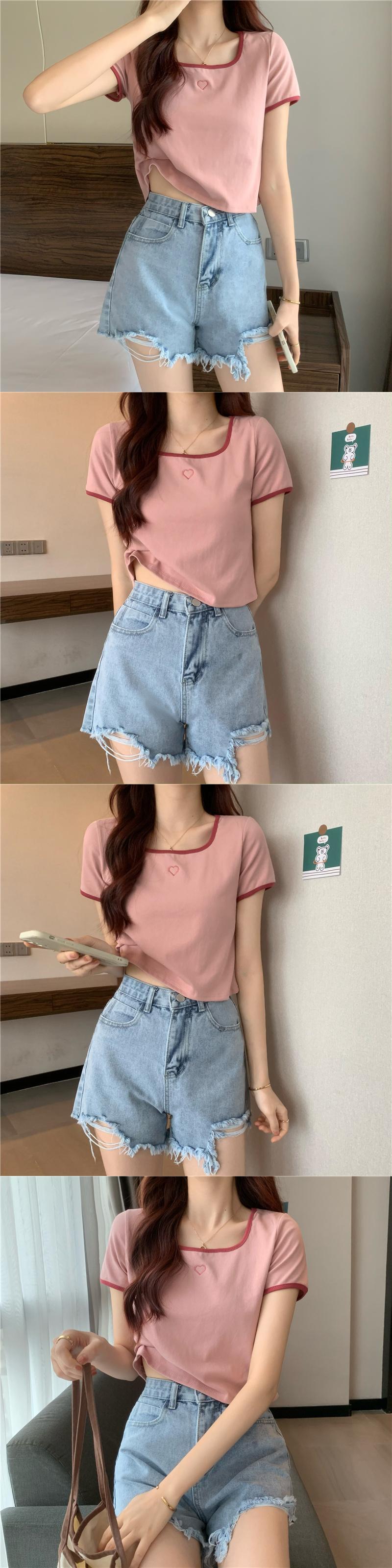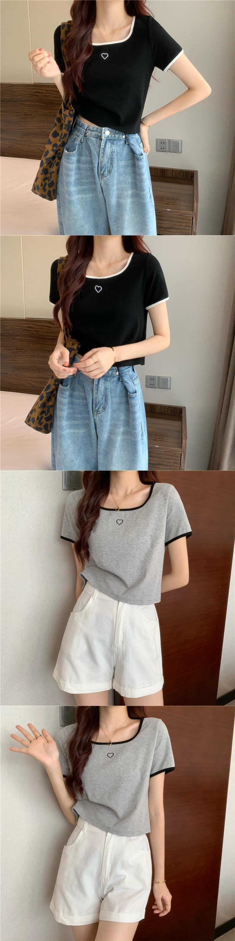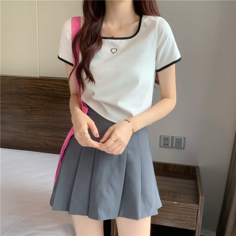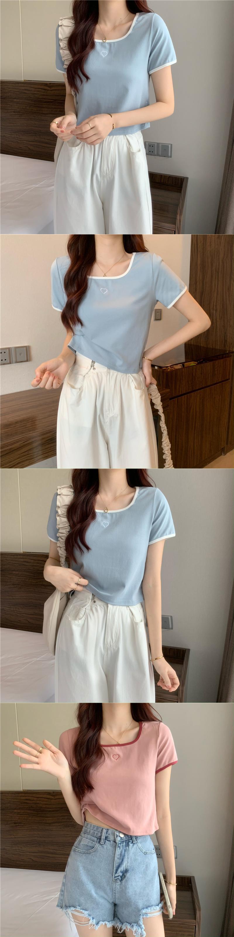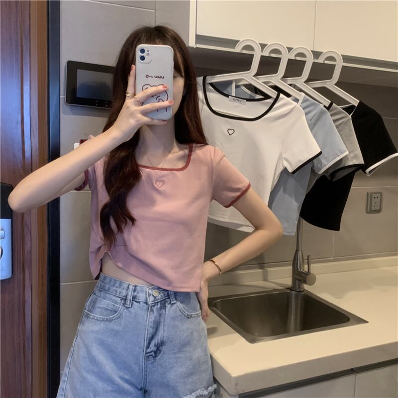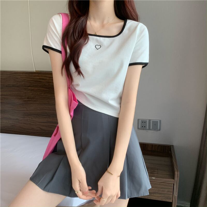 スクエアカラーカラーボーン半袖Tシャツレディーススペシャルデザインニッチスウィートファーストラブヒットカラースモール145トップサマードレス 大人ガーリー キュート カジュアル 夏物 スクウェア 7460075632710754 | framboise21