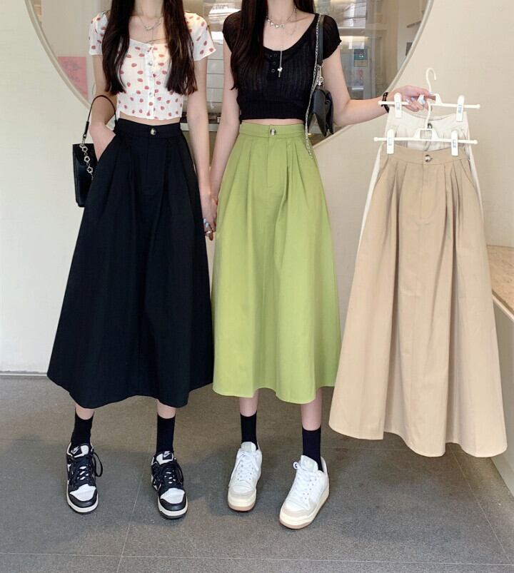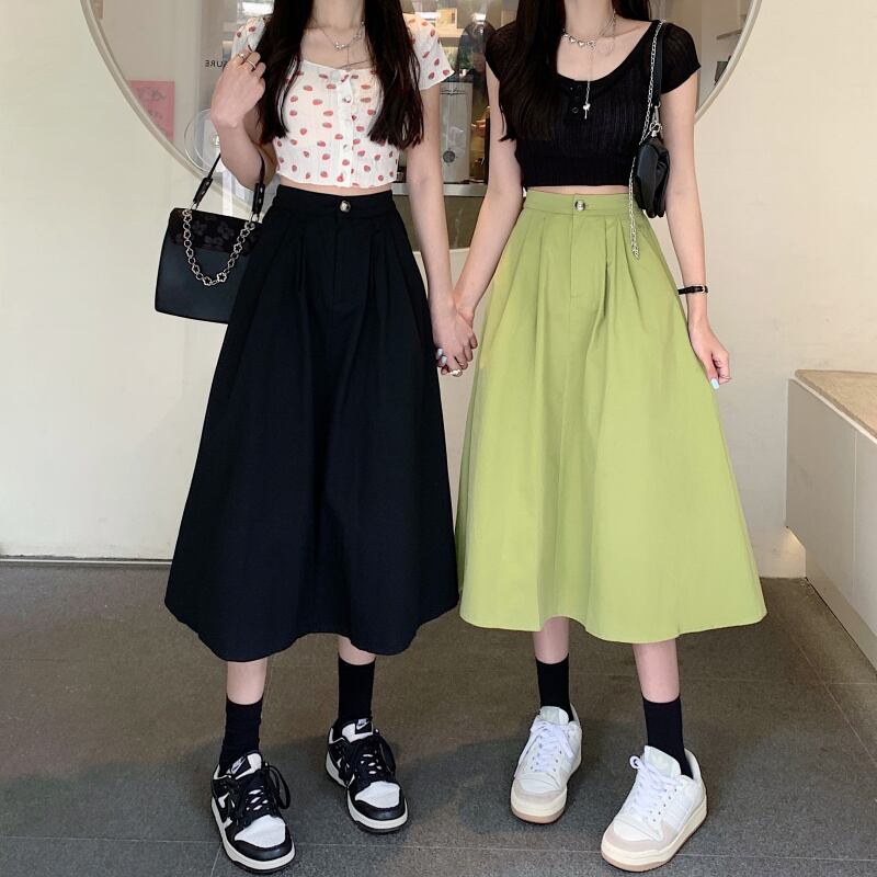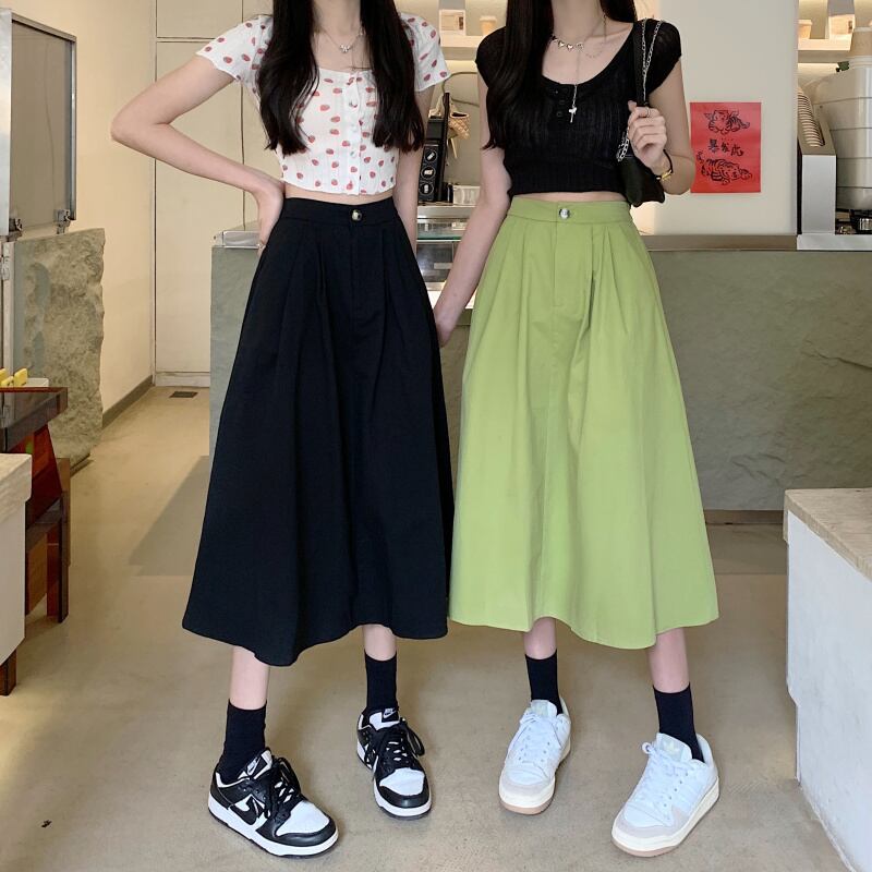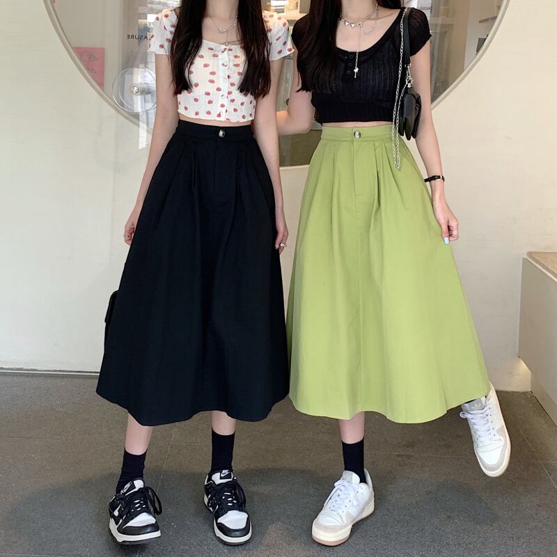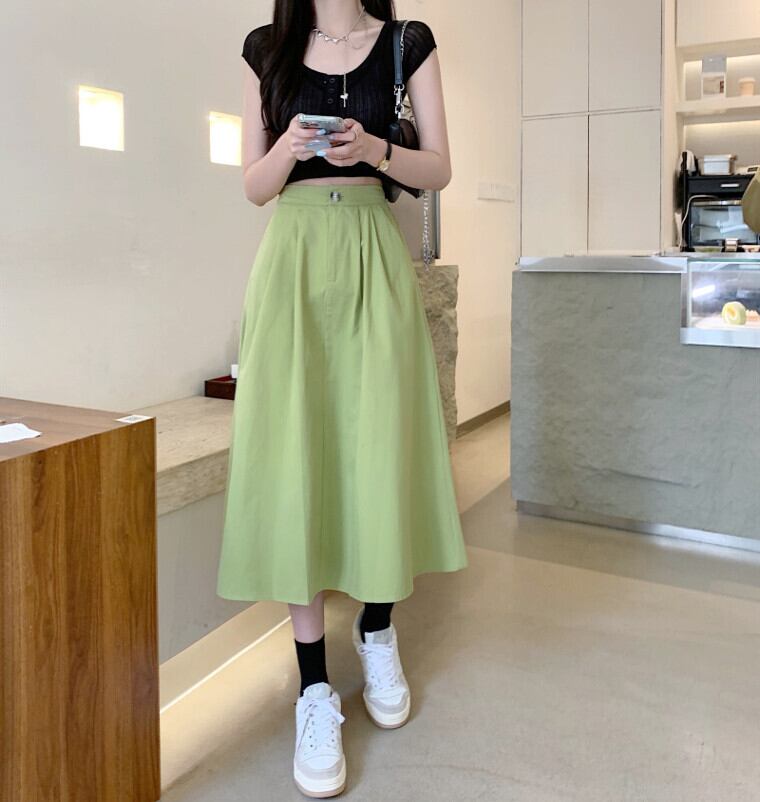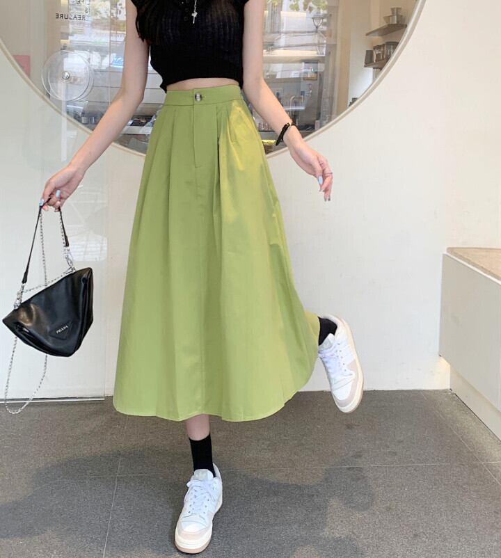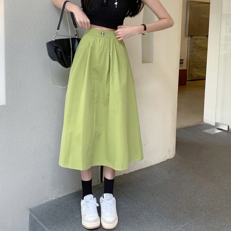 夏のミドル丈アボカドグリーンハイウエストスカートレディースハイエンドフライドストリートやさしいハイウエストスリムロングスカート サマー 夏物 7460091213861685 | framboise21