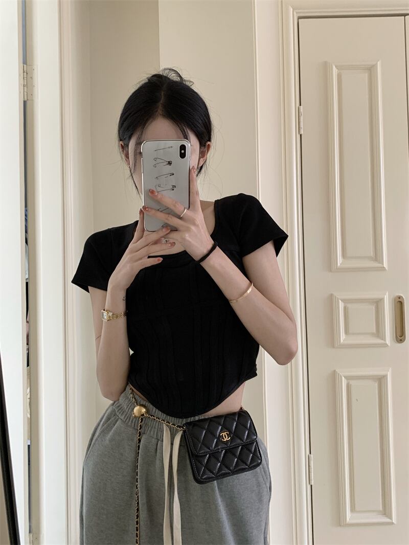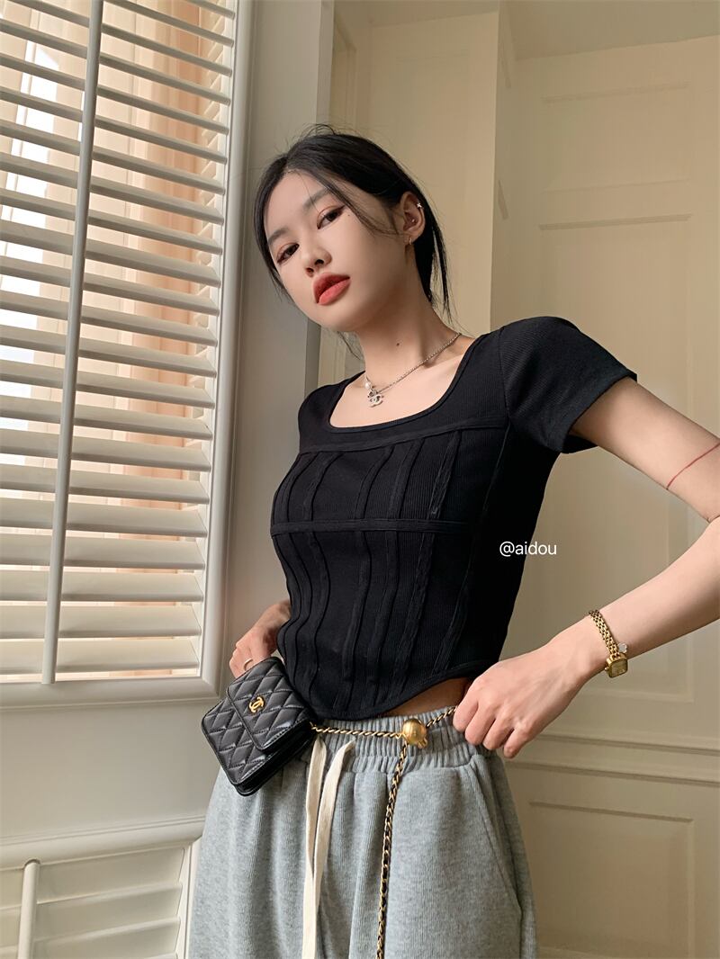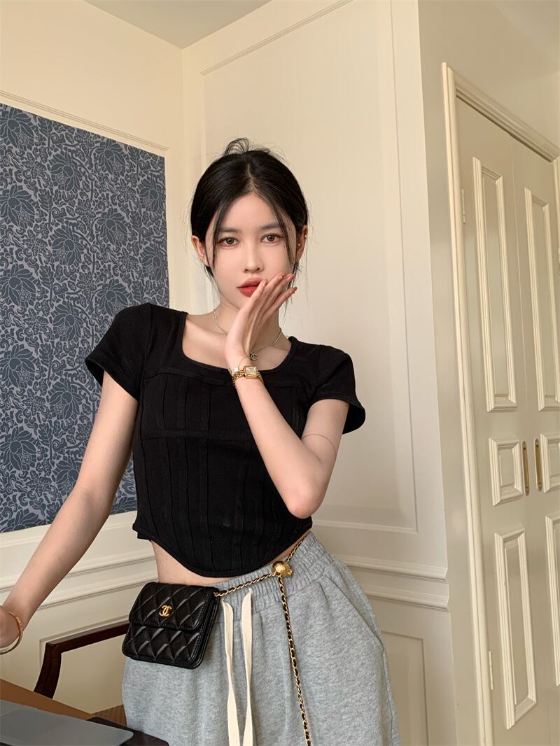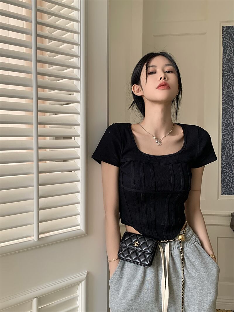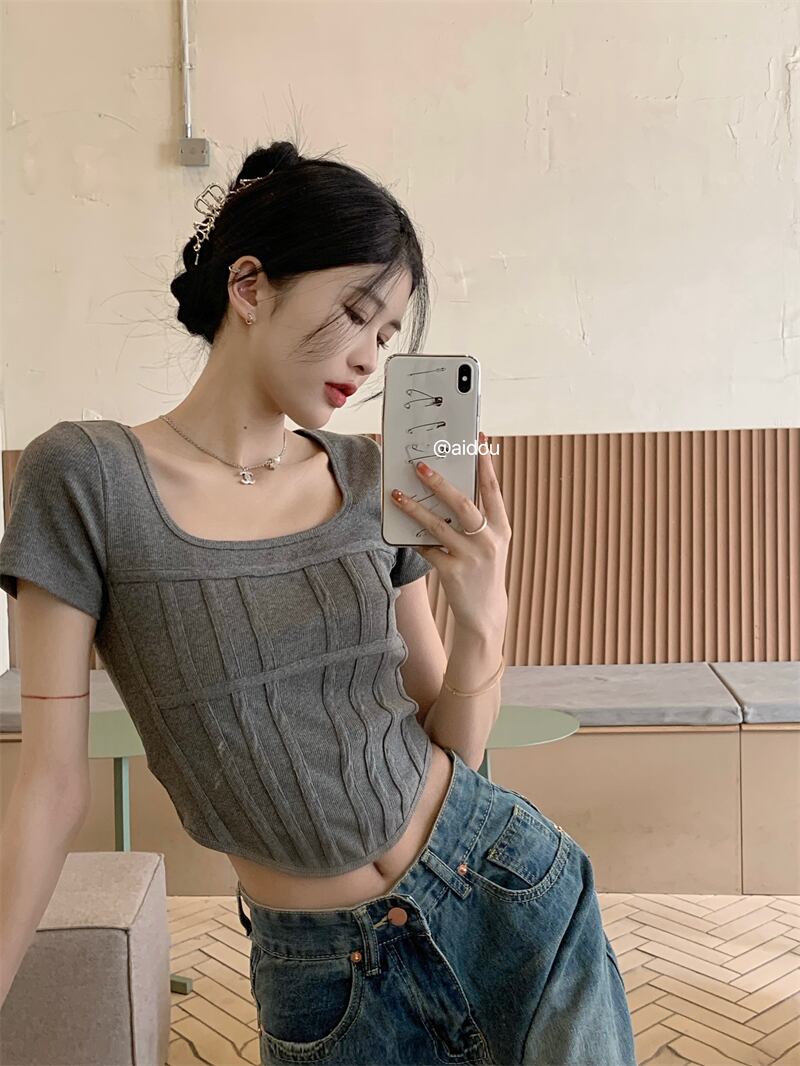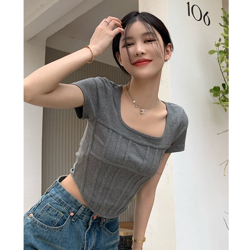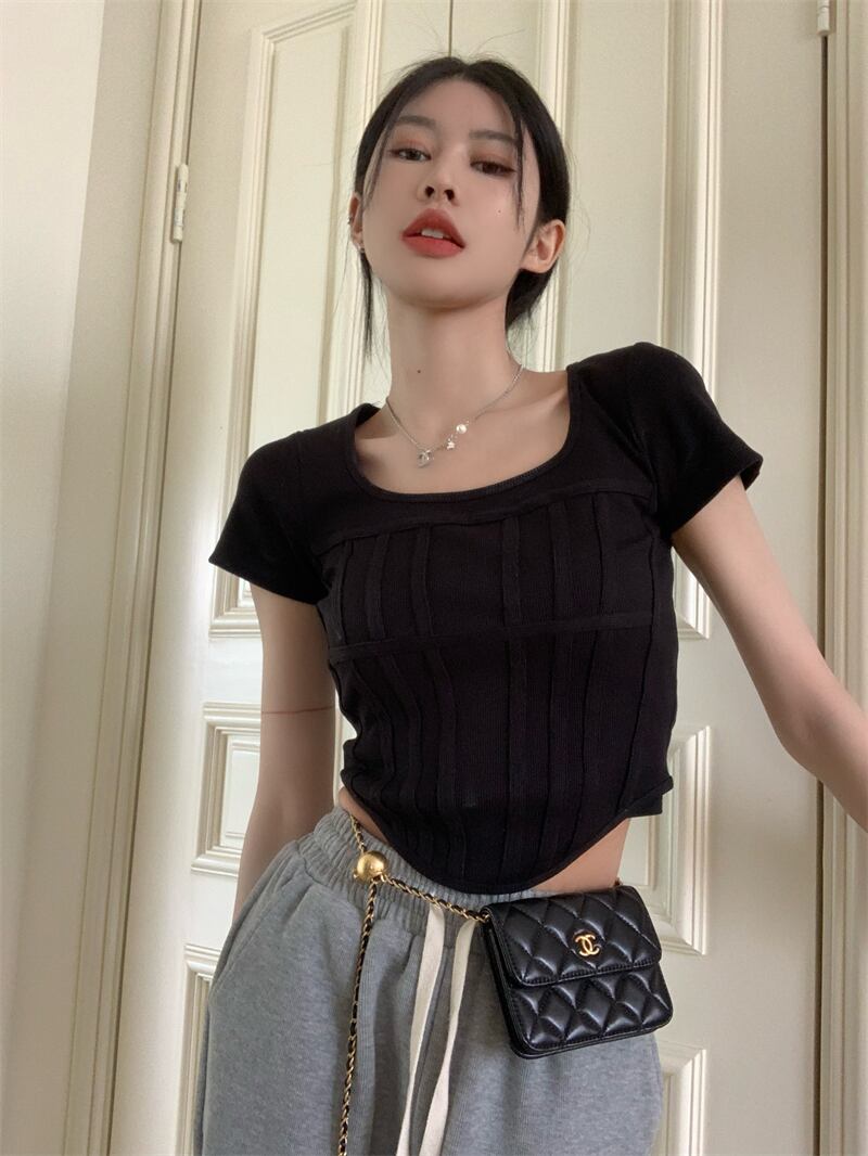 スパイスガールズスクエアネック半袖Tシャツレディースサマースモールシックショートスリムスリムフレンチフィッシュボーントップ ハーフスリーブ 夏物 スクウェア 7460052173617235 | framboise21