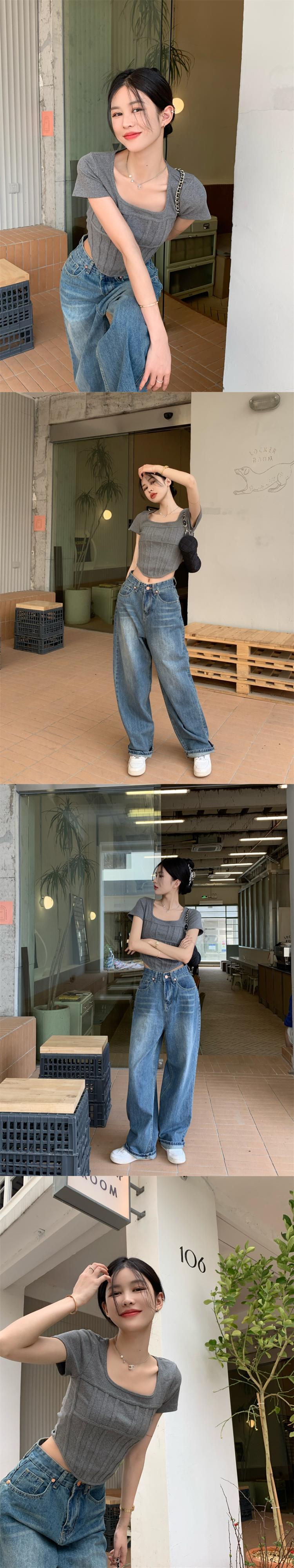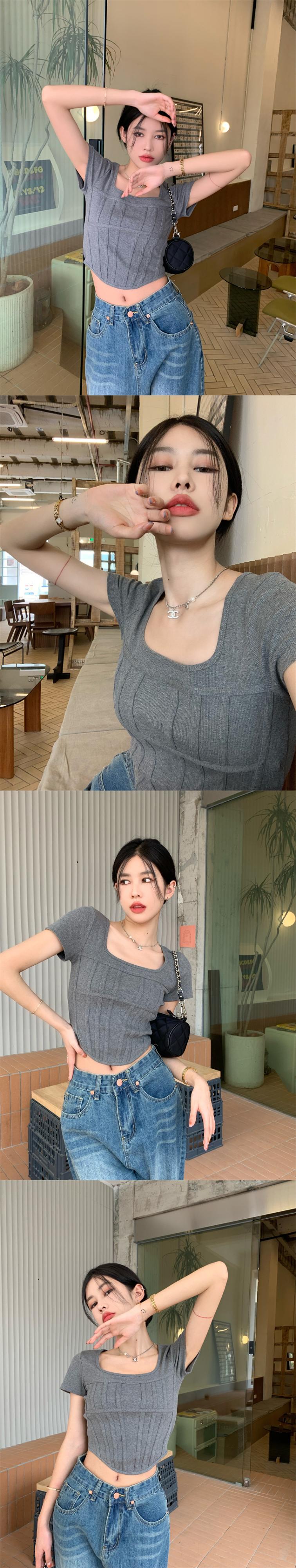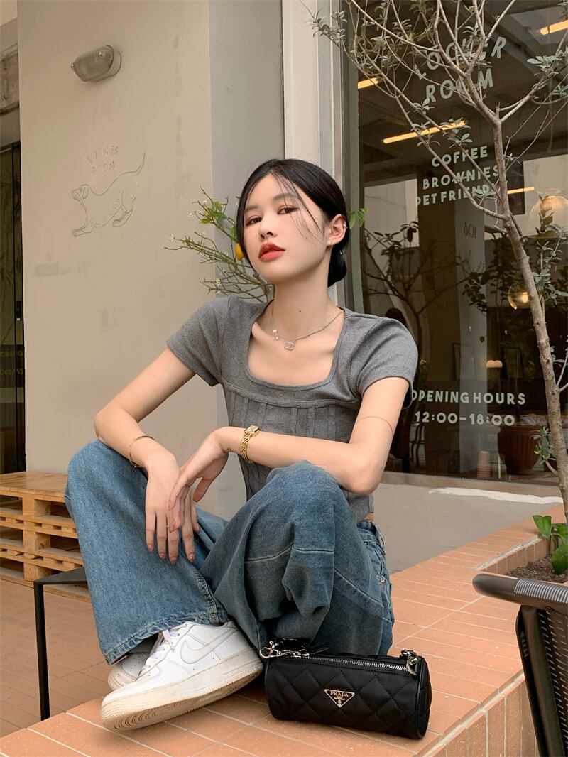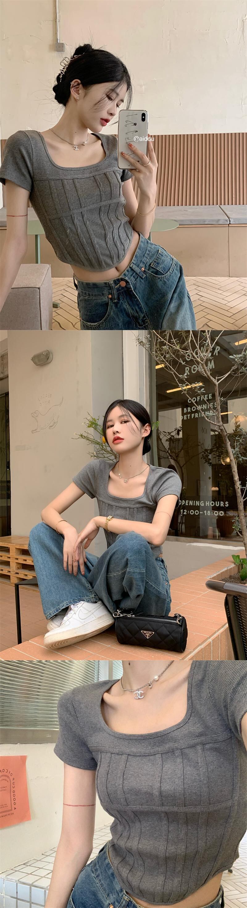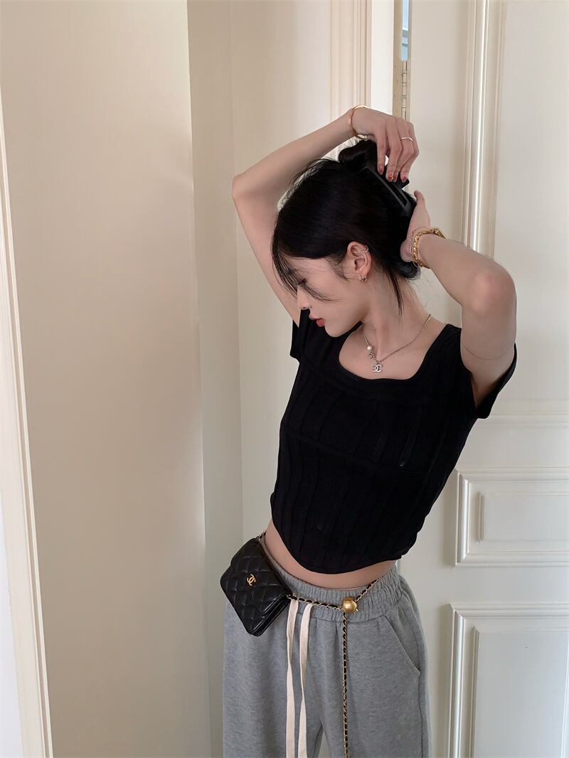 スパイスガールズスクエアネック半袖Tシャツレディースサマースモールシックショートスリムスリムフレンチフィッシュボーントップ ハーフスリーブ 夏物 スクウェア 7460052173617235 | framboise21