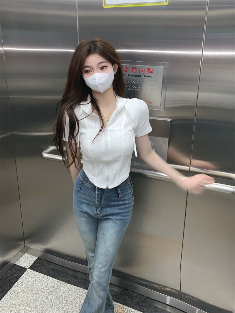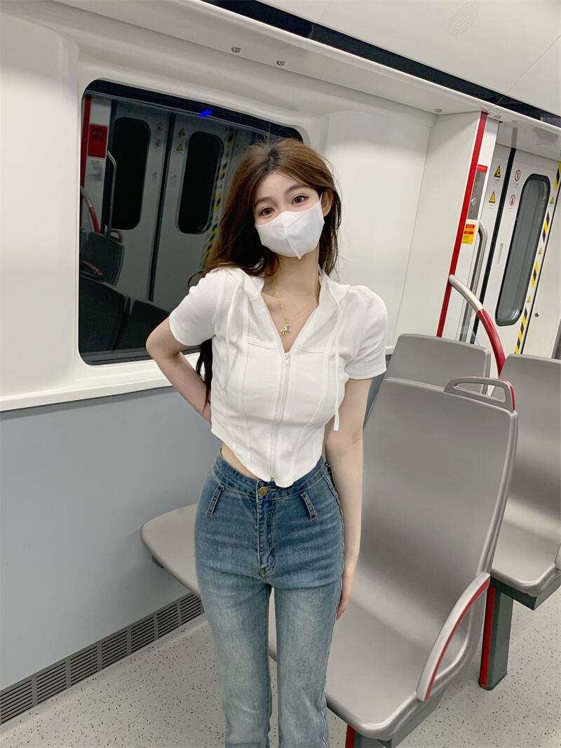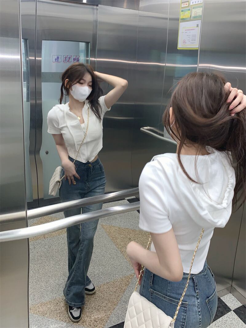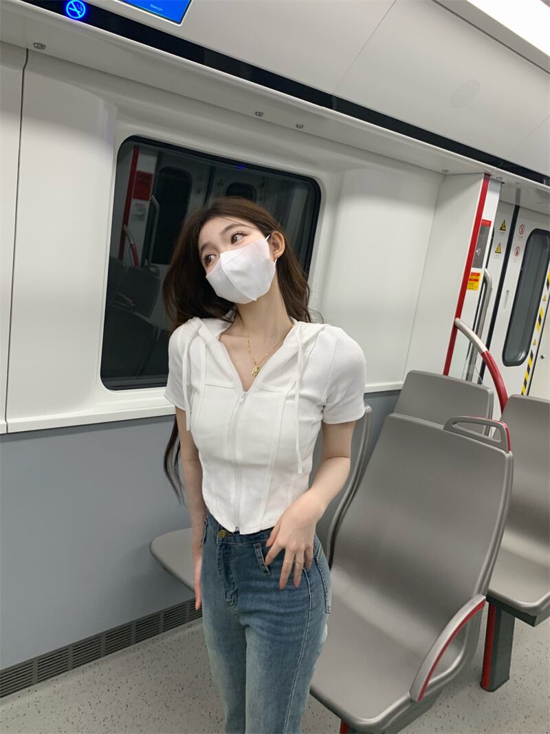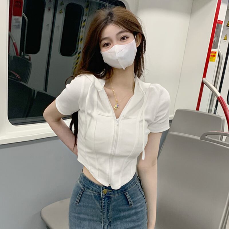 甘い女の子白いフード付き半袖Tシャツ女性のデザインセンスニッチ不規則なハイウエストへそbmショートトップ夏 ホワイト 大人ガーリー スウィート キュート カジュアル サマー 夏物 7460069517671912 | framboise21