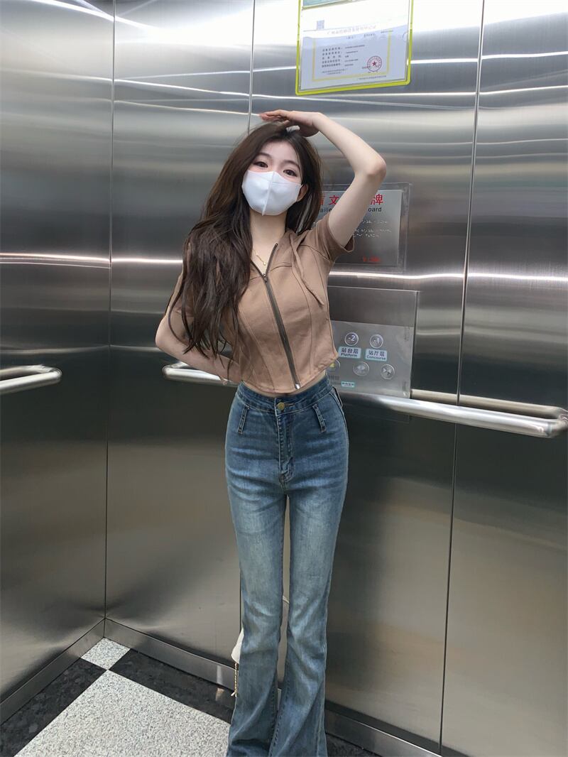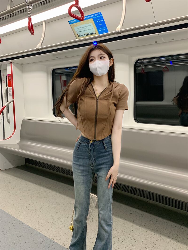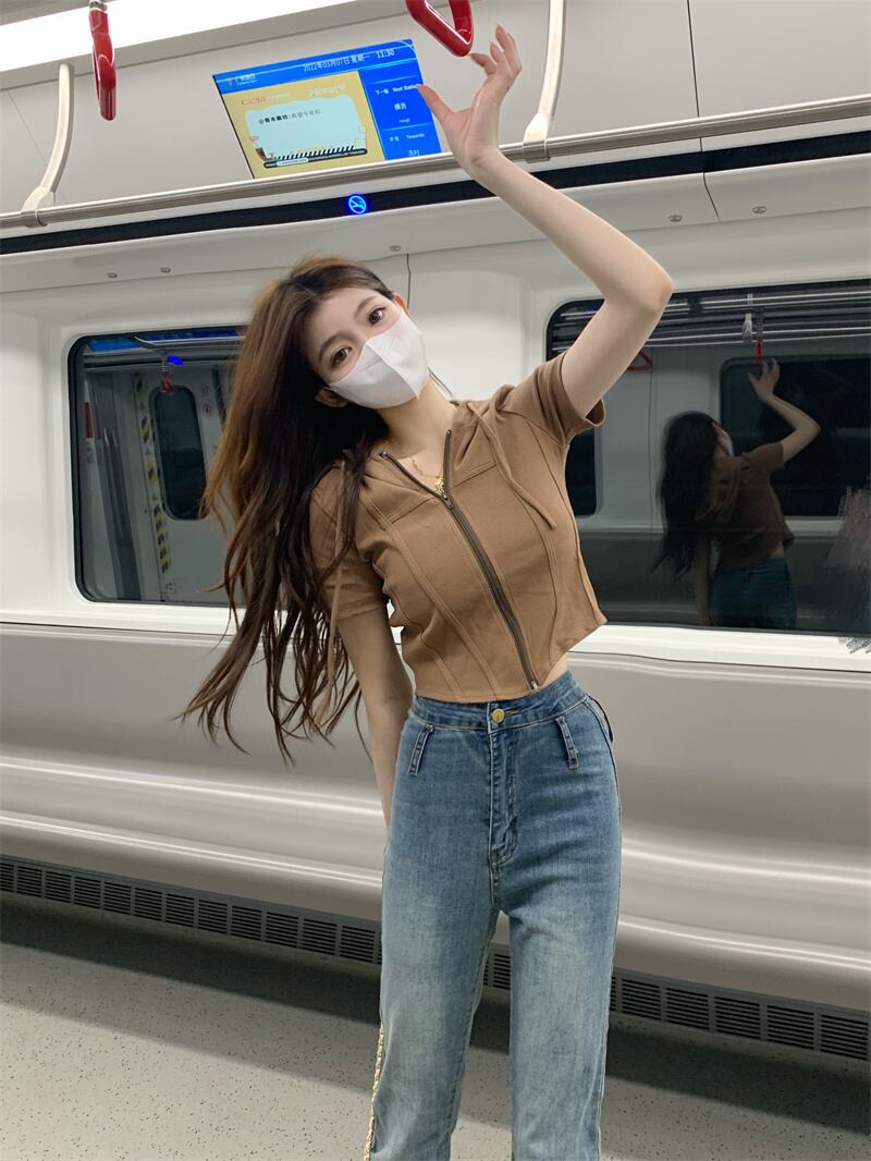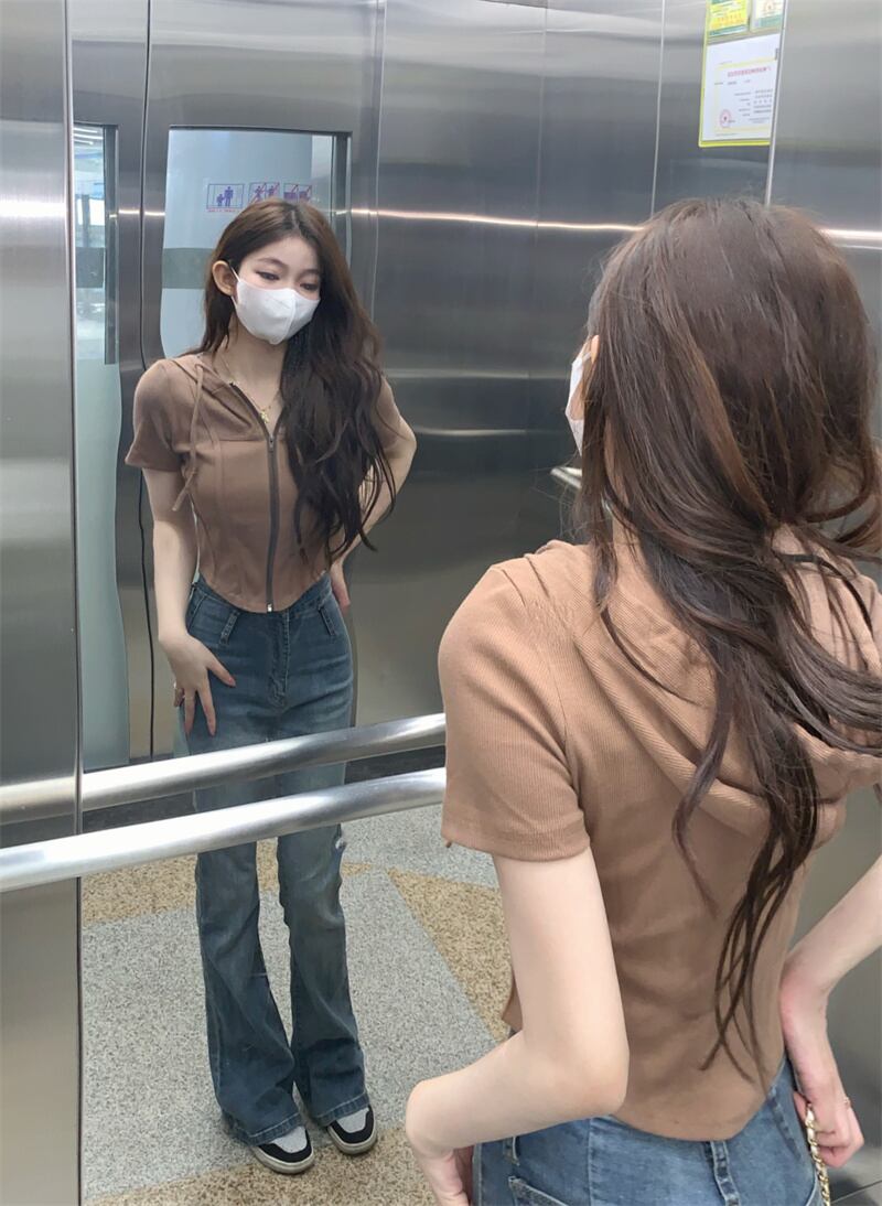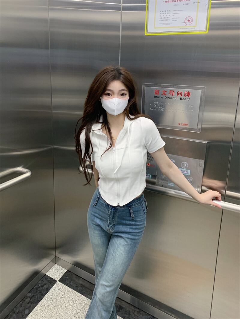 甘い女の子白いフード付き半袖Tシャツ女性のデザインセンスニッチ不規則なハイウエストへそbmショートトップ夏 ホワイト 大人ガーリー スウィート キュート カジュアル サマー 夏物 7460069517671912 | framboise21