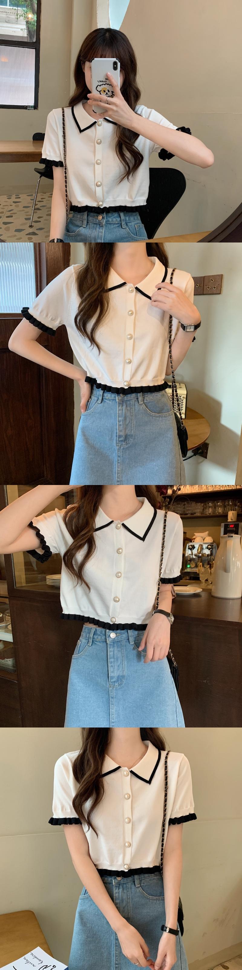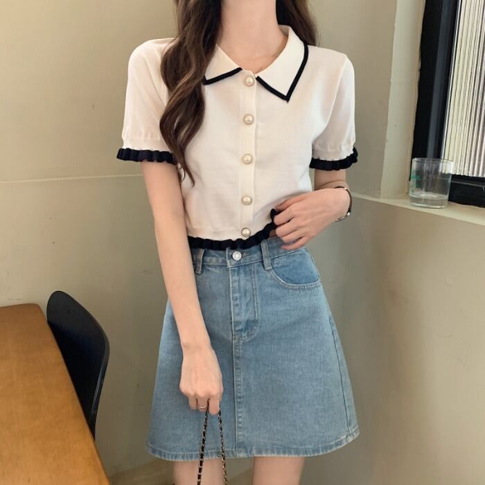 アイスシルクニット半袖Tシャツレディース2022年新夏ショートデザインシックなスモールシャツスモールフレグランスウィンドトップ サマー 夏物 7460098134517887 | framboise21