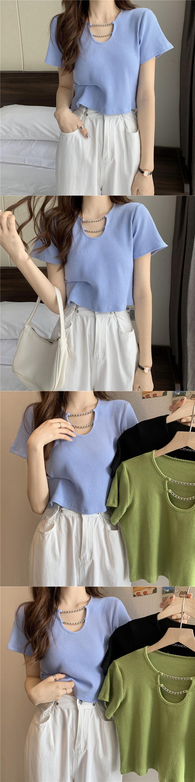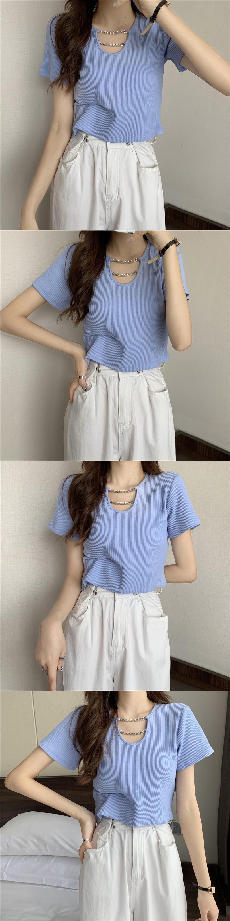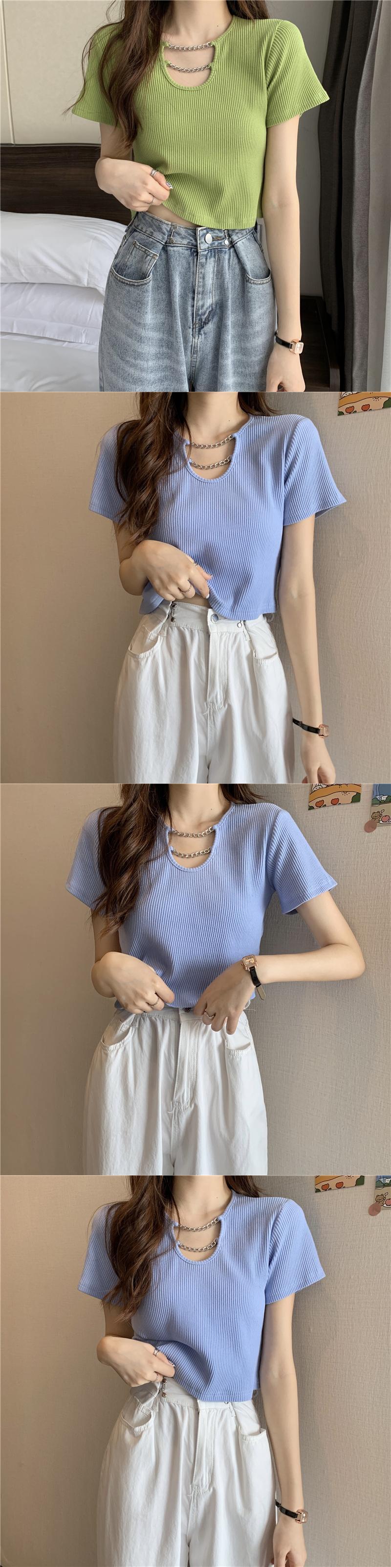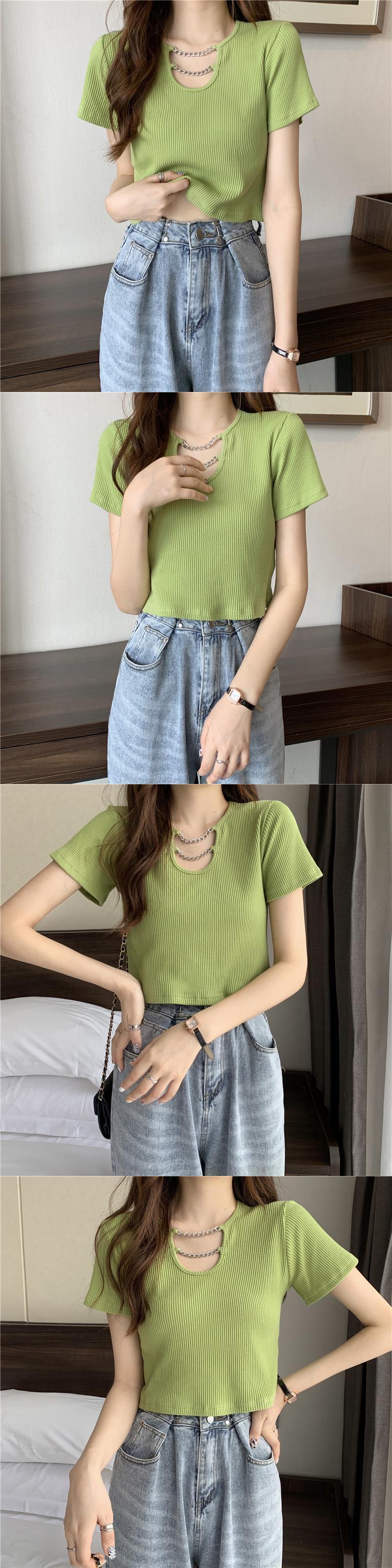 黒のTシャツレディース半袖スリムデザインセンスニッチハイウエストサマーアイスシルクニットセーターチェーンショートトップトレンディ ブラック 夏物 7460012122752256 | framboise21