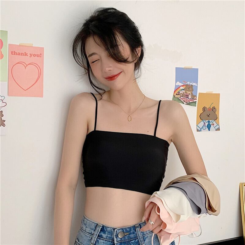 シームレスなアイスシルクチューブトップと美しいバックトップを備えた黒い胸ラップ女性の夏のアンチグレア薄い小さなキャミソール ブラック サマー 夏物 7460013074087690 | framboise21