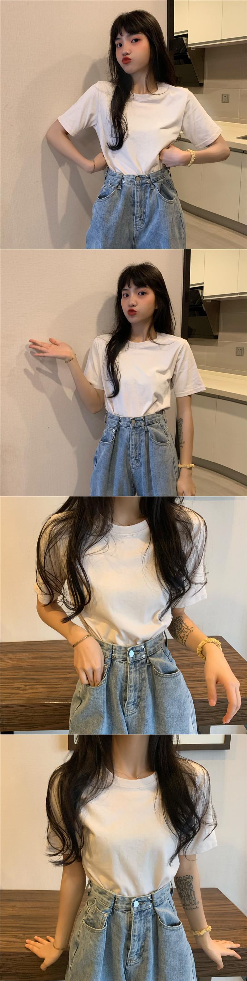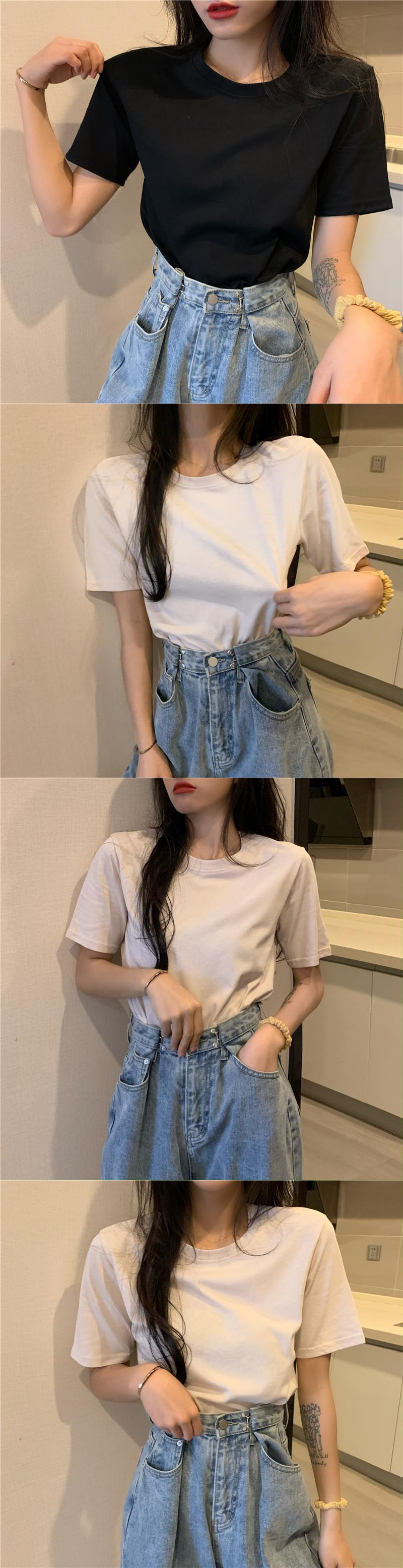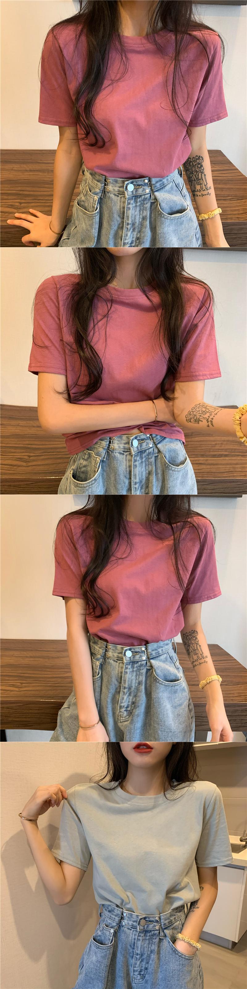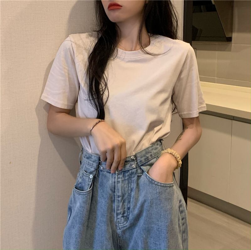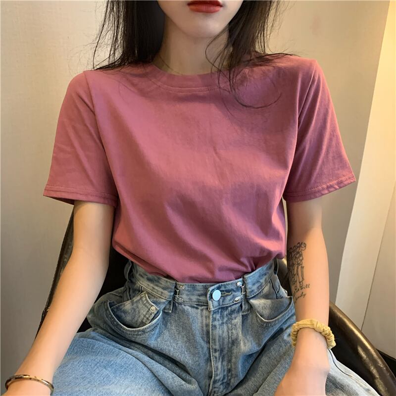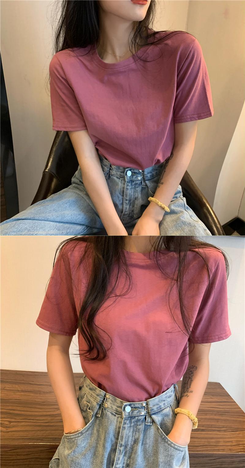 シンプルな赤い半袖Tシャツ女性の夏のルーズで薄いフロントショルダースーパートップラウンドネックハーフスリーブコットンTシャツインタイド レッド サマー 夏物 Oネック 7460033841519895 | framboise21