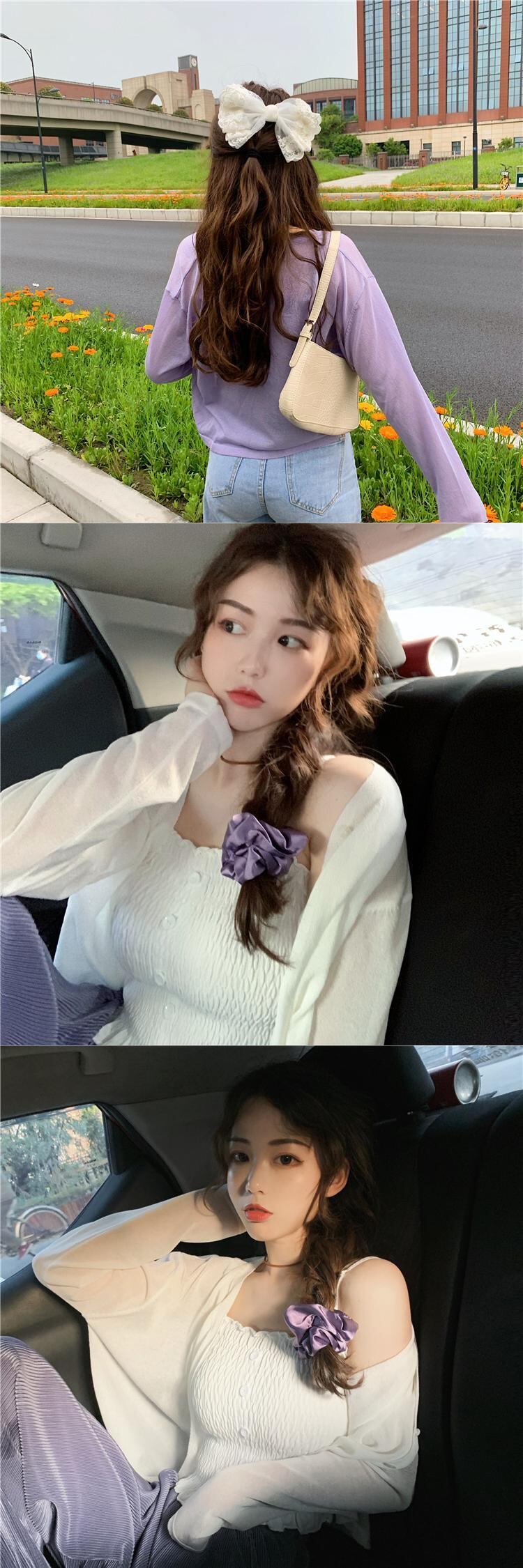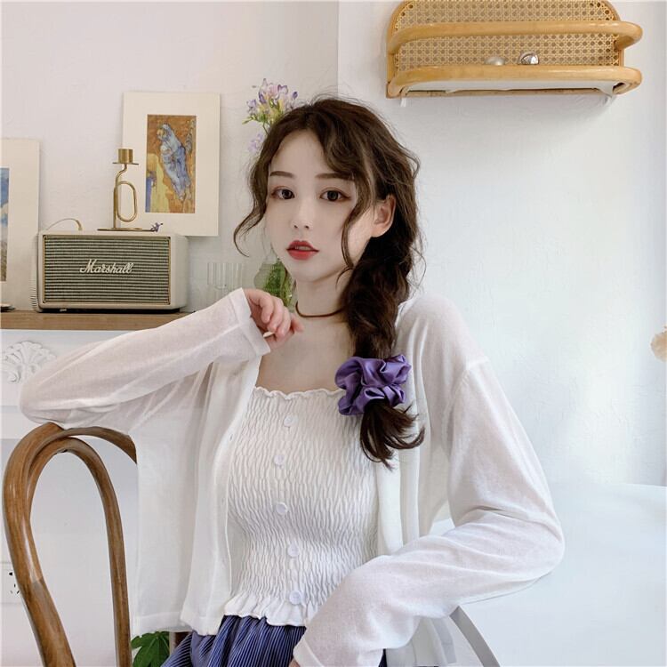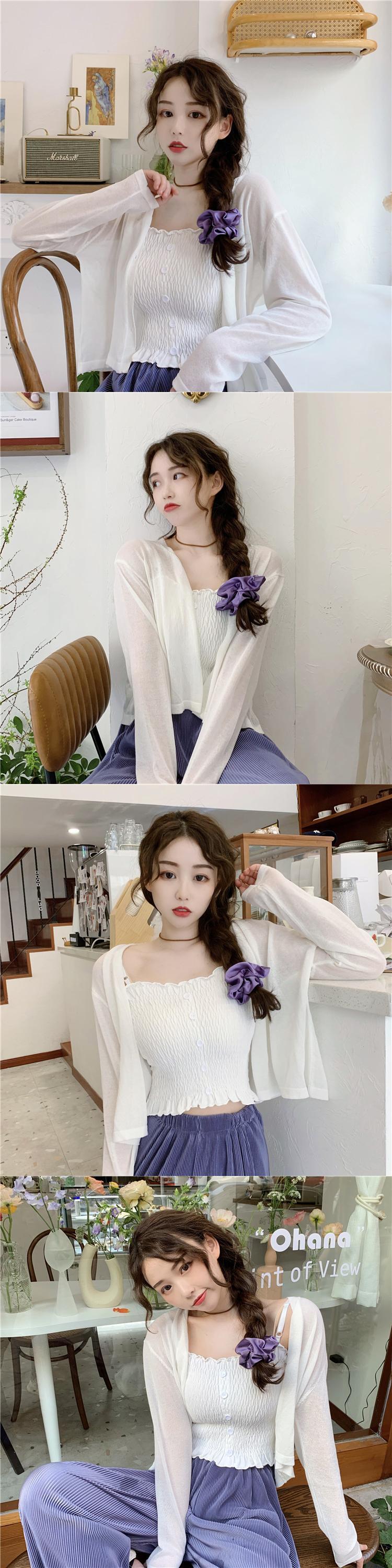パープルカーディガンニットジャケットレディースシンウエスタンスタイルルーズレイジーアウターロングスリーブサンスクリーンシャツショートVネックトップ 長袖 7460066306916688 | framboise21