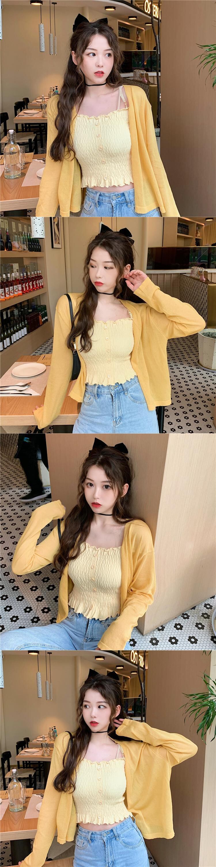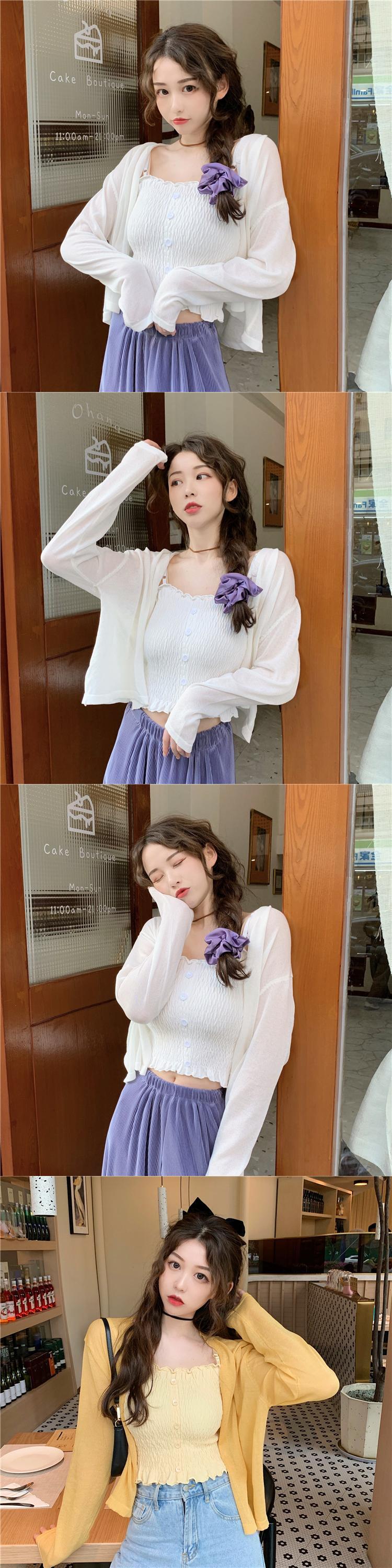 色:紫のサスペンダー,ホワイトサスペンダー,黄色のサスペンダー,パープルカーディガン,白いカーディガン,黄色のカーディガン