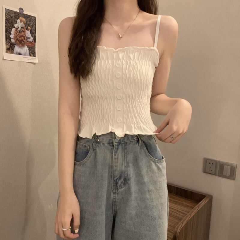 夏の白いニットボトミングキャミソールトップベスト女性のデザインセンスニッチ内側に美しいバックショートチューブトップ ホワイト サマー 夏物 7460081510495190 | framboise21
