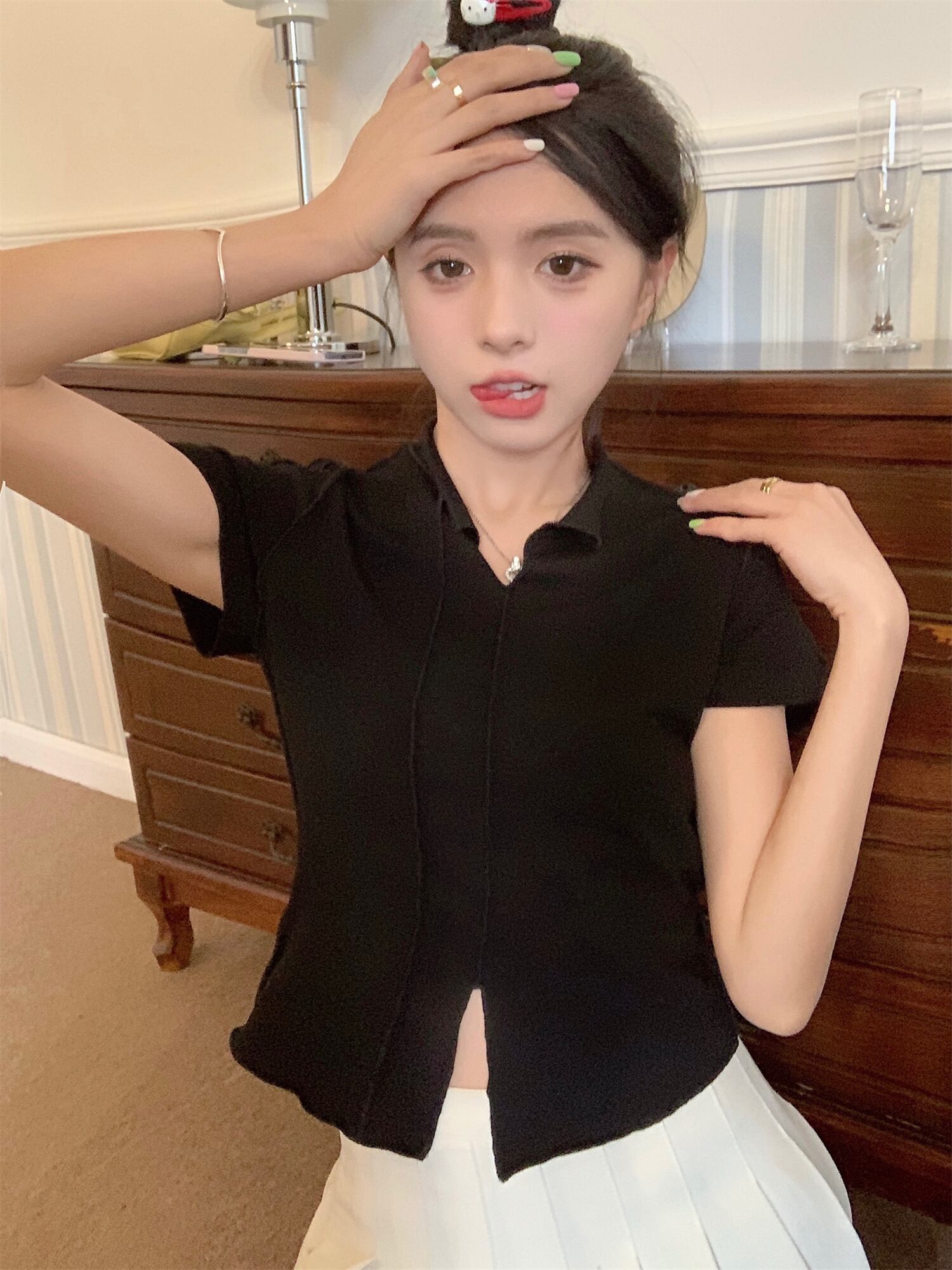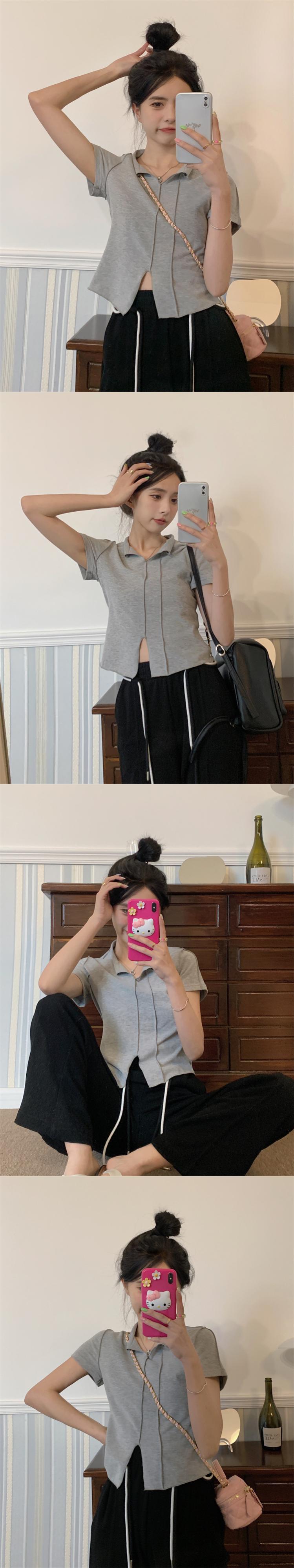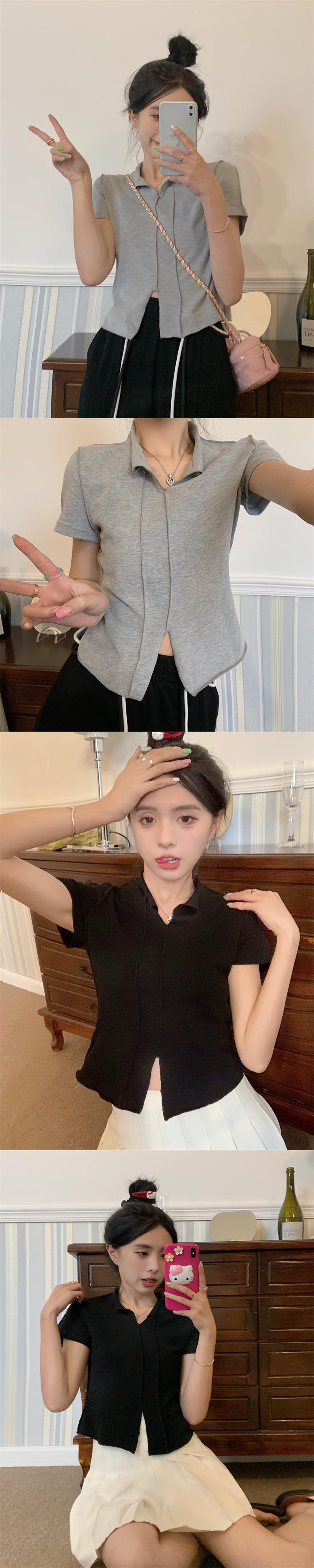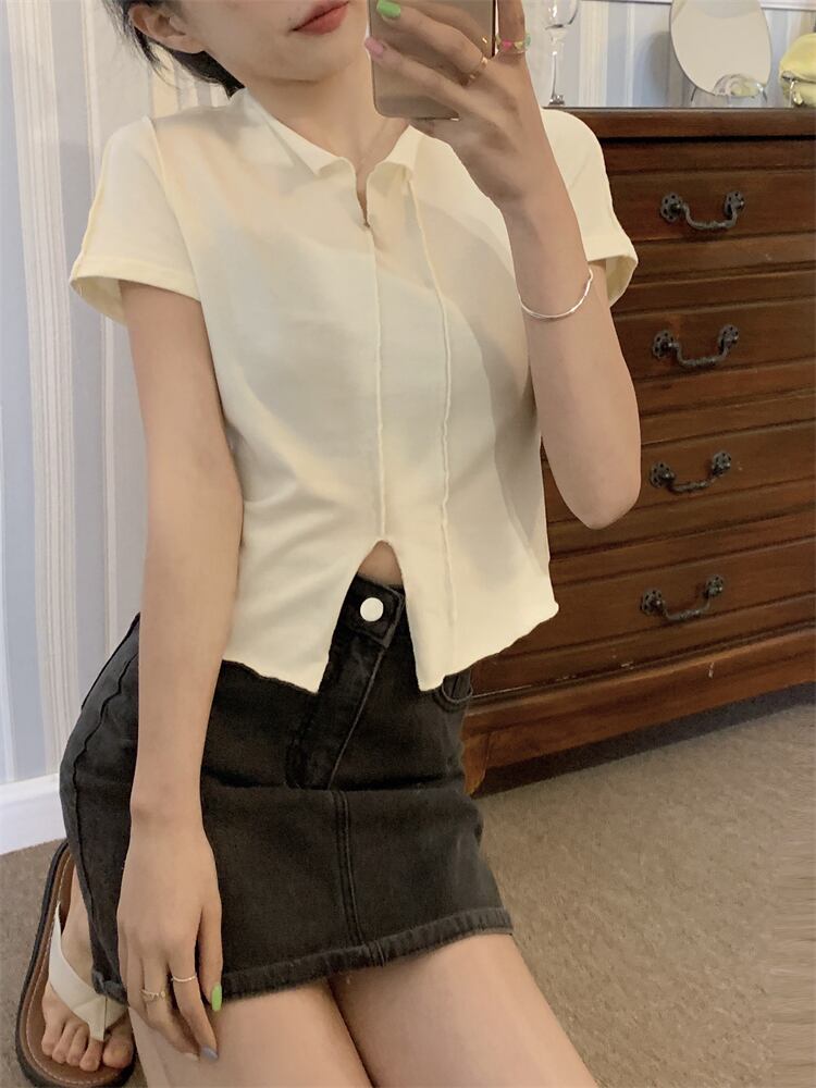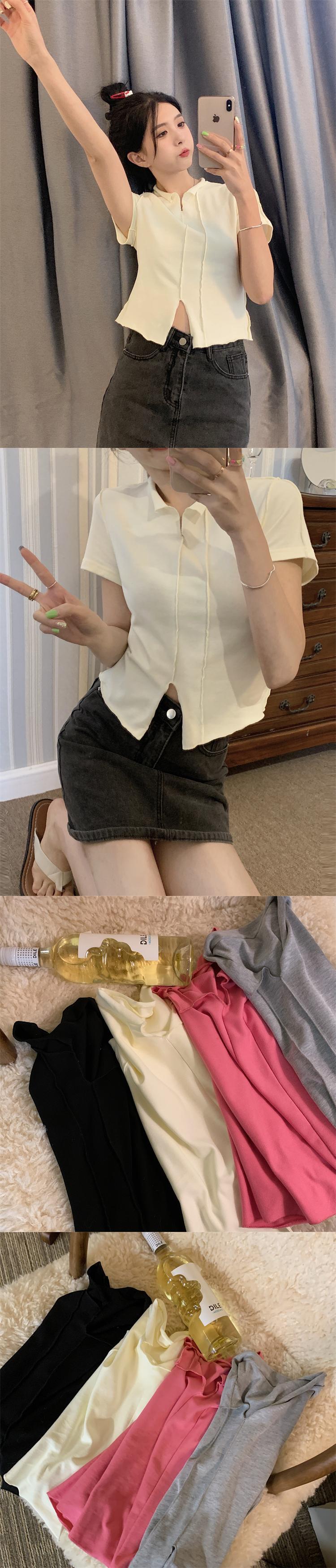 ピンクのフィッシュボーンウエスト半袖Tシャツレディースインサマースプリットデザイン自家栽培感とシックなVネックショートハイウエストトップス 夏物 7460036122322139 | framboise21