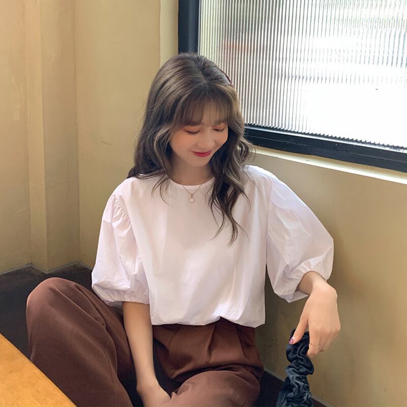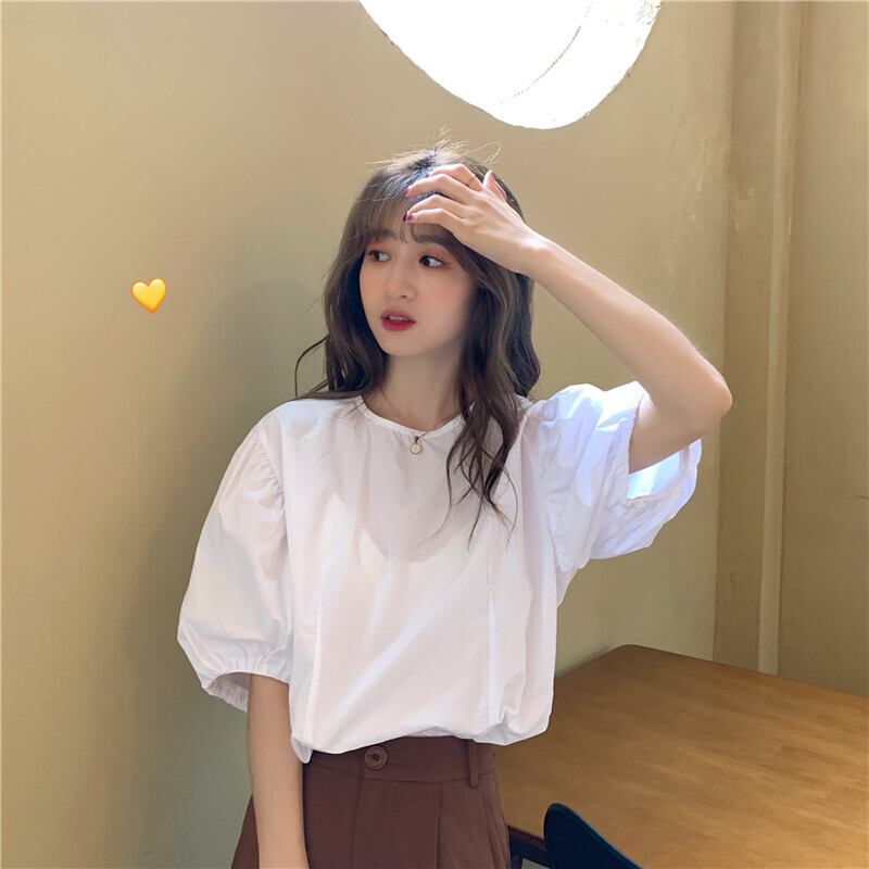 甘い白い泡半袖シャツ女性の夏のデザインニッチルーズ優しいフランスの気質シックなトップ ホワイト 大人ガーリー スウィート キュート カジュアル サマー 夏物 7460020051141474 | framboise21