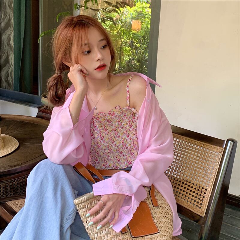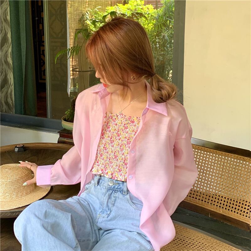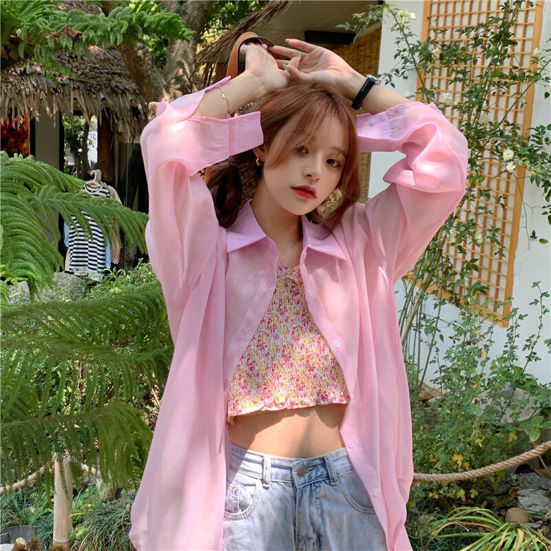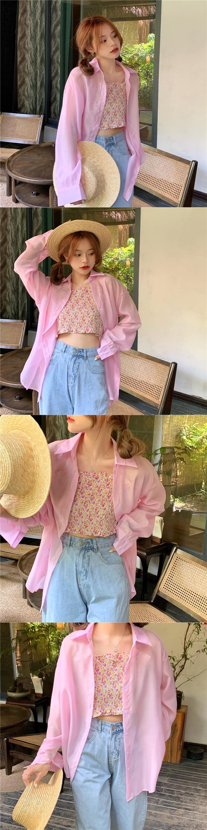 ピンクの日焼け止めシャツ女性の2022年夏の新しい甘いデザインルーズアウターウェア薄いミドル丈コート 大人ガーリー スウィート キュート カジュアル サマー 夏物 7460046683485271 | framboise21