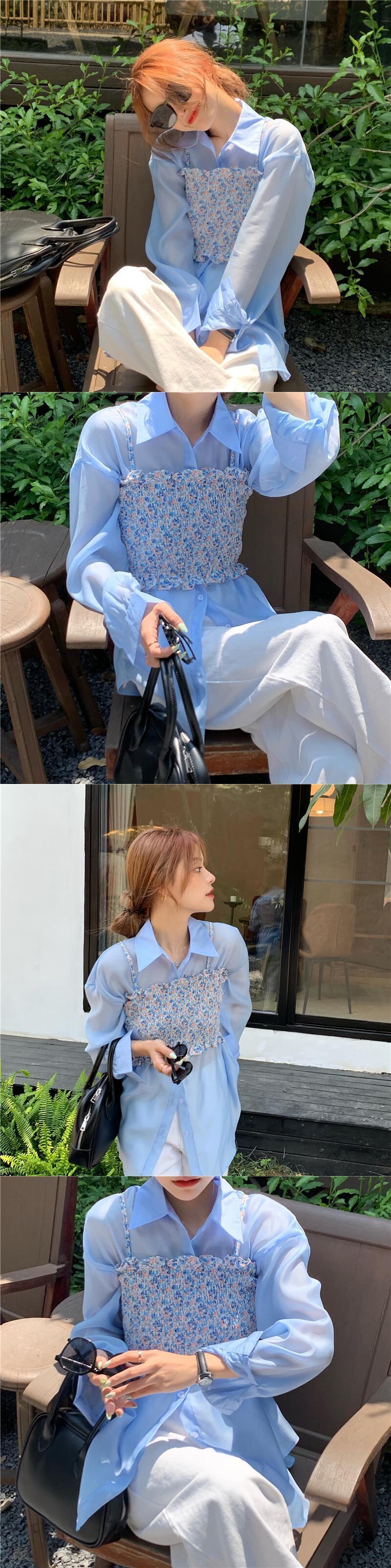 色:ピンクのサスペンダー,青いスリング,ピンクのシャツ,青いシャツ