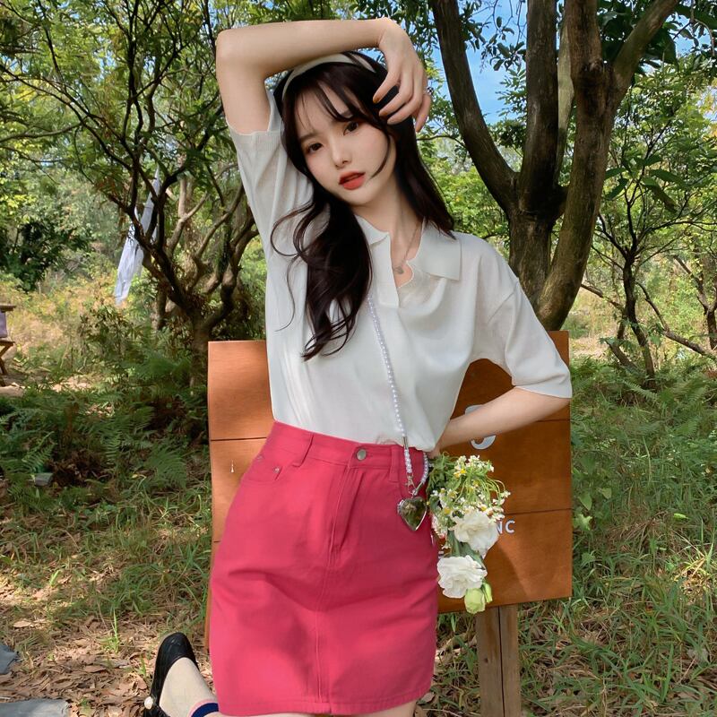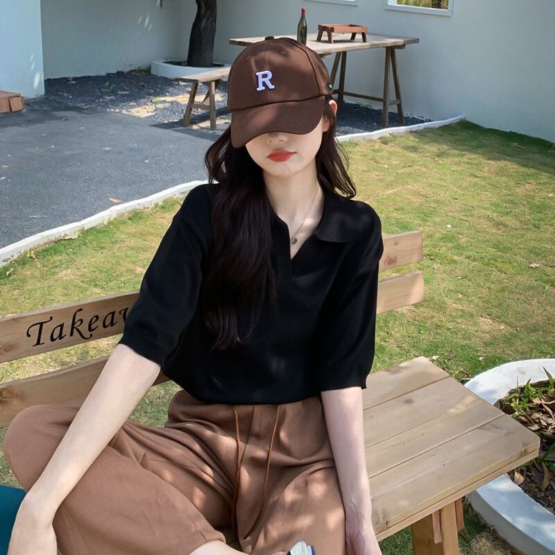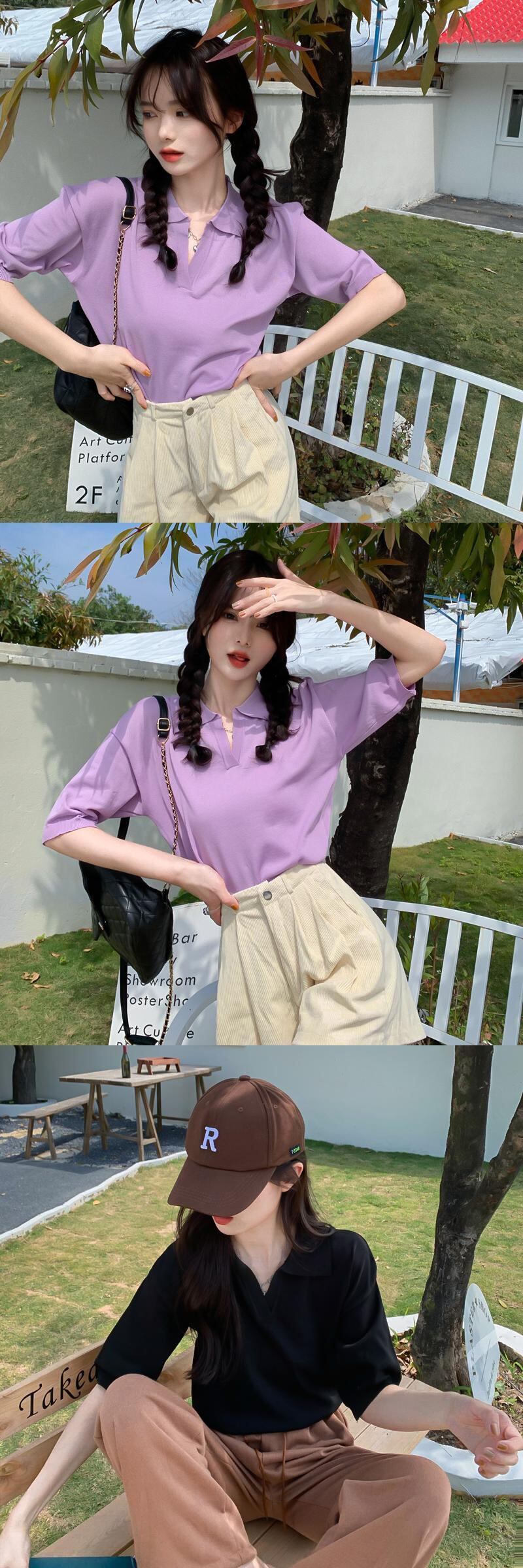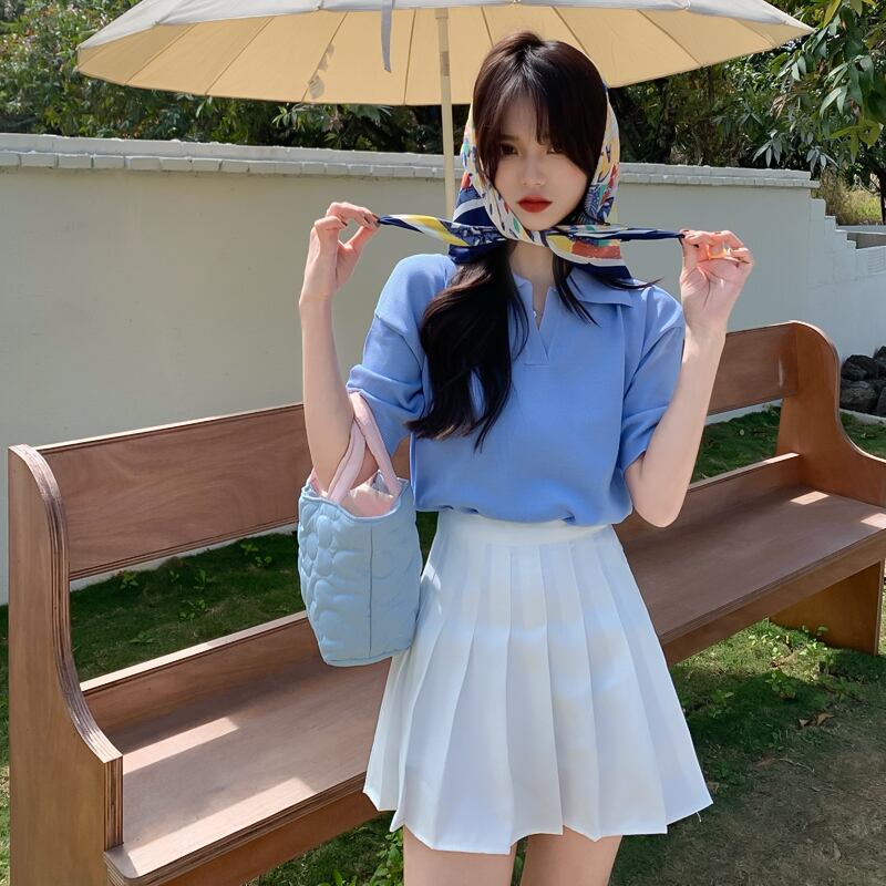 2022年夏ショートポロシャツトップVネックシンハイウエストTシャツレディースオールマッチシン半袖ニットスモールマン ハイウェスト サマー 夏物 7460063257429171 | framboise21