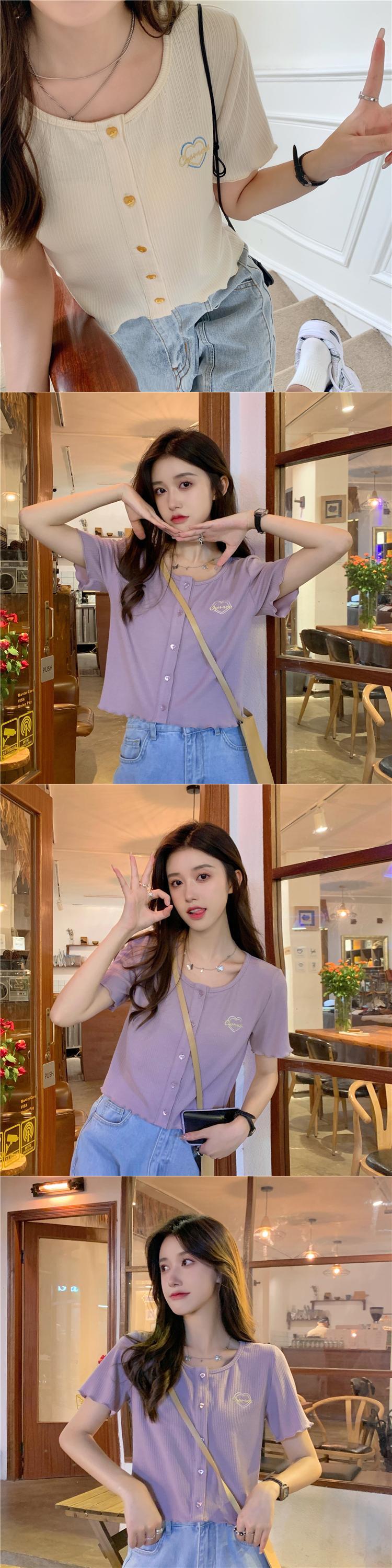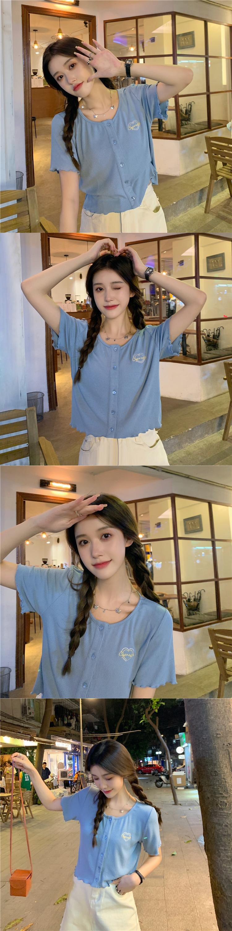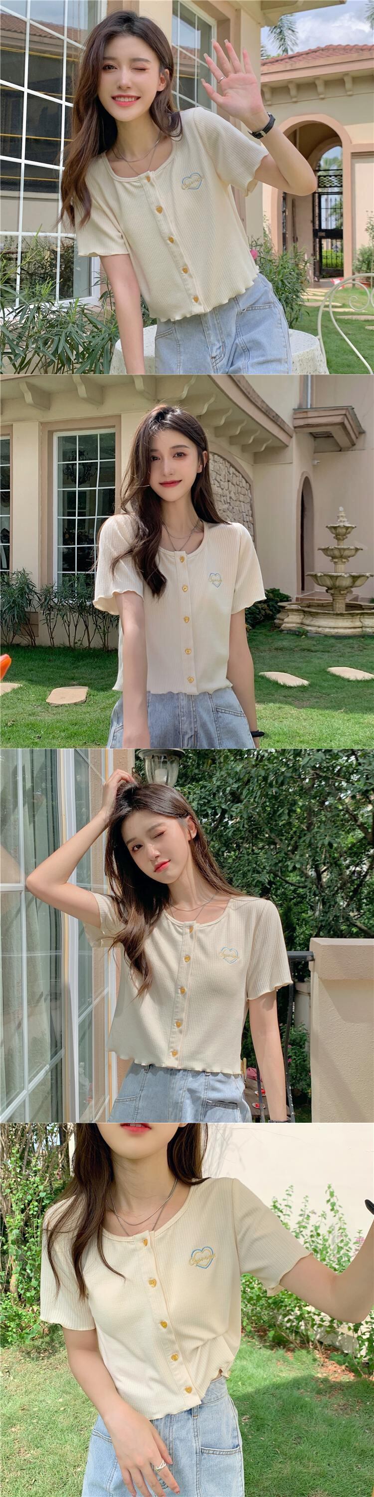 ハイウエストワイドレッグパンツのショートトップ。デザインはニッチで、特に菌のエッジ、初恋、甘い小さなTシャツです 大人ガーリー スウィート キュート カジュアル 7460076308358331 | framboise21