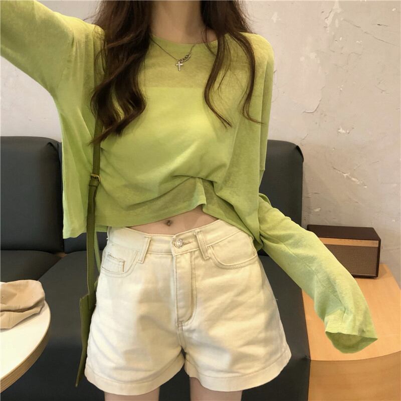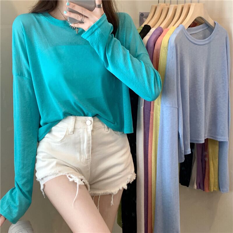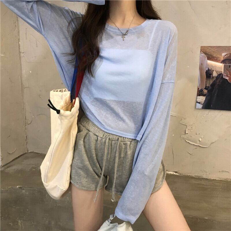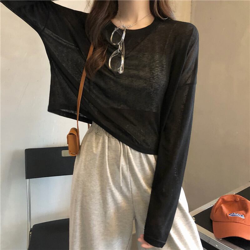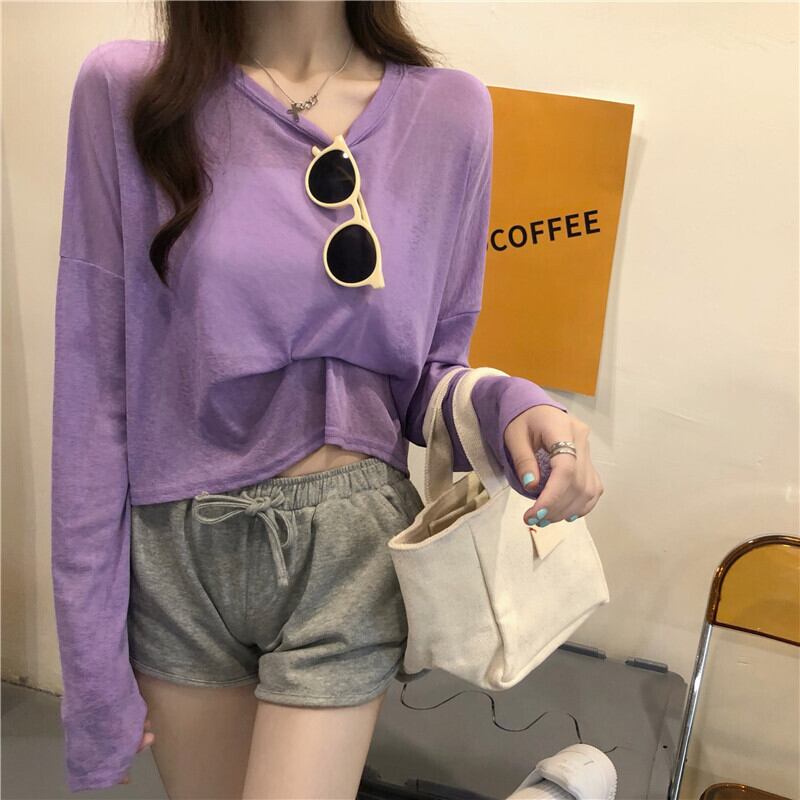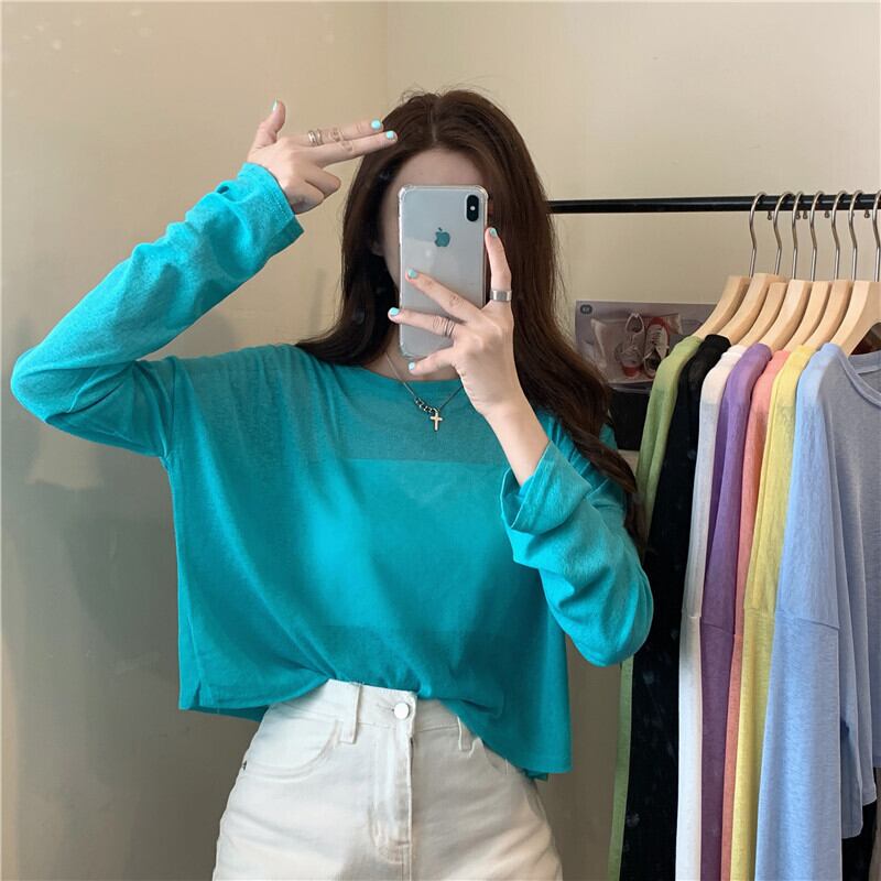 日焼け止め女性の夏フレンチシンアイスシルク日焼け止めブラウスTシャツパースペクティブ長袖シックな小さなショートトップ ロング サマー 夏物 7460047771486438 | framboise21
